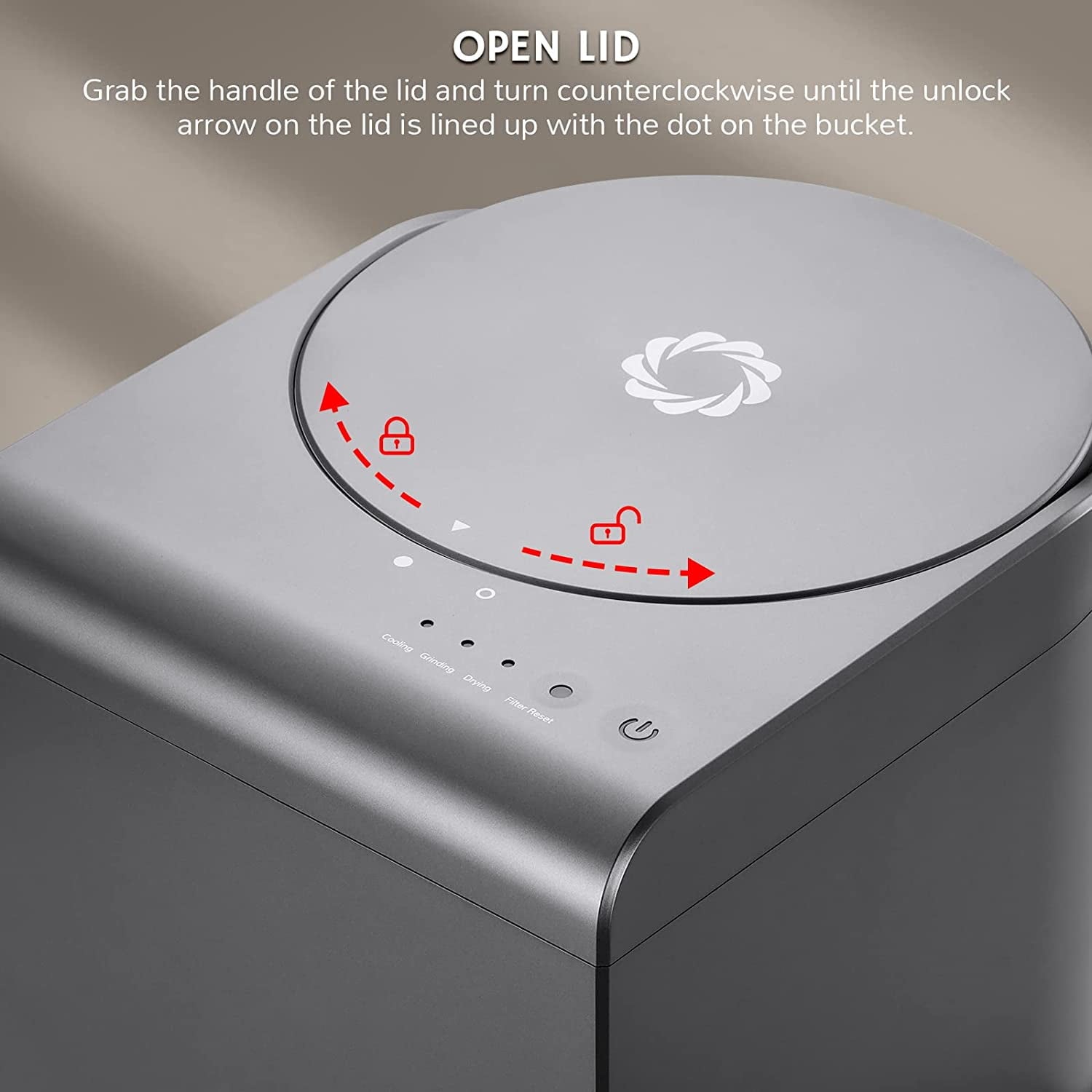 - Fill Waste: Put your food scraps into the 2.5L stainless container