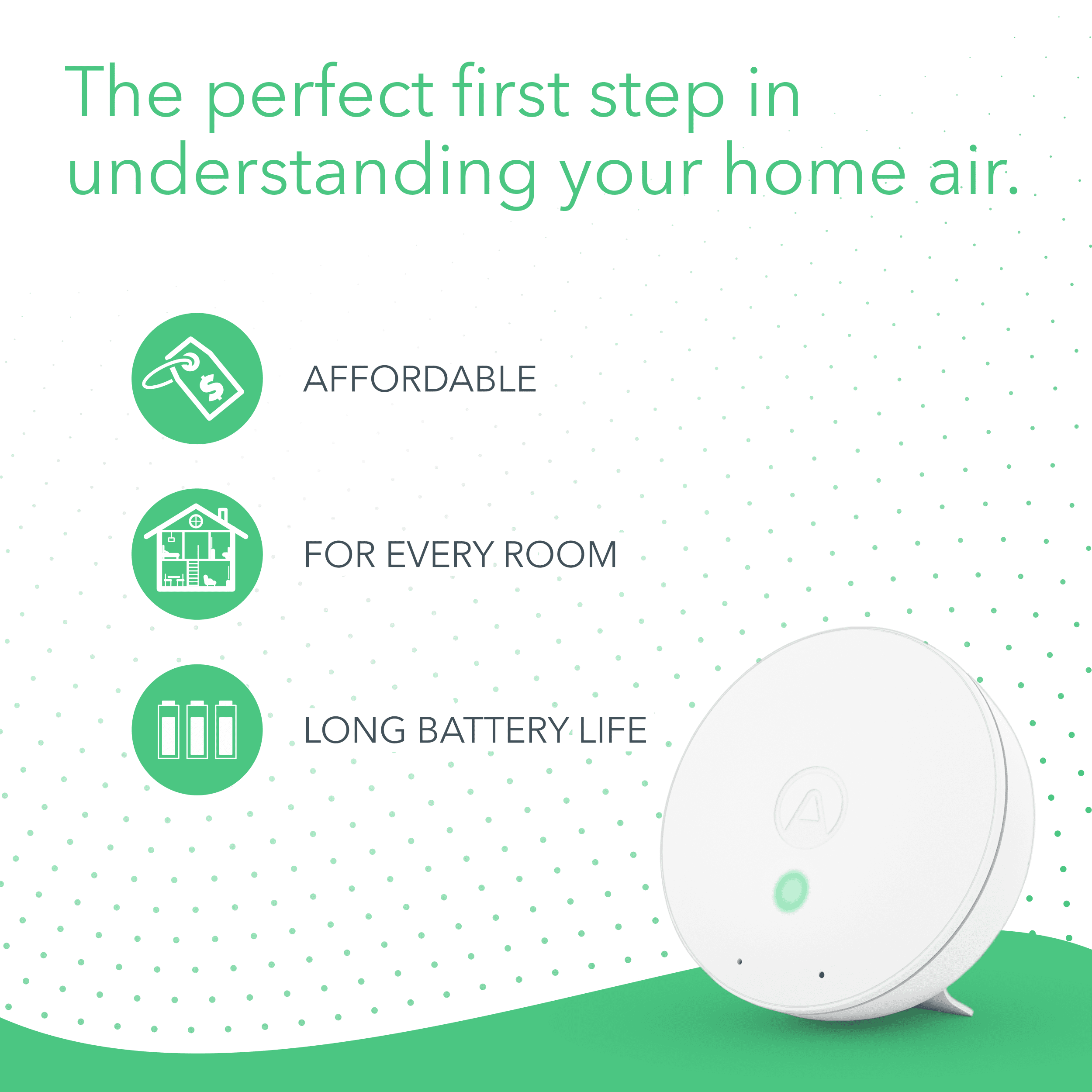 Airthings Wave Mini is small in size but big in impact. With four indoor air quality sensors, including mold risk indication to pro-actively prevent mold, Wave Mini is a necessity in every home. Track airborne chemicals, humidity, temperature, and mold risk to visualize the air quality from room to room and reach optimal health and comfort. When you understand the air quality in your home, you can make small changes to your everyday habits to optimize your air quality. Simply wave in front of the device to receive a color-coded visual indication of the overall air quality; Green (Low), Yellow (Warning), Red (Poor). Create custom alerts or integrate with other smart home products such as Google Assistant and IFTTT. Keep your home, valuables and family healthy and safe from mold damage with Wave Mini, now with mold risk.Airthings Wave Mini is your indoor air quality companion. It’s the perfect, cost-effective way into understanding if you are at risk for mold-growth in your home, airborne chemicals (VOCs), temperature and humidity in your air. Air quality and temperatures change drastically from room to room and the only way to reach optimal comfort and health is to measure every space.