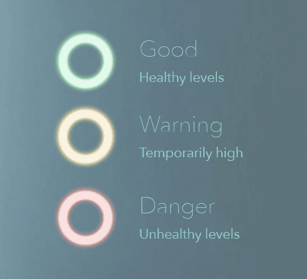 - 💡 Visual Air Quality Indicator: Simply wave your hand in front of the device to receive a color-coded indication of your air quality: green (good), yellow (warning), or red (danger).