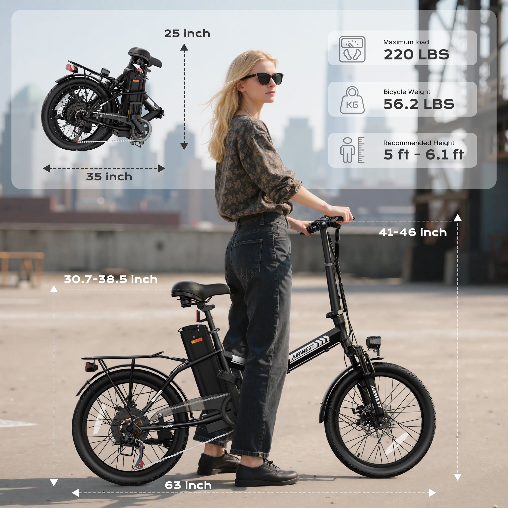 on your next camping trip. Whether you’re heading to work, running errands, or exploring trails, the AIRWEST folding electric bike