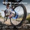 - Motor: 500W DC brushless motor (55Nm torque) for hill climbing.