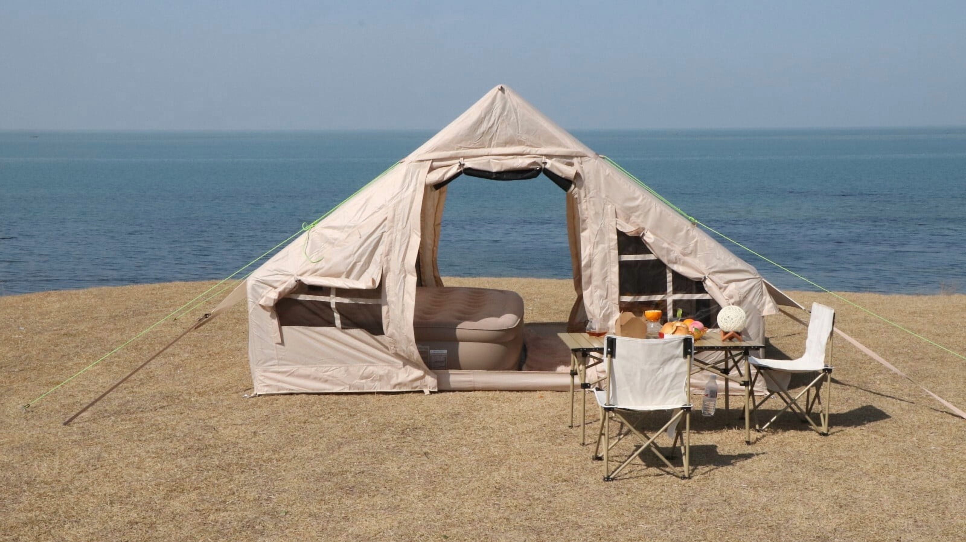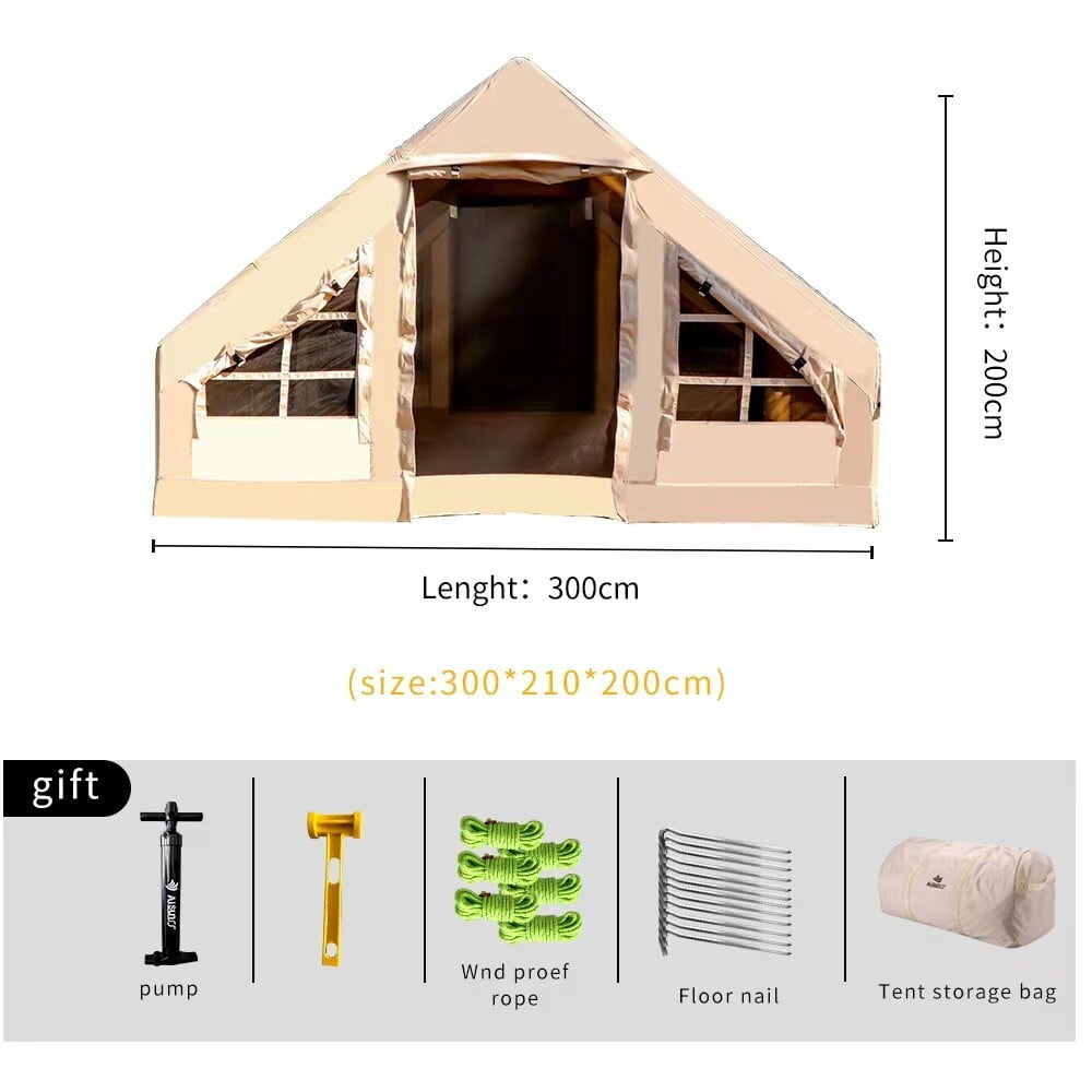 Easy setup and safety: instead of the metal pole,The inflatable tent uses advanced air beam technology, equipped with a manual pump which allows you to quickly inflate the tent in few minutes.