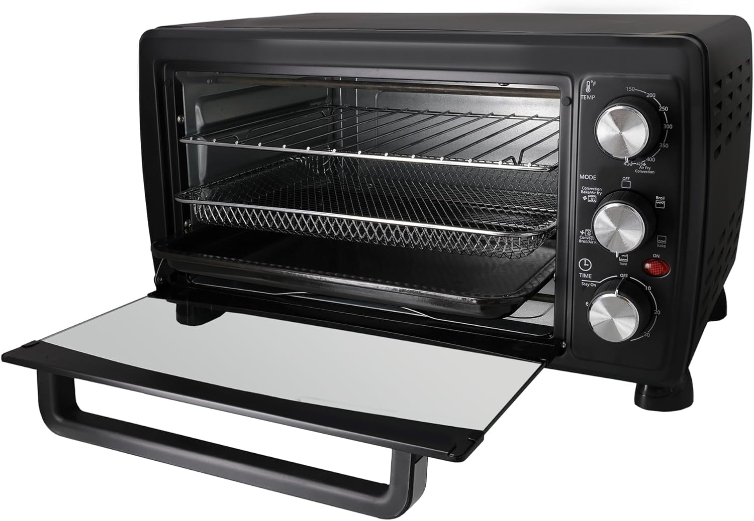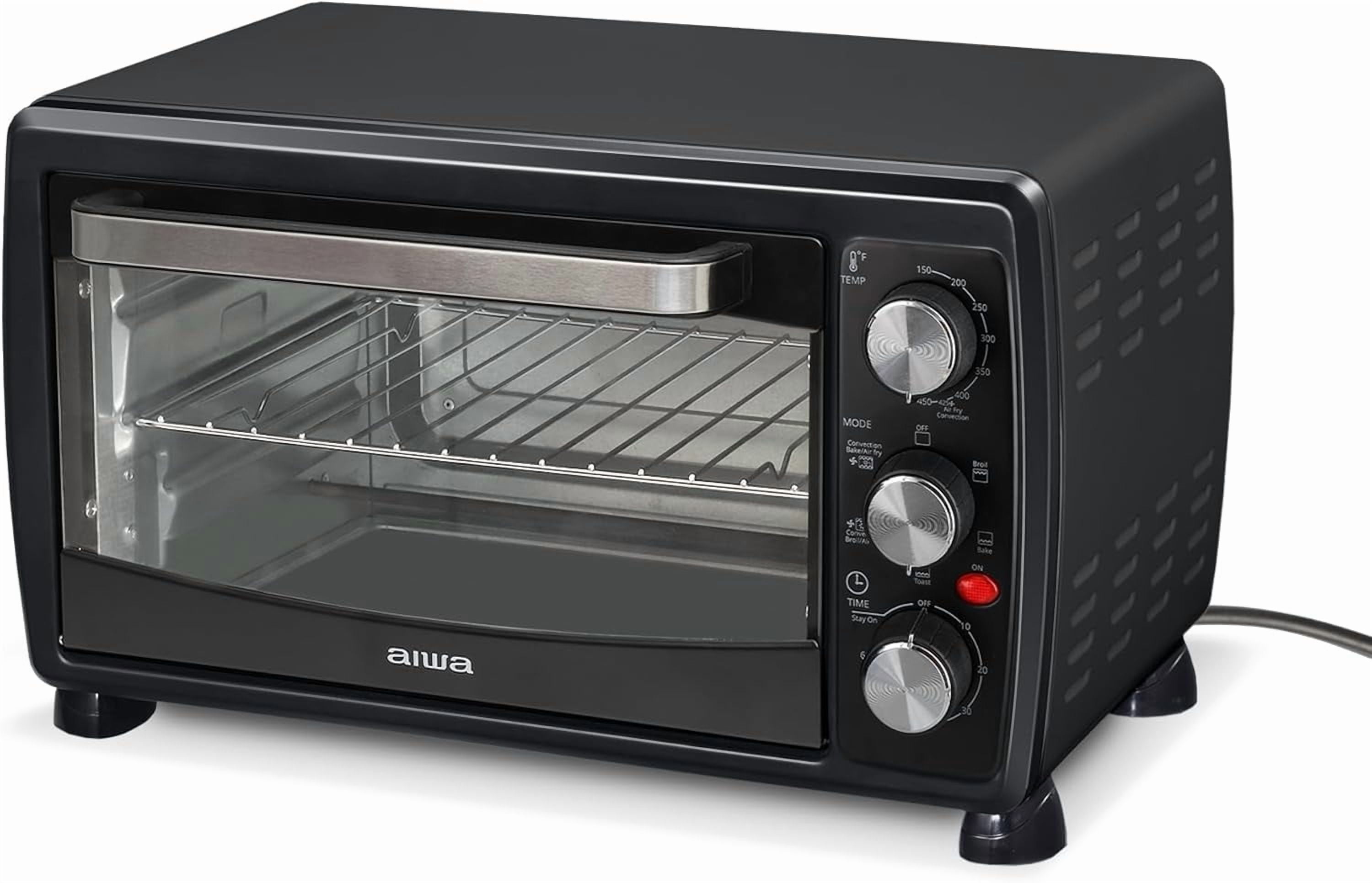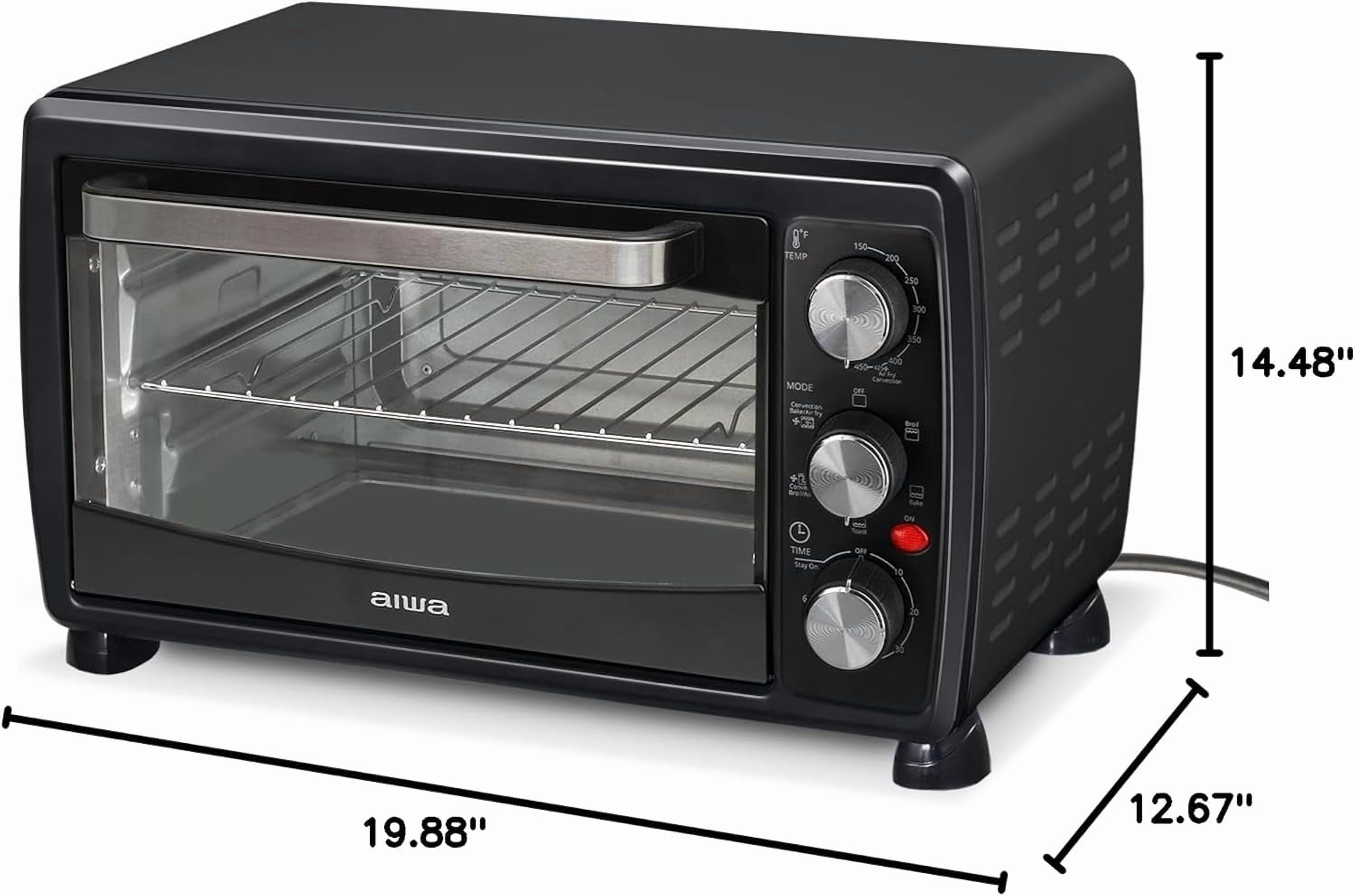 Aiwa Convection Toaster Oven, Countertop Oven with Bake, Toast, & Broil Functions, 1400W, Black