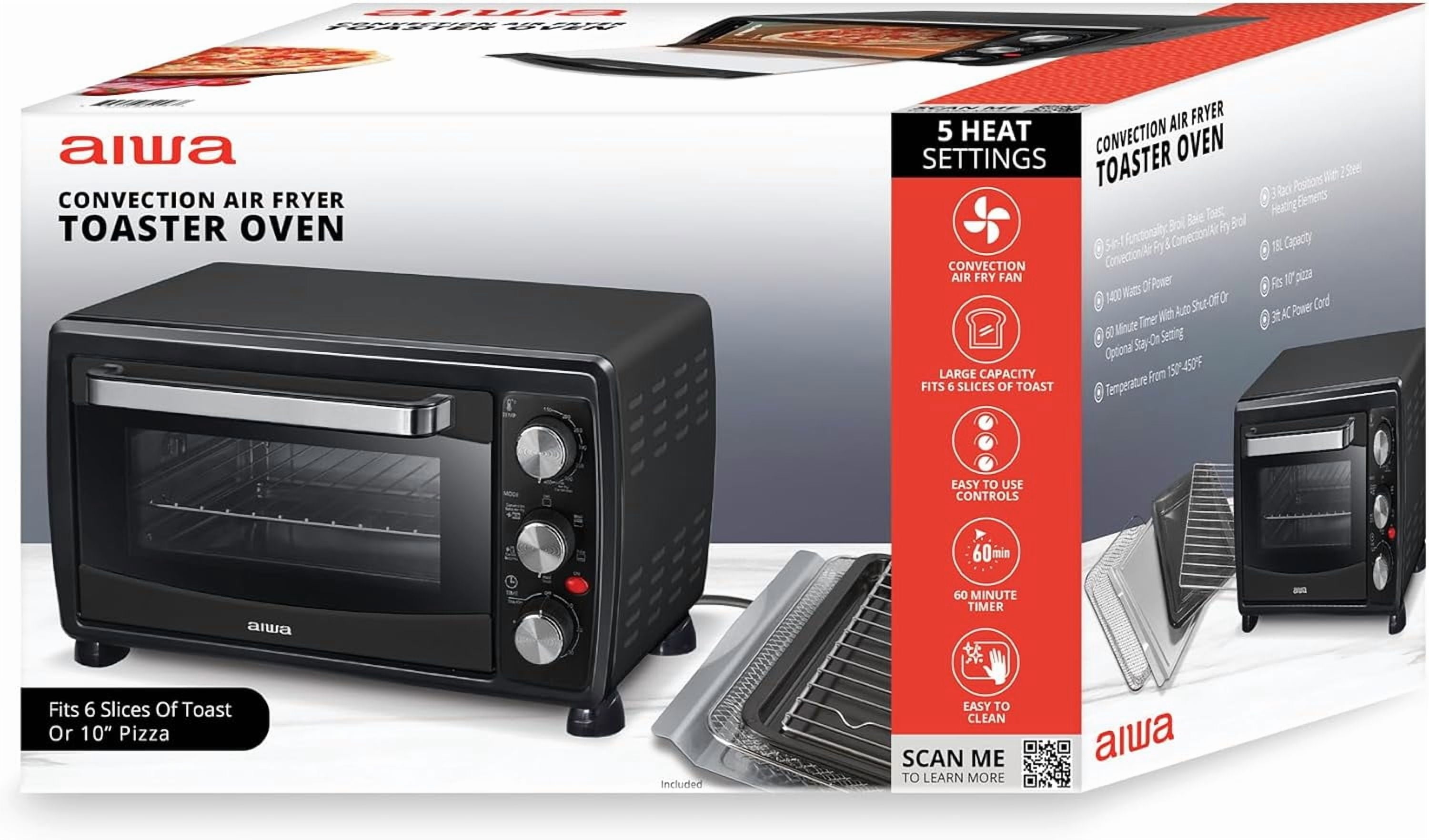 Home Toaster Ovens Aiwa Convection Toaster Oven, Countertop Oven with Bake, Toast, & Broil Functions, 1400W, Black
