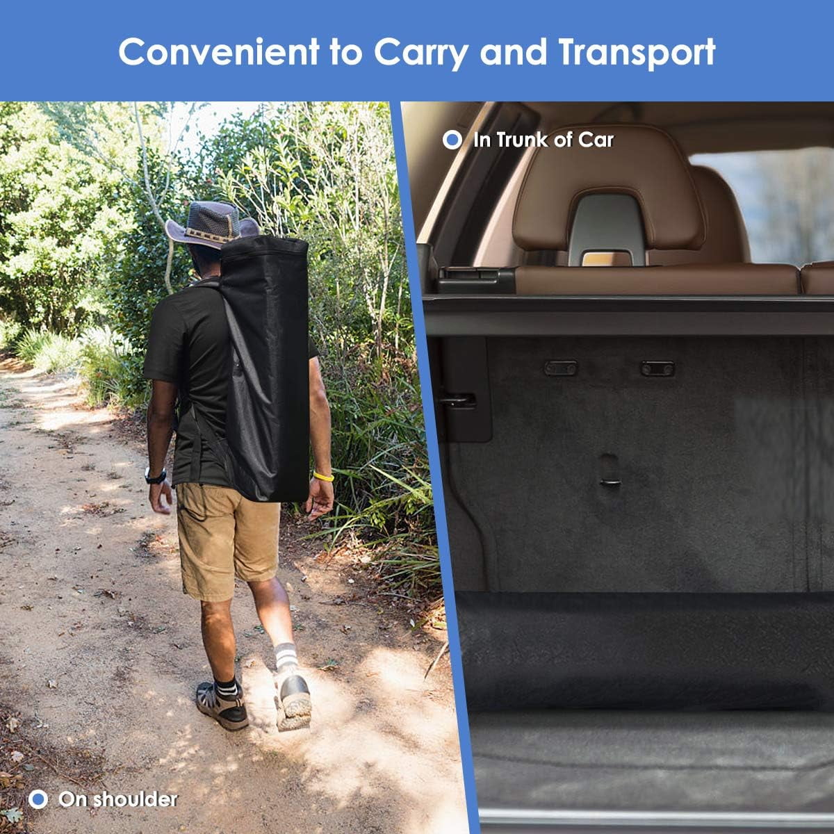 - Portable with Backpack: Comes with a thick backpack, the tent can be folded and stored in the bag. The net weight of the canopy is 17 pounds and its folded size is 29″L x 8″W x 8″H. Some of accessories are suitable to be stored in the side pocket. It is great to carry the tent when you go hiking, surfing, camping and other outdoor activities.