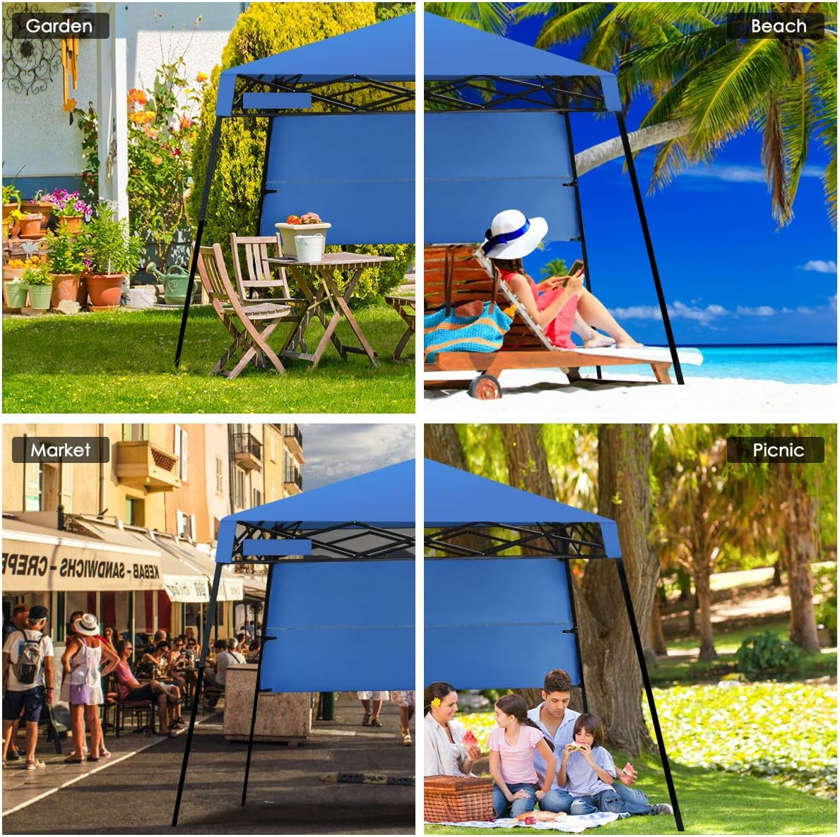 Protective Canopy & Sidewall: Crafted from tear-resistant oxford fabric with a silver coating, the canopy of the gazebo tent ensures UPF 50+ sun protection and great durability. More than that, the built-in sidewall provides extra sun shielding and privacy.