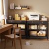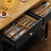 Convenient Space Storage: The 40” W countertop offers space for meal prep and dining, with two drawers for storage and two open shelves for storage and and ventilation. One side features three hooks for towels, cups, and utensils