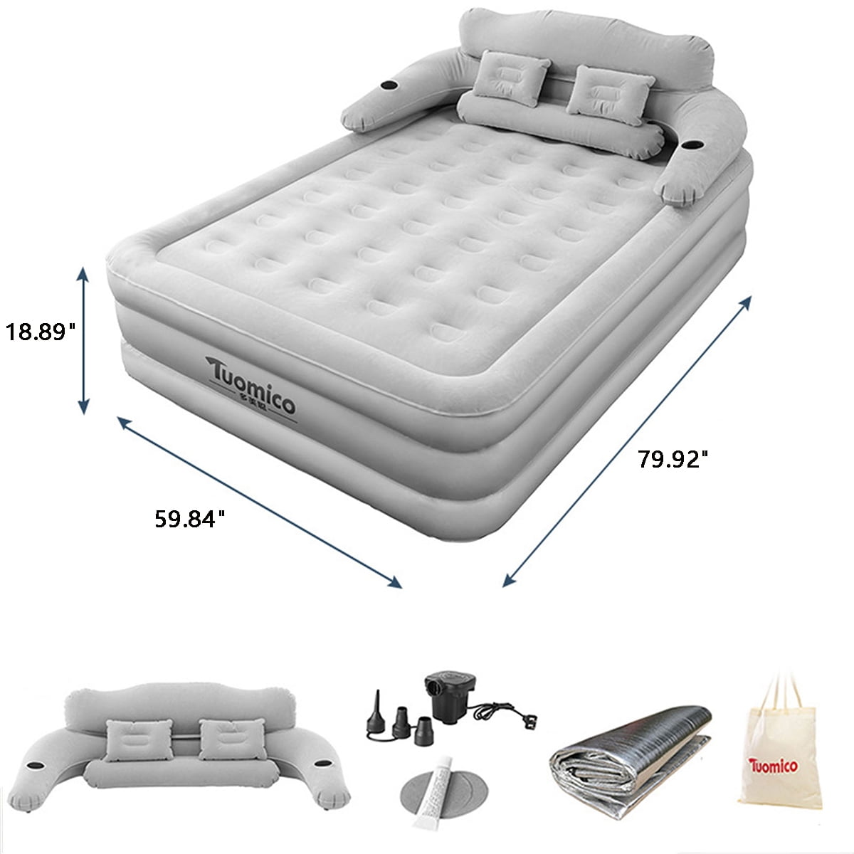 • Packing Include Set: 1*air mattress + 1*Inflatable Headboard + 2*inflatable pillow + 1*air pump+ 1*storage bag + 1*repair kit(If you have any dissatisfaction, please feel free to contact us, we have a dedicated team to serve you and give you a satisfactory answer.)