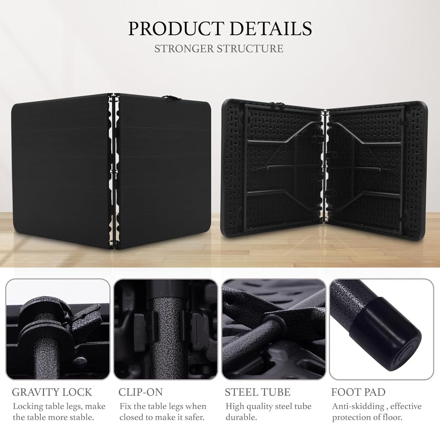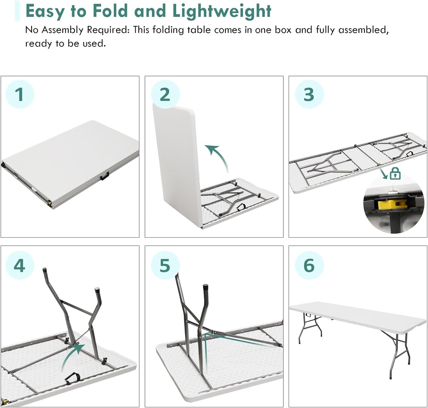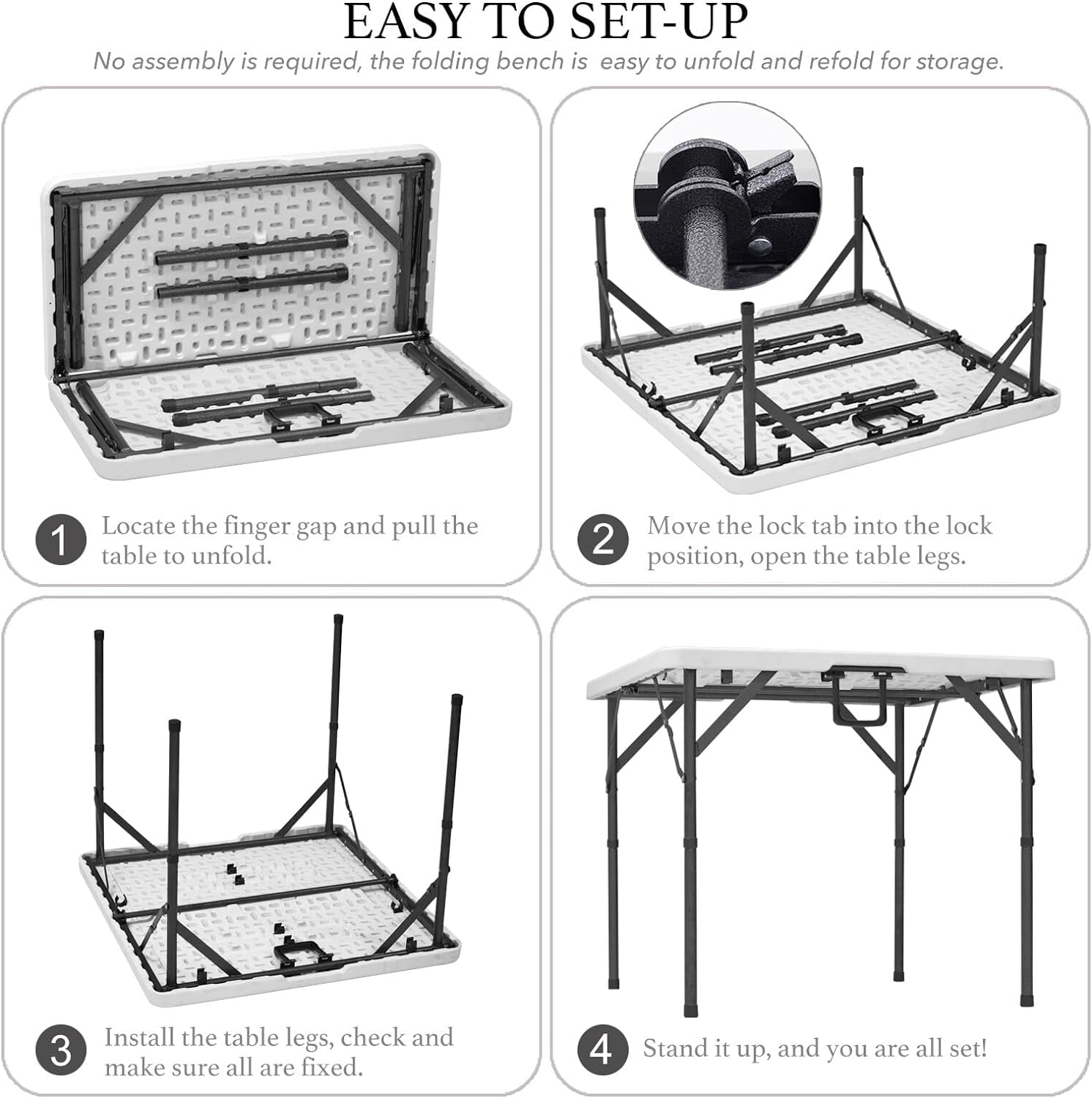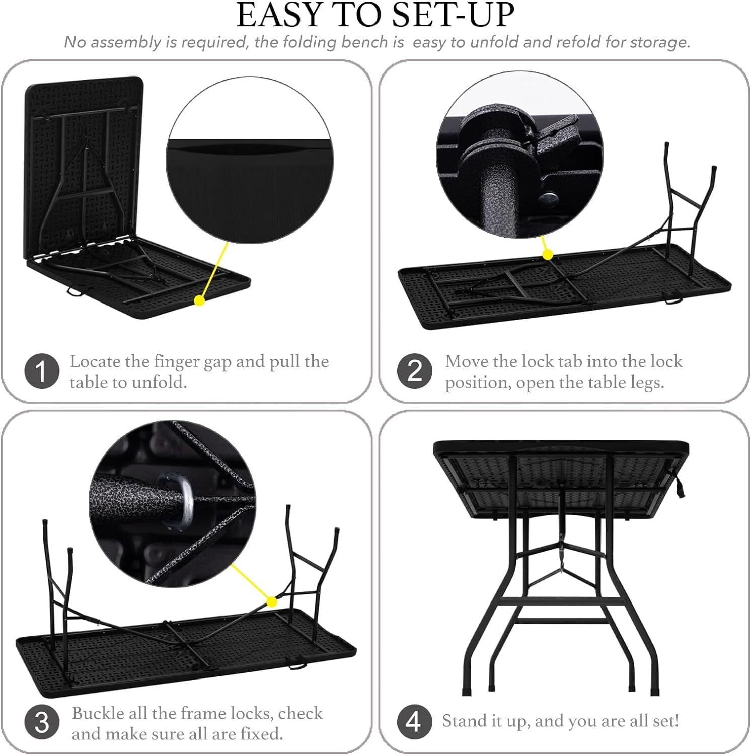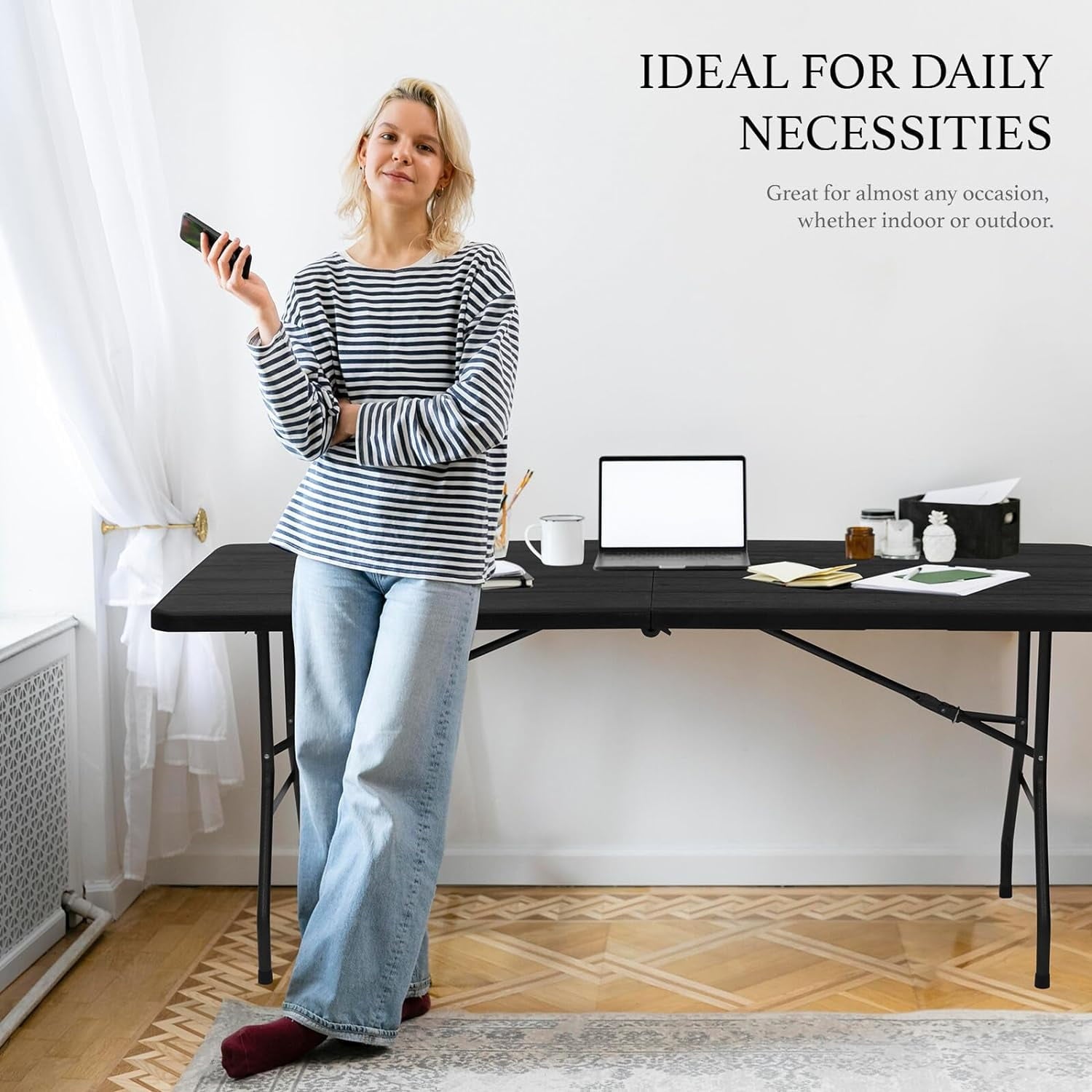 - No Assembly Required: Convenience at its finest! Our folding table requires no extra accessories. Use it when you need it, then fold it away for easy storage. No fuss, no hassle.