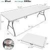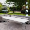 Ready to use right out of the box! Simply unpack and unfold the table to start your indoor or outdoor party.