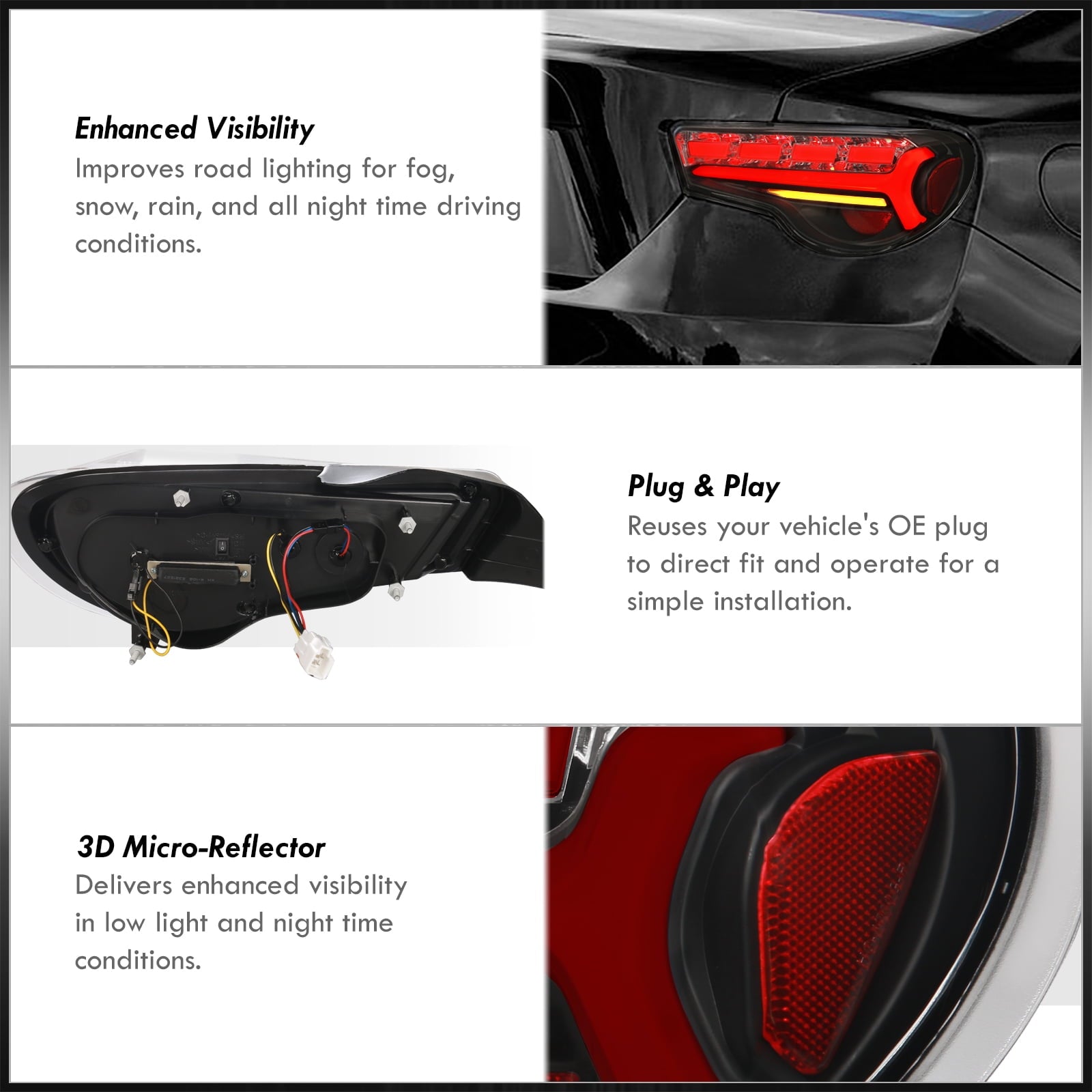 AJP Distributors Black Housing Clear Lens Sequential Red Tube LED Signal Tail Lights Brake Stop Lamps Pair Compatible/Replacement For Subaru BRZ Toyota 86 FRS 2013 2014 2015 2016 2017 2018 2019 2020