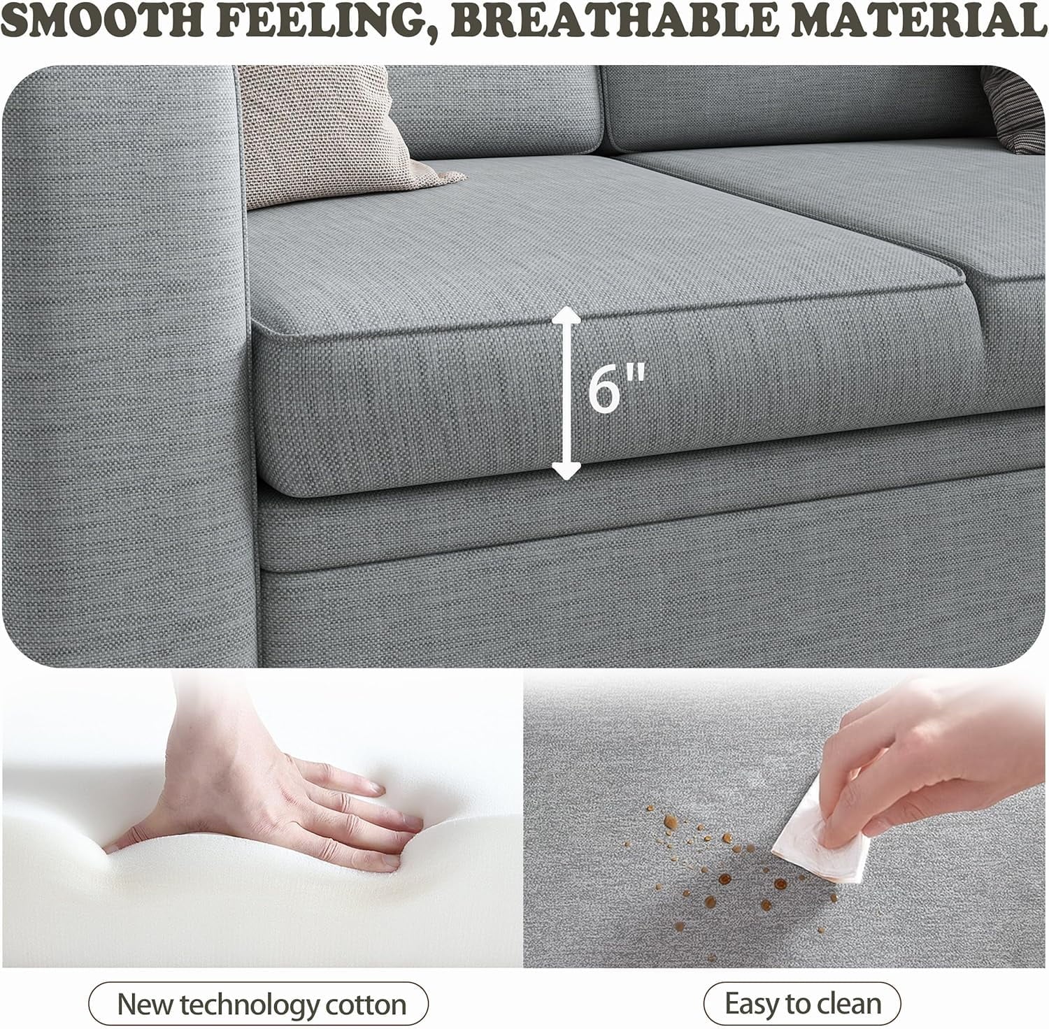 • Reversible Customization: Configure as left/right sectional with gap-free backrest (79″×79″×31.5″) for flexible studio/condo layouts.