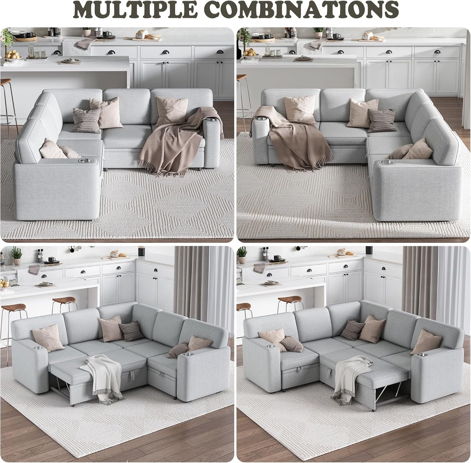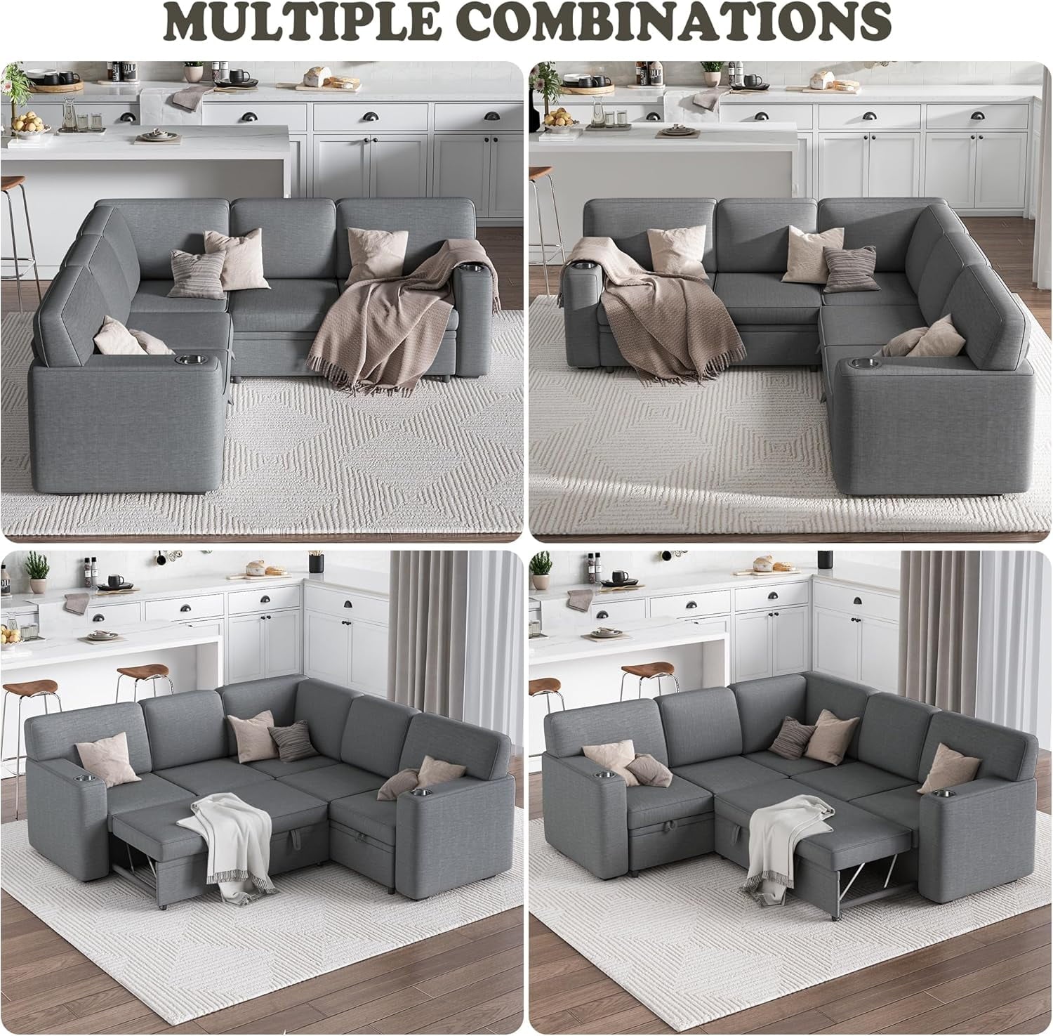 Akaber Convertible Modular Sectional Sleeper Sofa with Pull Out Bed, 5-Seat L Shaped Couch Sofas with Storage for Living Room
