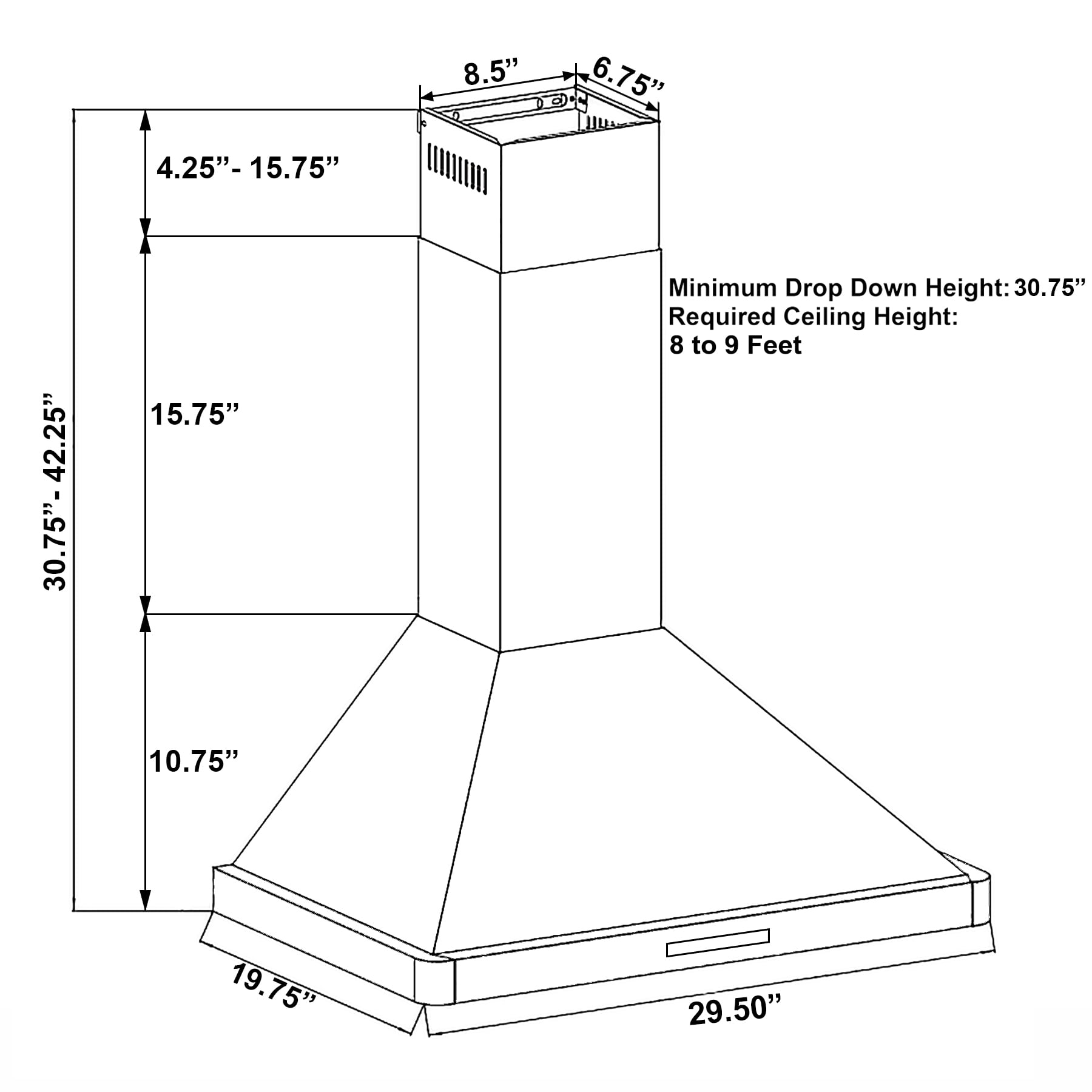 - Required Ceiling Height: 30.75″