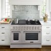 Akicon 48″ Slide-in Freestanding Professional Style Gas Range with 6.7 Cu. Ft. Oven, 8 Burners, Convection Fan, Cast Iron Grates, & Blue Porcelain Oven Interior, In Stainless Steel