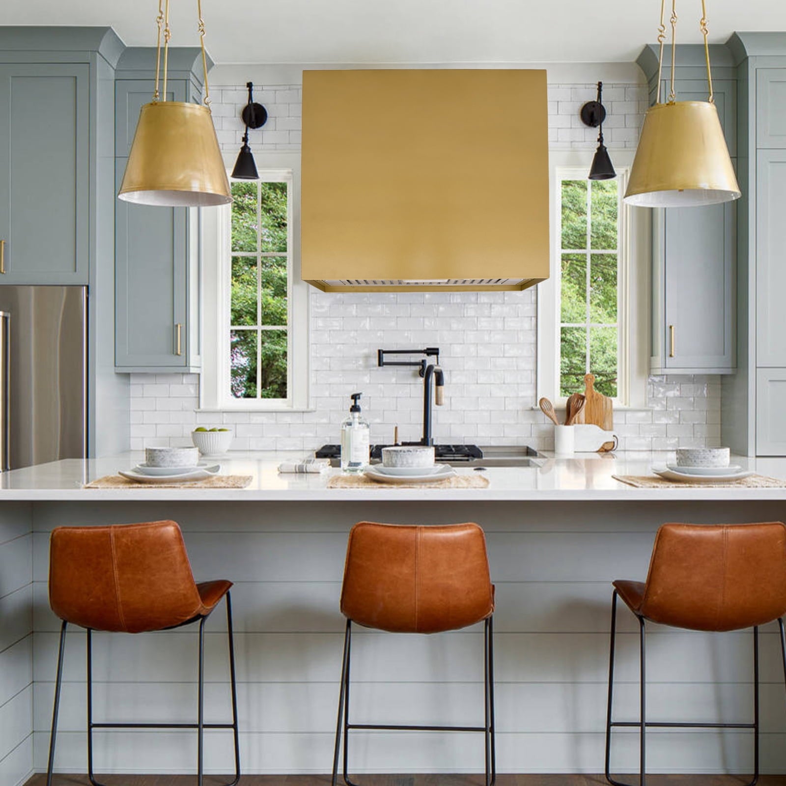 - Modern-Style Design: The stainless steel range hoods are available in 5 colors (Brushed Stainless Steel, Black, White, Matte Gold, Copper) and are suitable for most kitchens or condos. The dimension is 30″W/36″ W x 30″H x 14″D for wall mount installation, with a recommended height of 28″ to 30″ above your cooktop.