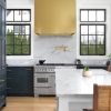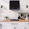 The stainless steel range hoods are available in 5 colors (Brushed Stainless Steel, Black, White, Matte Gold, Copper) and are suitable for most kitchens or condos. The dimension is 30″W/36″ W x 30″H x 14″D for wall mount installation, with a recommended height of 28″ to 30″ above your cooktop.