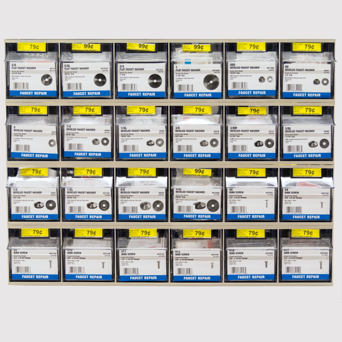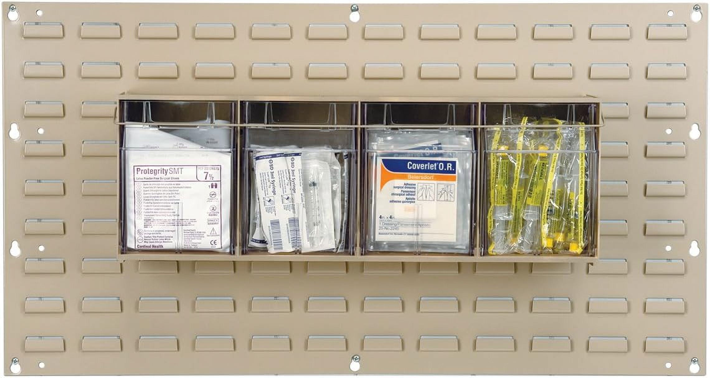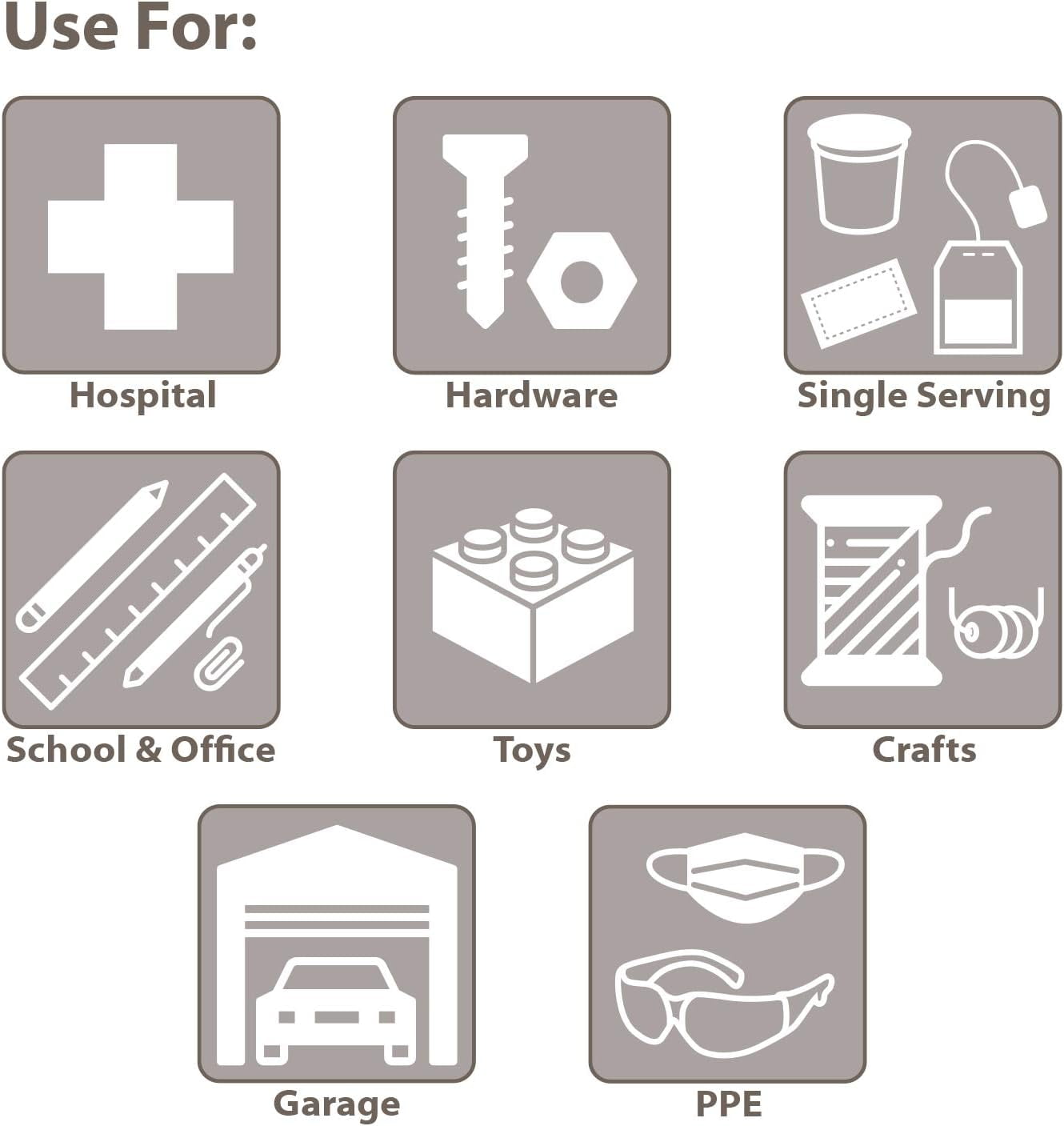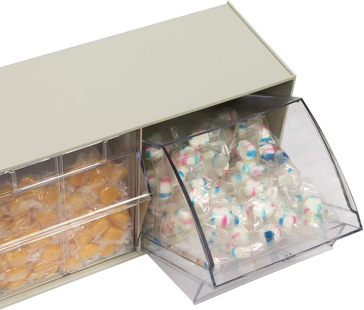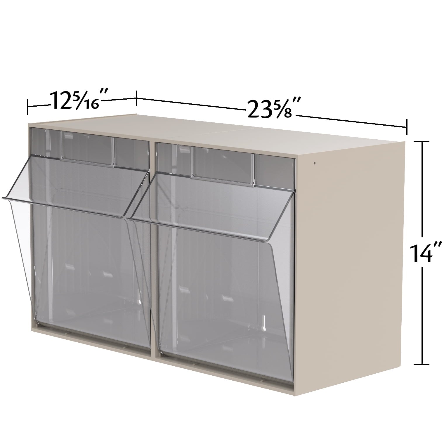 Akro-Mils TiltView Storage System Cabinets with Tip Out Bins offer users an attractive space-saving system that will keep you organized. All TiltView Bin Cabinets are the same width, so cabinets can be stacked one above the other making a nice presentation. Use in a workshop, work van or retail store for parts storage and hardware organization, or a dental office to store dental burs and other tools. Perfect for organizing packets of coffee, tea supplies, and single servings of creamers, ketchup, and mustard. Put several TiltView Cabinets together to create an attractive display for hardware, handles and plumbing fixtures, or in your pantry filled with beans, rice, nuts, dried fruit, etc. The removable crystal-clear bin cups allow quick contents identification and close securely for dust protection. Can sit on a desk or be mounted on a wall. Each bin unit comes with card stock labels to identify the contents.TiltView 06702