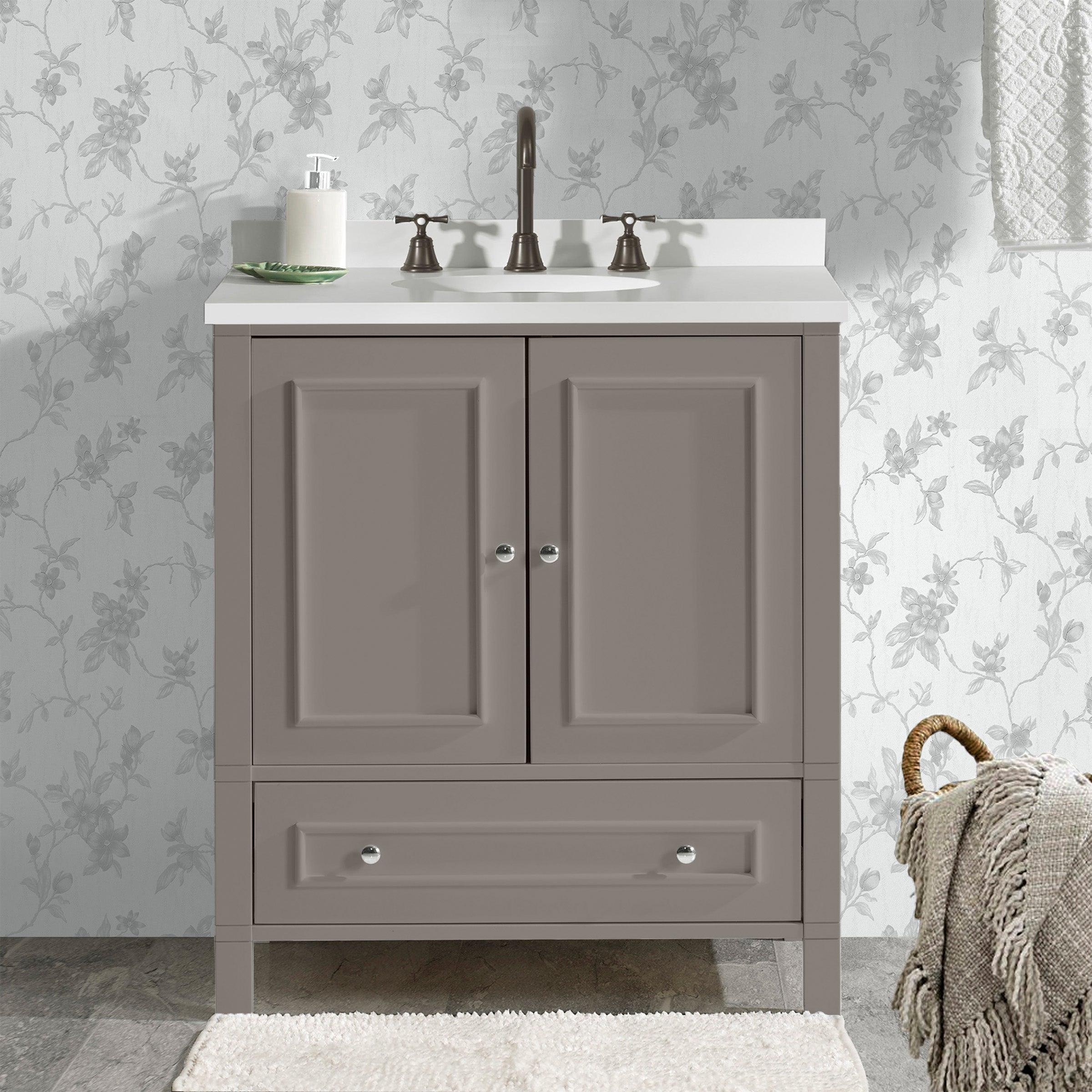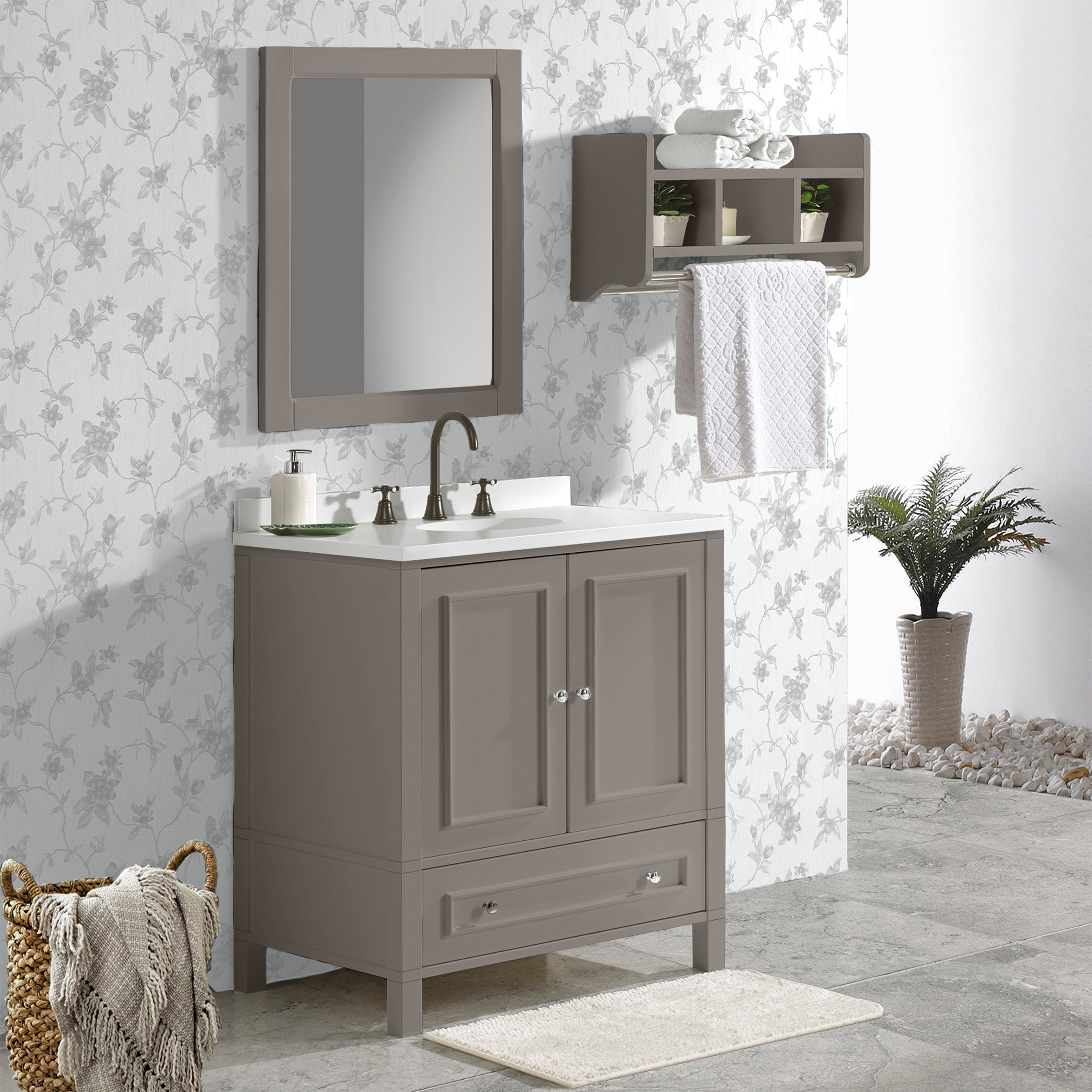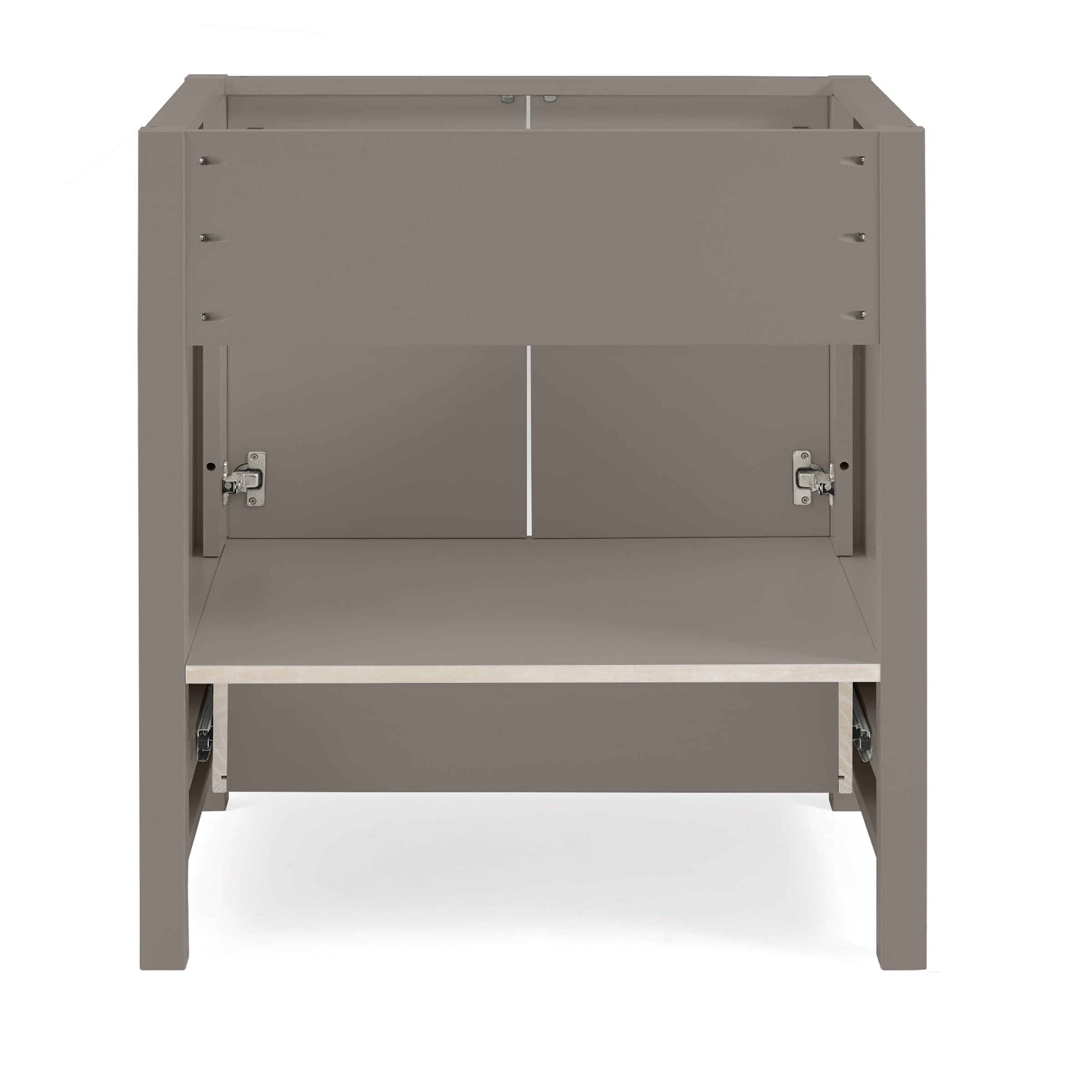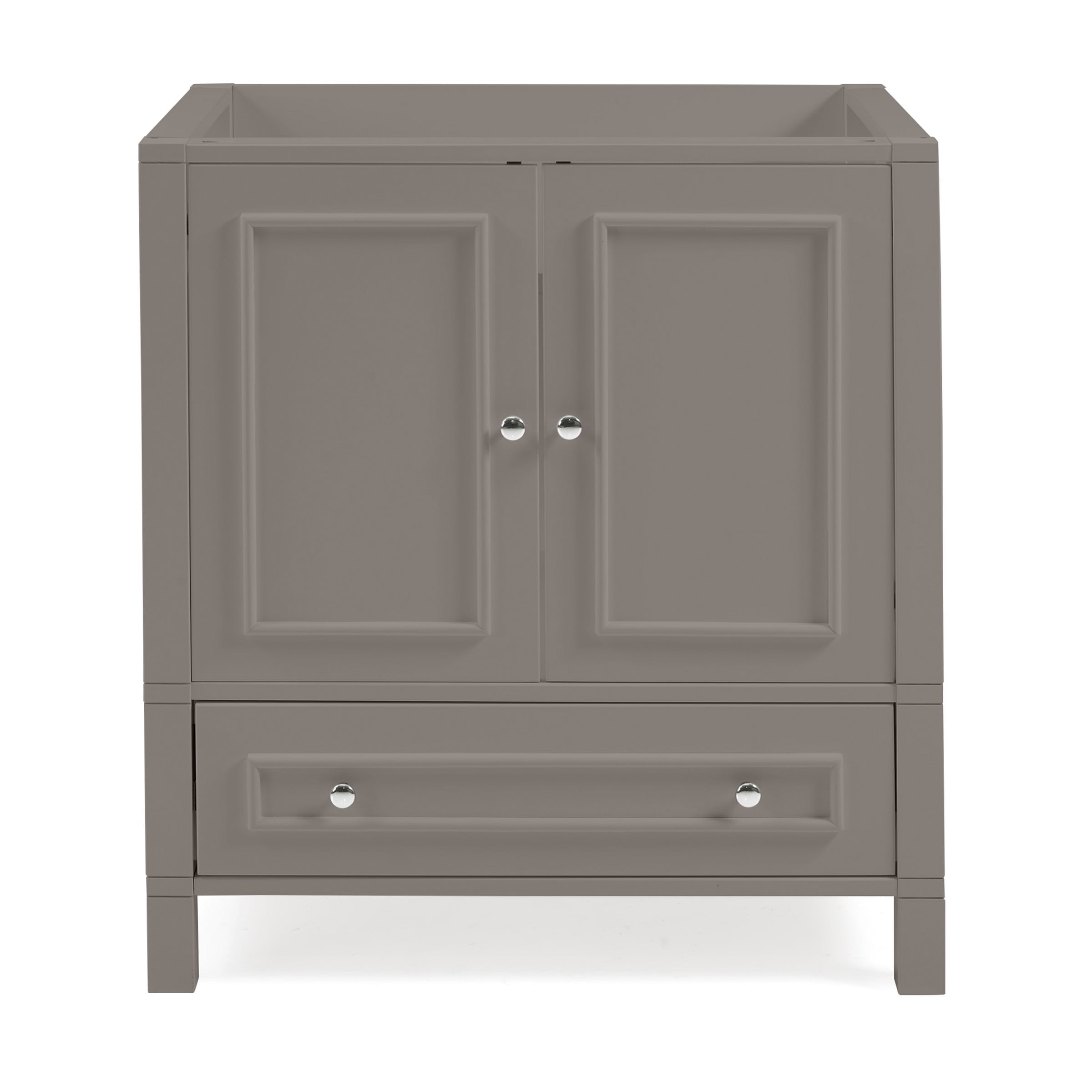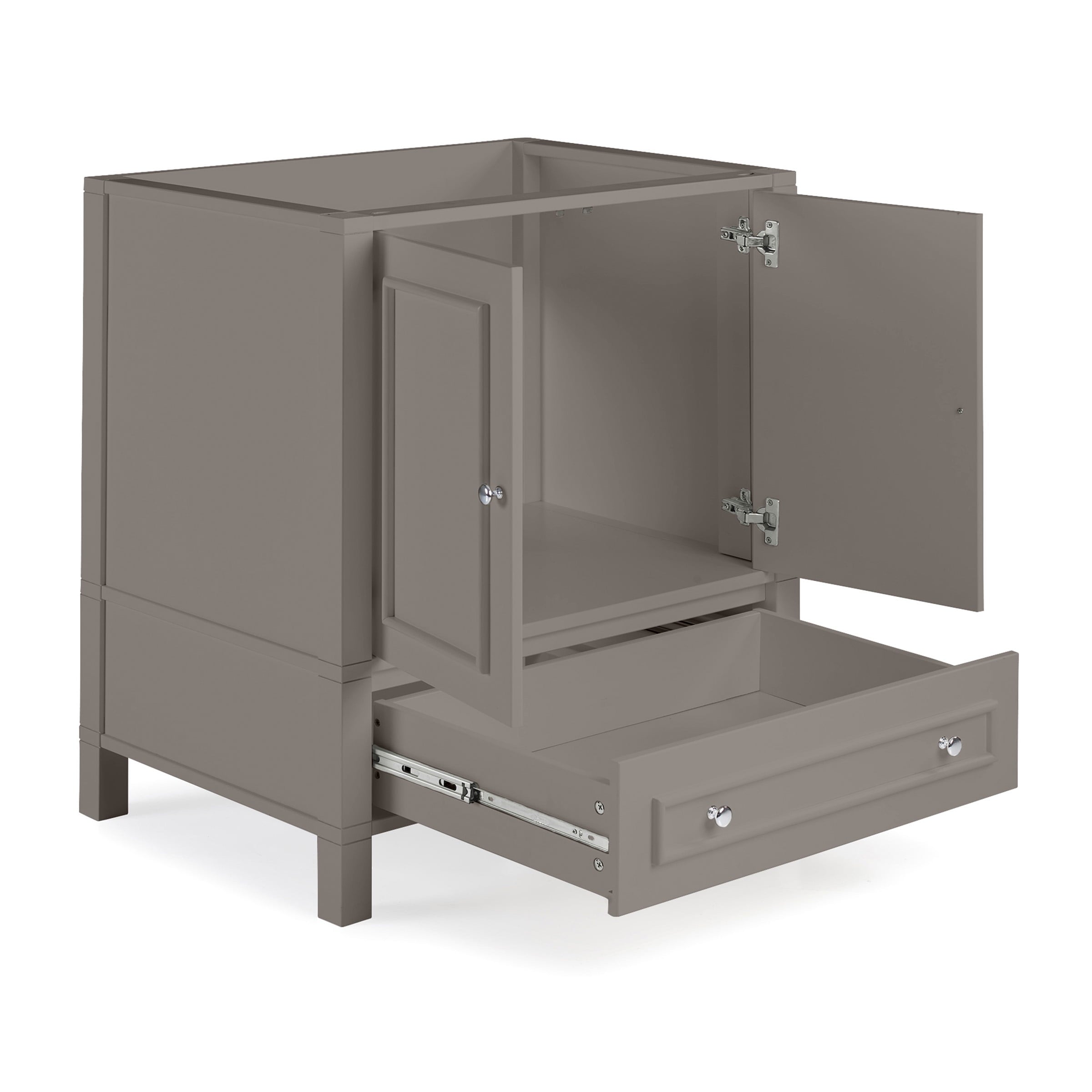 Update your bathroom with the detailed elegance of the Williamsburg 30” Bathroom Sink Vanity by Alaterre Furniture. Constructed from solid pine wood and composite wood, this small gray vanity features soft-close doors, a large bottom drawer, nickel hardware, and adjustable height levelers for stable installation. The modern bathroom vanity accommodates a 31-inch-wide by 22-inch-deep top with 1 center-set sink basin; the top and sink are not included, allowing you to choose the style that best matches your décor. The Williamsburg Collection from Alaterre Furniture features premium quality solid wood bathroom vanities that can be self-assembled using the included manual or by referring to our helpful assembly videos.