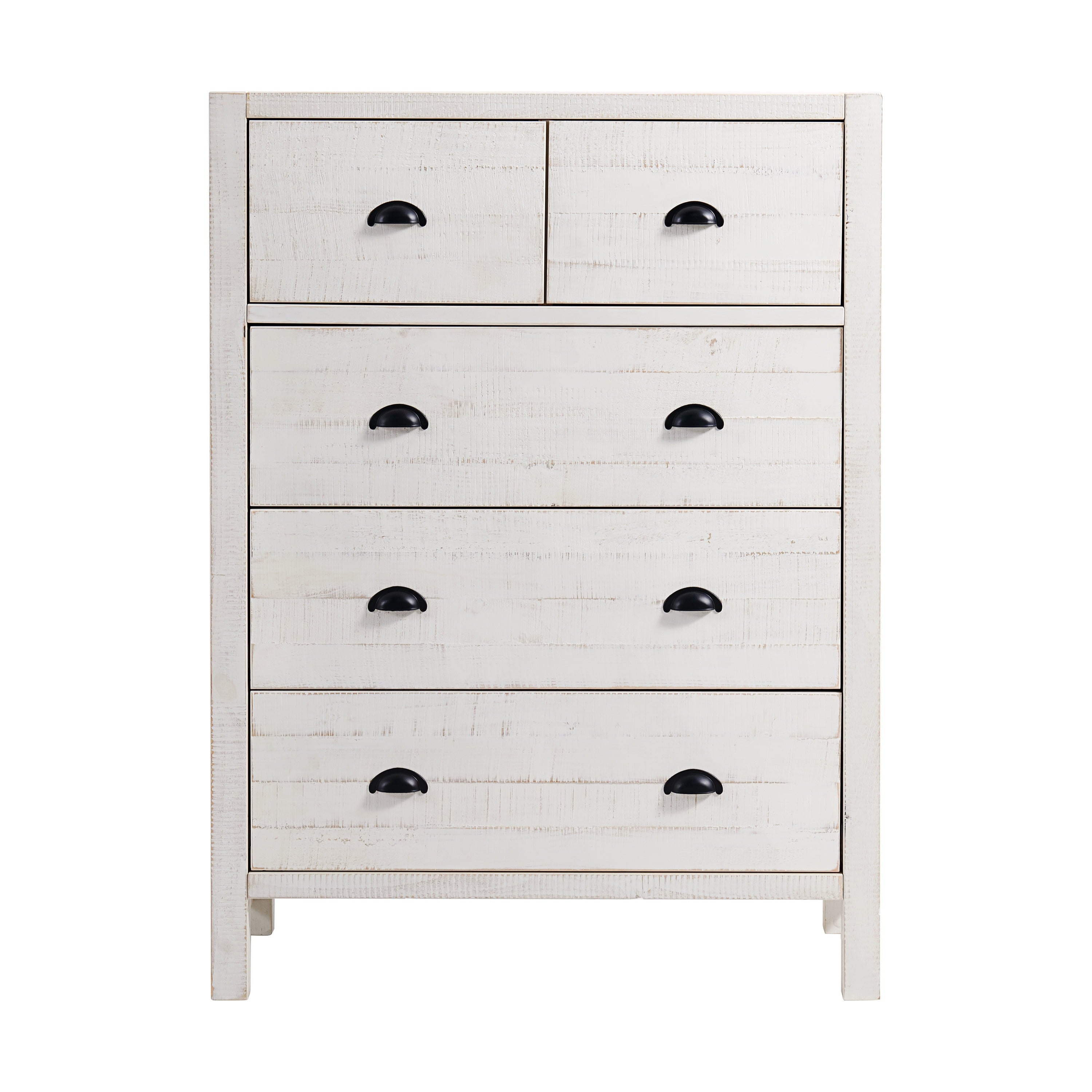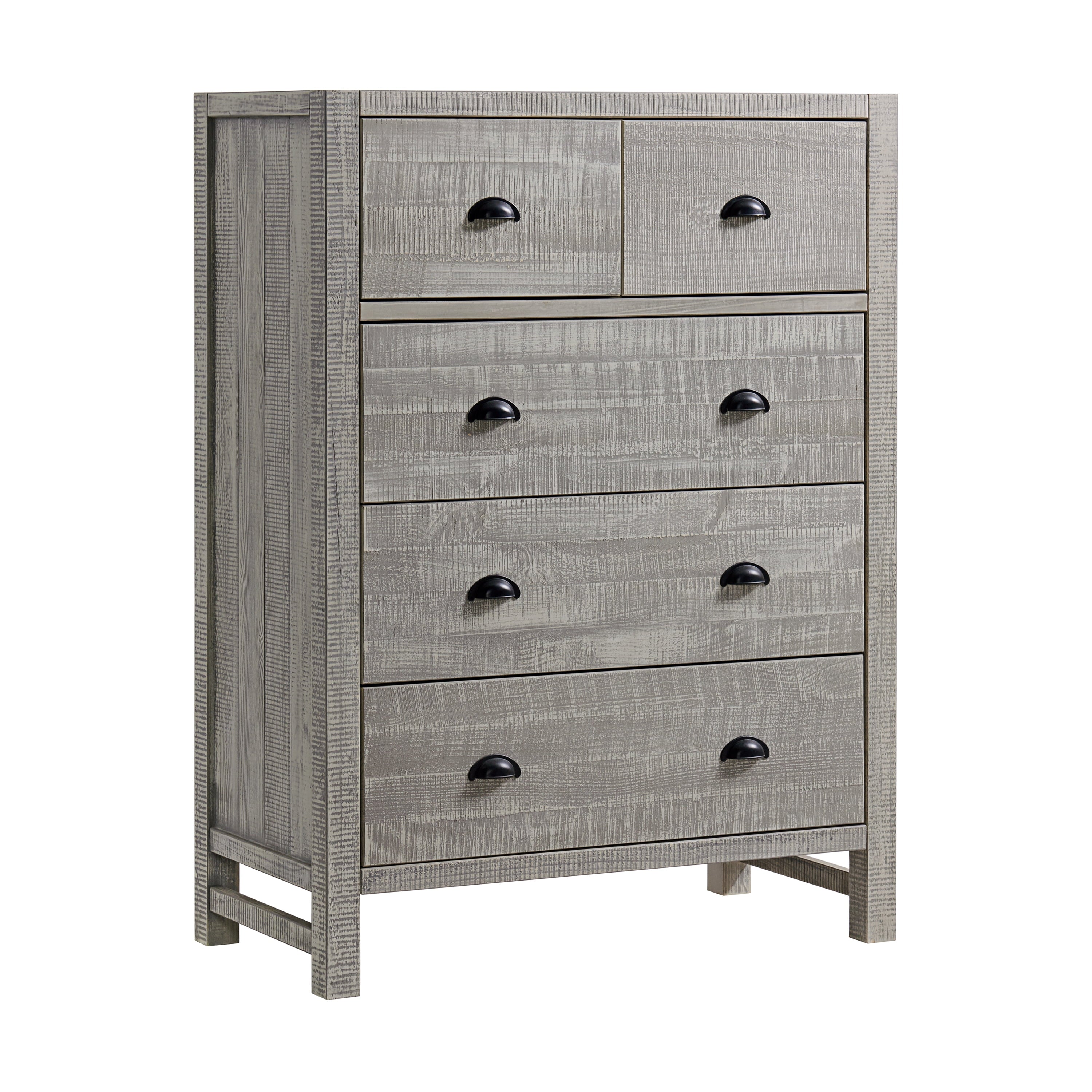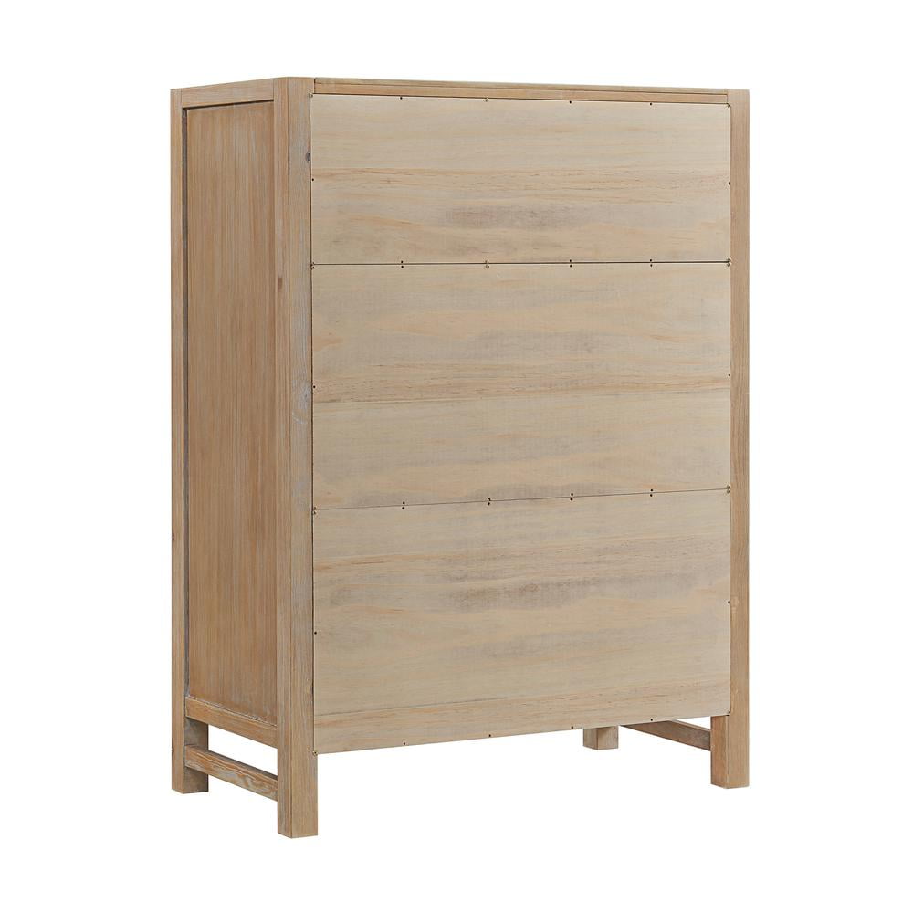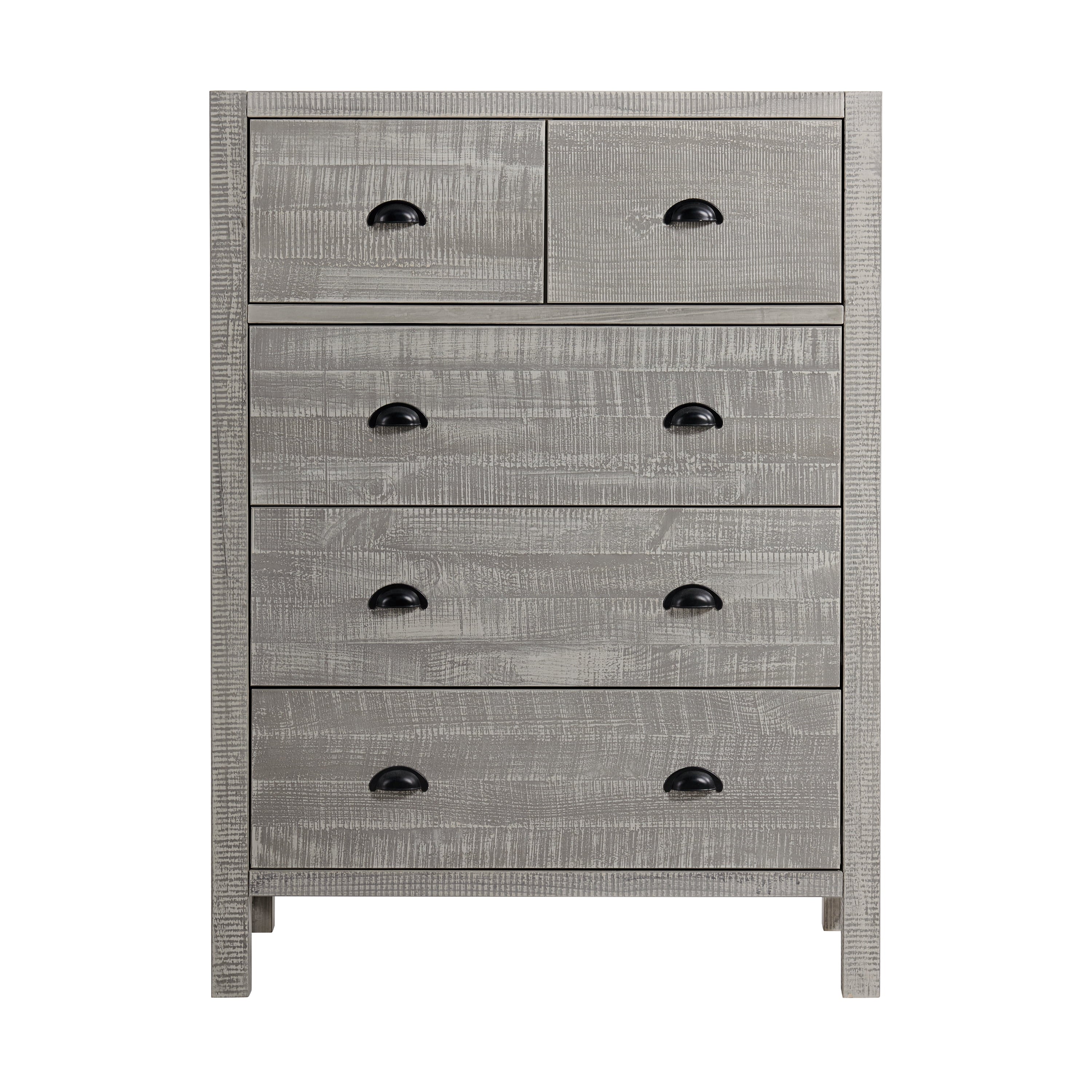 Simple yet striking, this bedroom collection transforms your space into an inviting haven. This 5-drawer chest for Adult is ideal provides ample storage for your clothes, blankets, and accessories. The versatile style complements a wide array of styles ranging from modern rustic to a boho retreat. Made of solid pine wood. These pieces are well constructed, durable, and will last for years to come. The light driftwood finish highlights tonal variations, grain and marks that are unique to each piece. Assembly required.