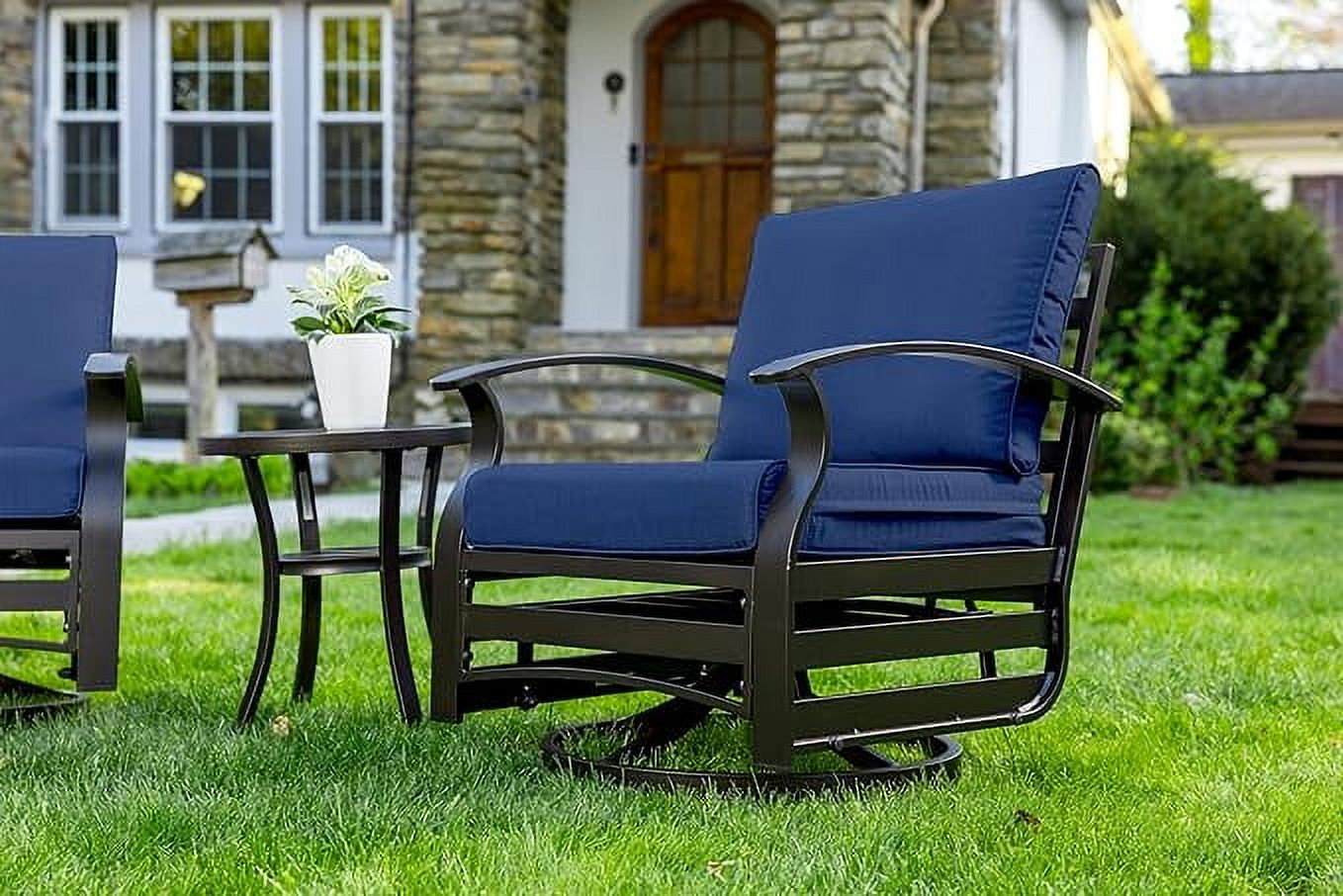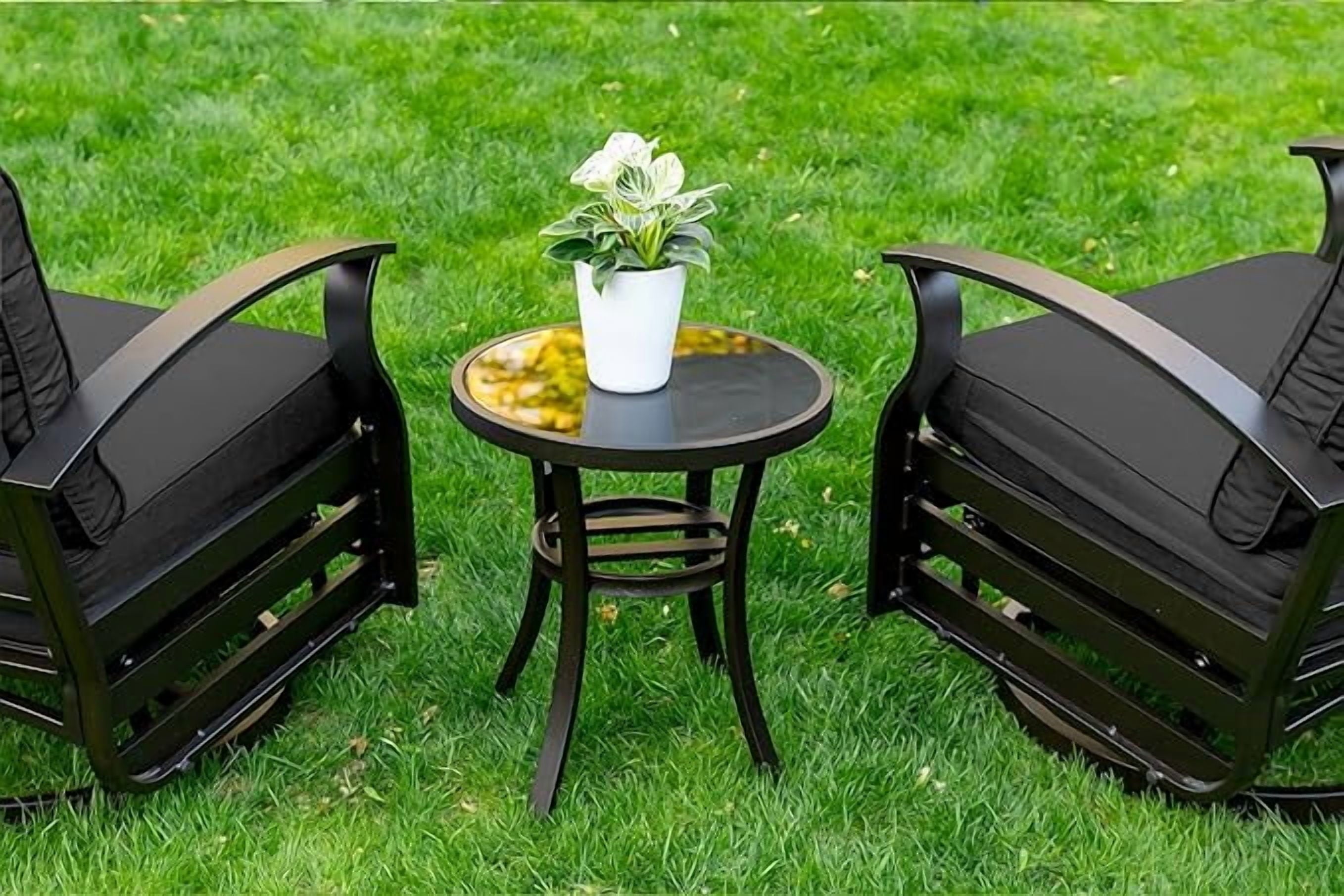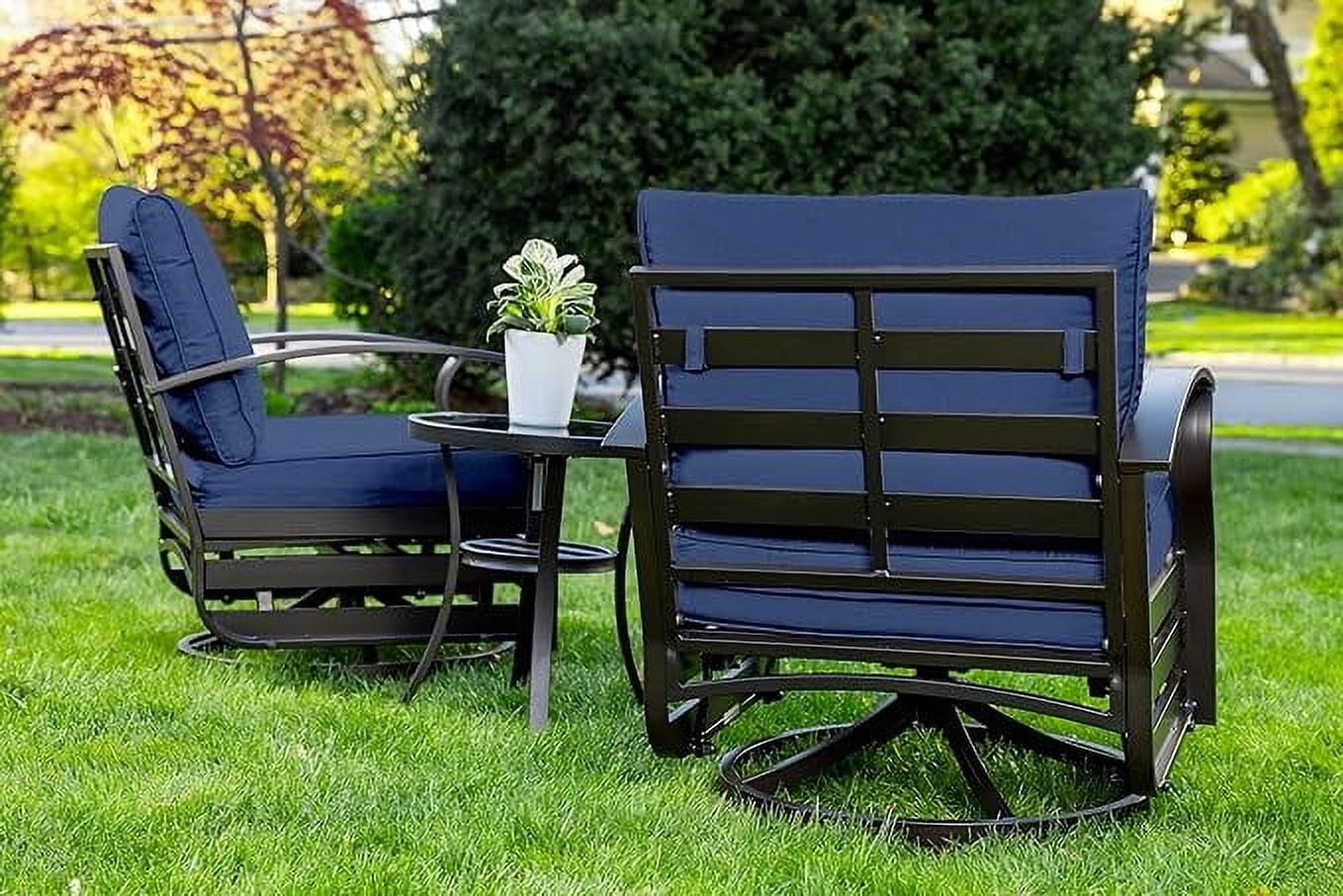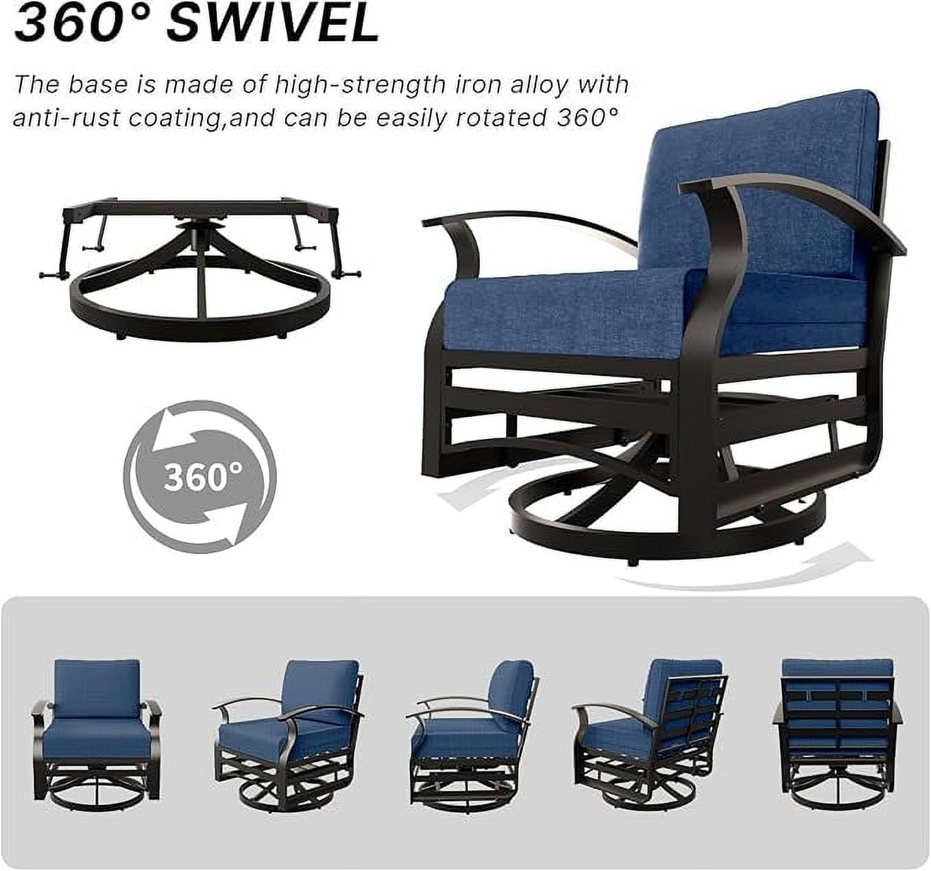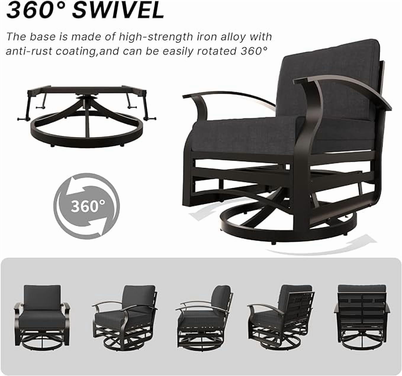 Home Outdoor Conversation Sets ALAULM 3 Piece Patio Outdoor Aluminum Metal Swivel Rocking Chair with 1 Coffee Table and 2 Khaki Padded Cushions Outdoor Metal Swivel Rocking Chair Furniture Conversation Set for Porch Garden