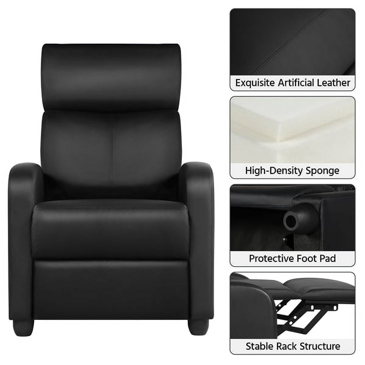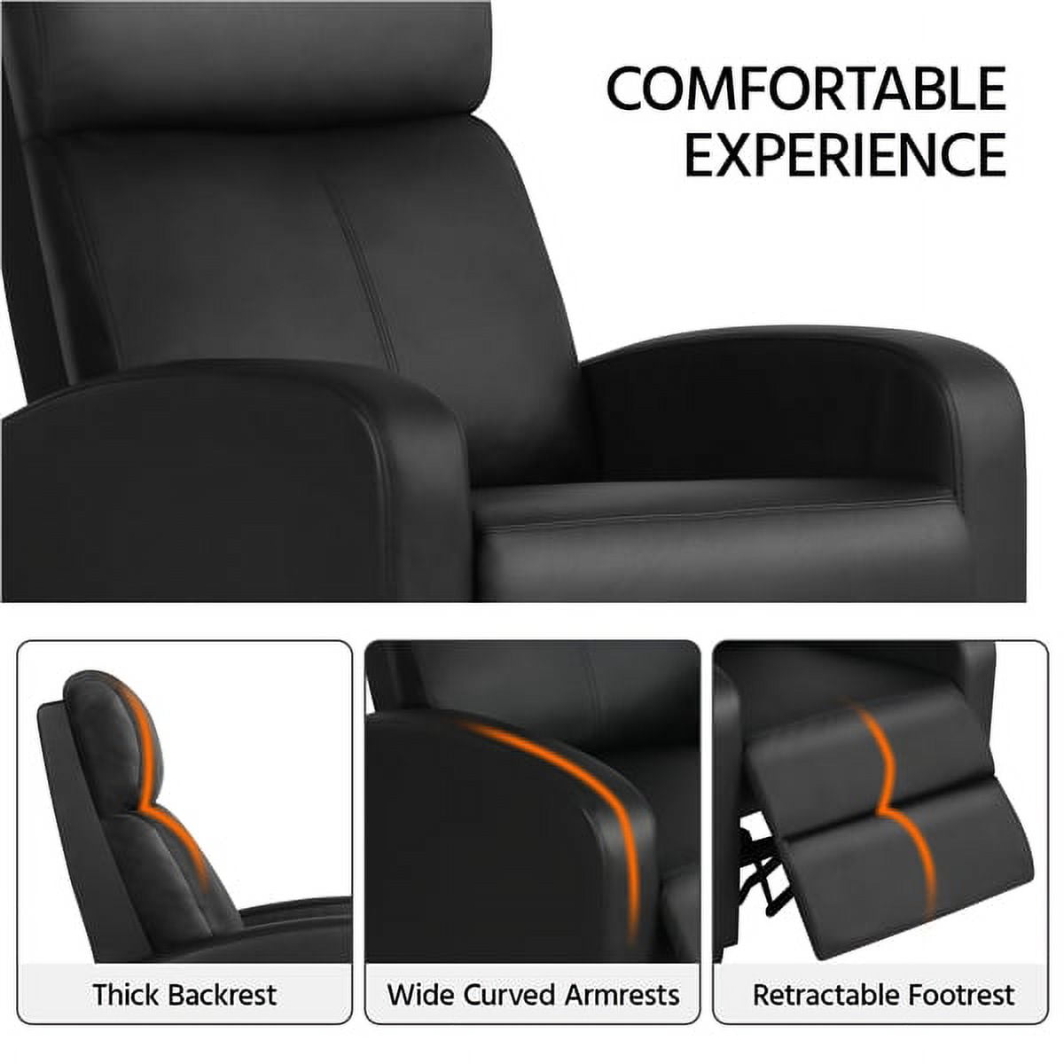 • Alden Design Faux Leather Push Back Theater Recliner Chair with Footrest for Livingroom, Black: