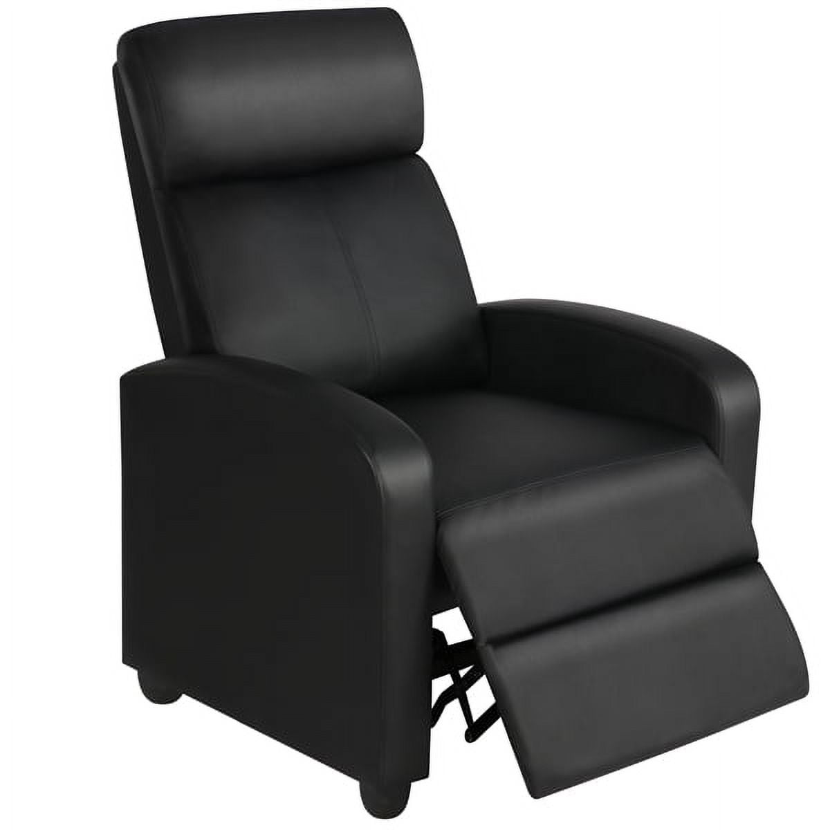 Alden Design Faux Leather Push Back Theater Recliner Chair with Footrest for Livingroom, Black