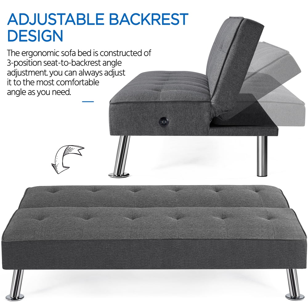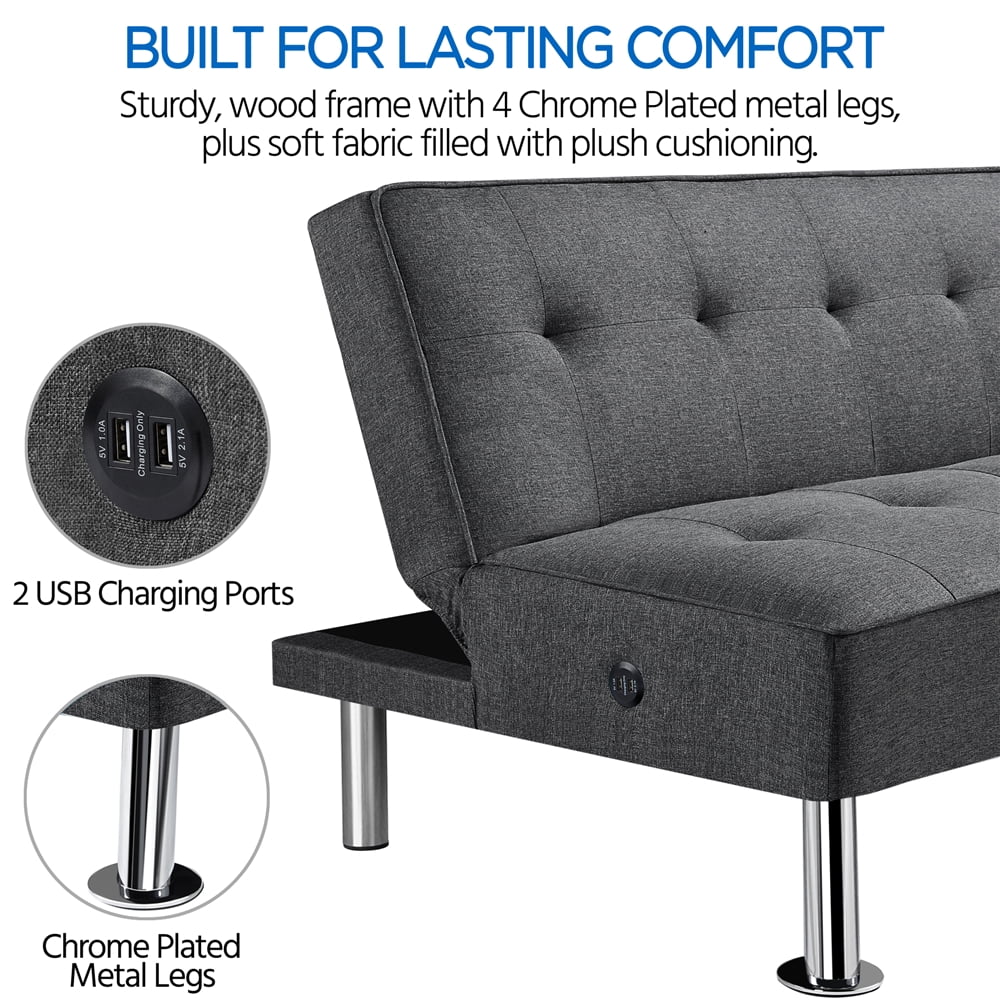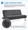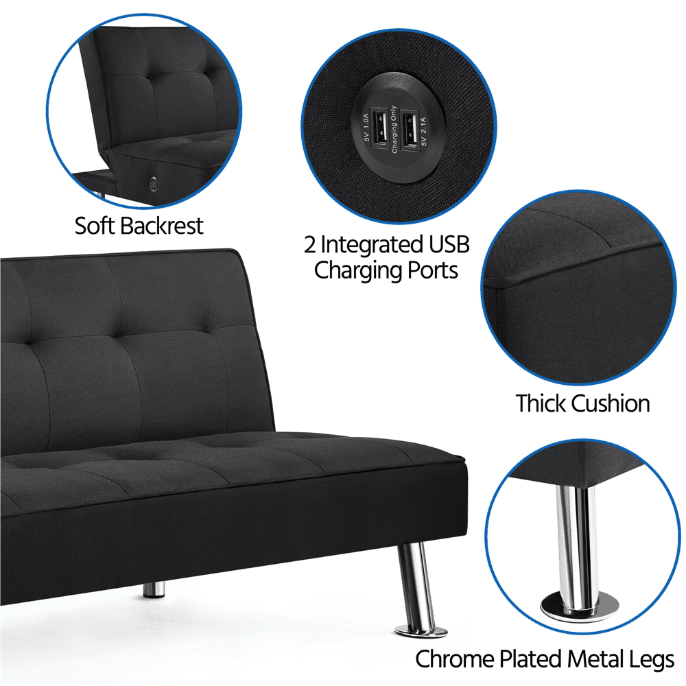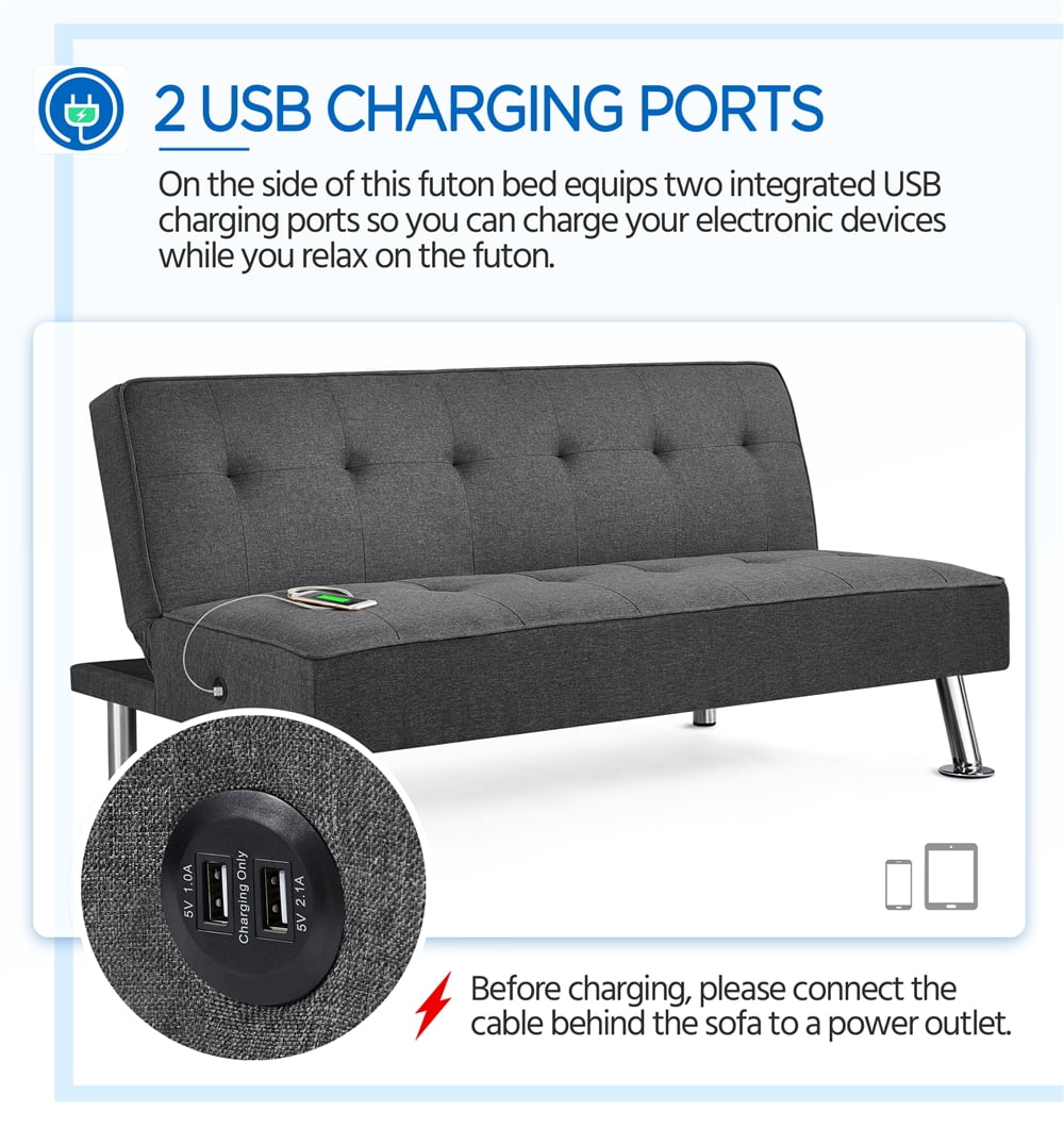 - 2 USB Ports: Two built-in USB charging ports on the futon bed’s side let you charge electronics while relaxing.