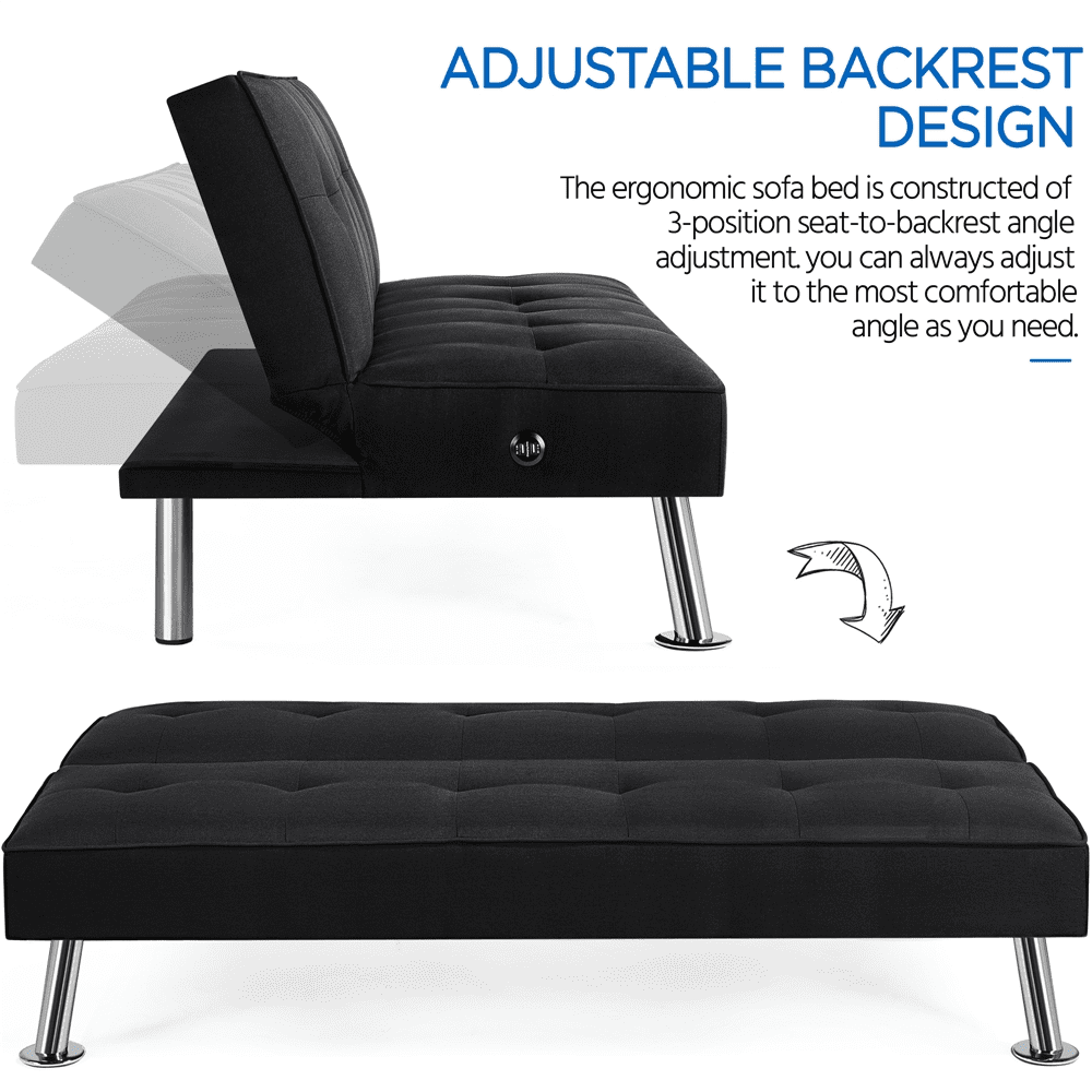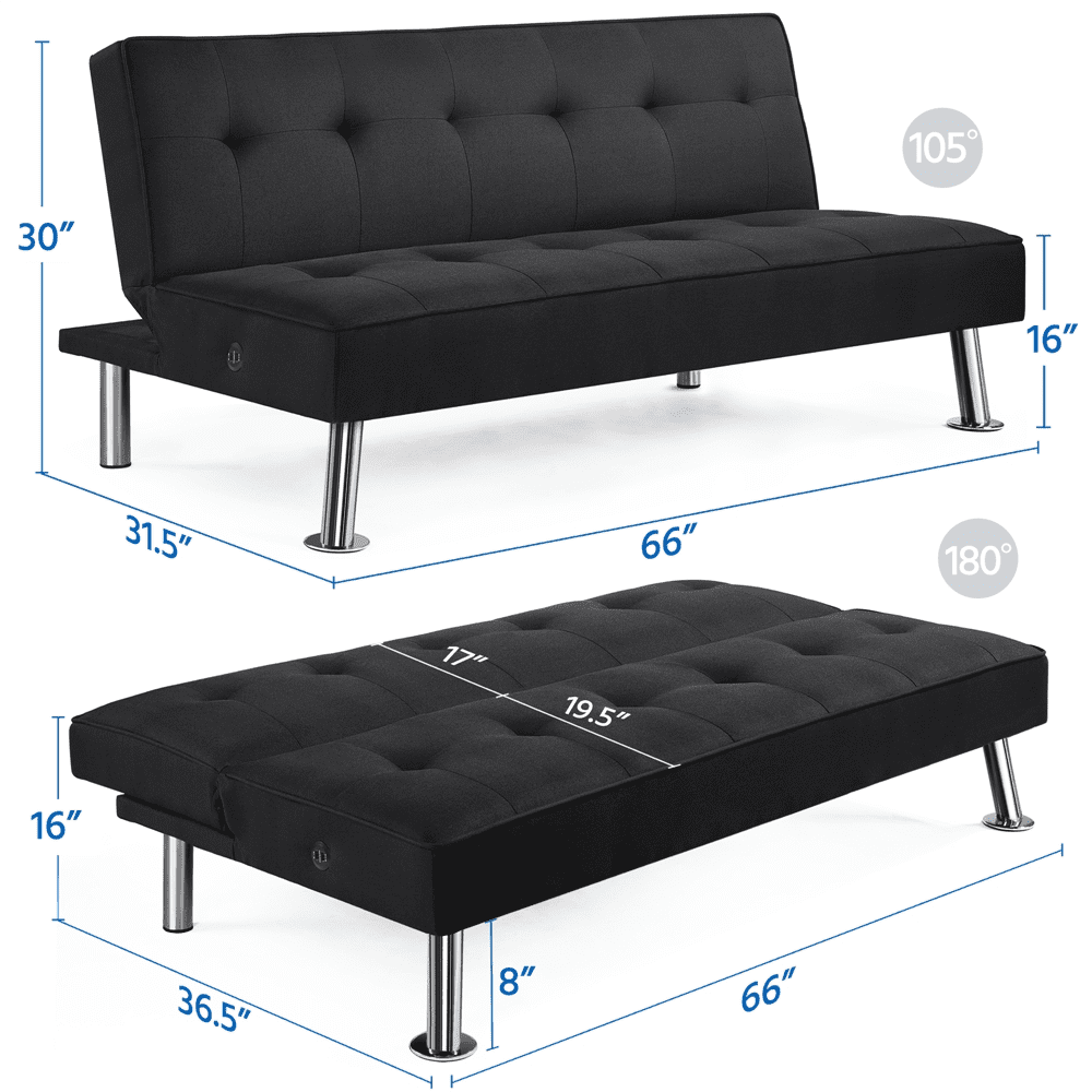 - Alden Design 66″ Modern Fabric Convertible Futon Sofa Bed with USB for Small Space, Black: