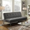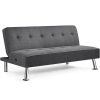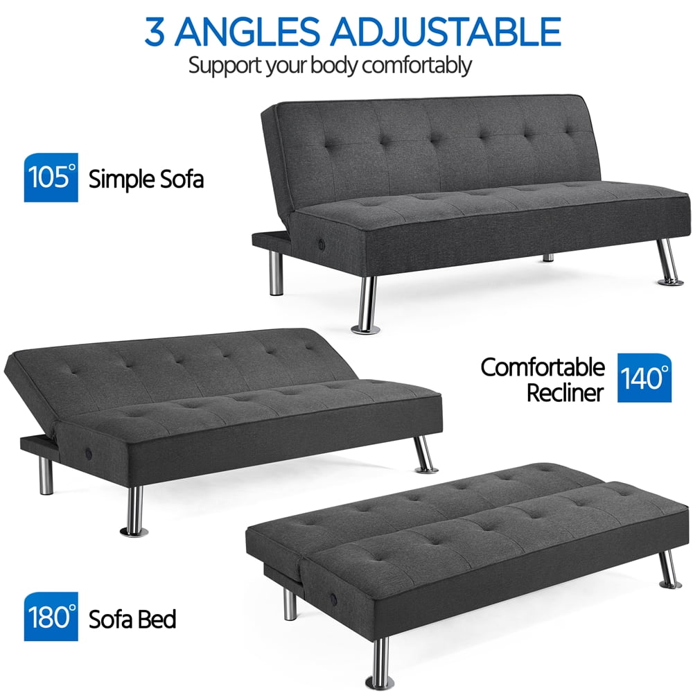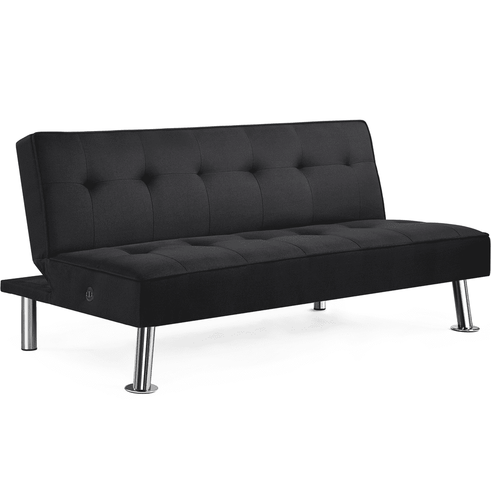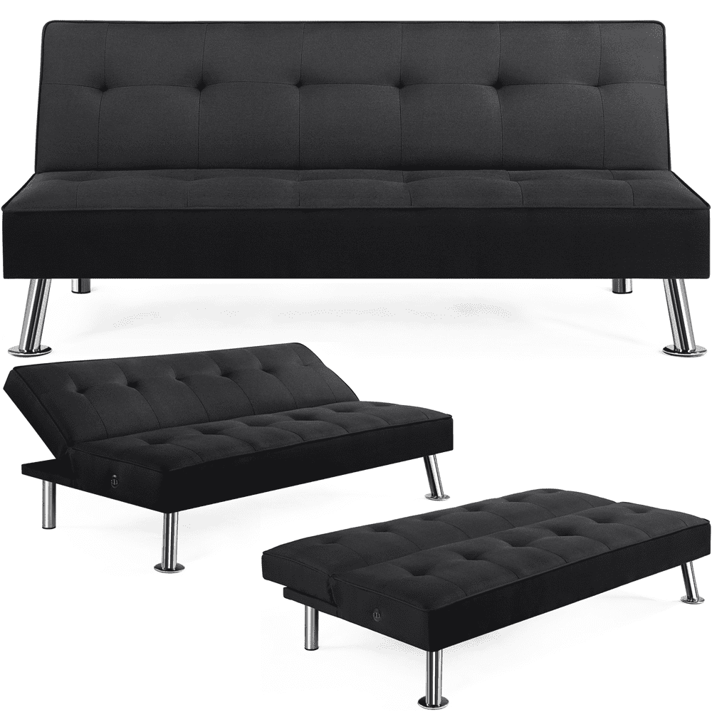 - Outstanding durability: This futon sofa bed stands on 4 chrome metal legs and is made with a plywood frame, polyester fabric, foam filling, and metal zig-zag springs.