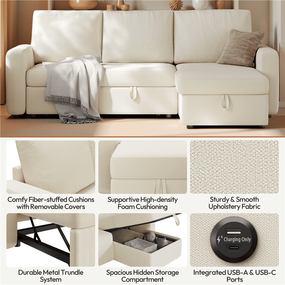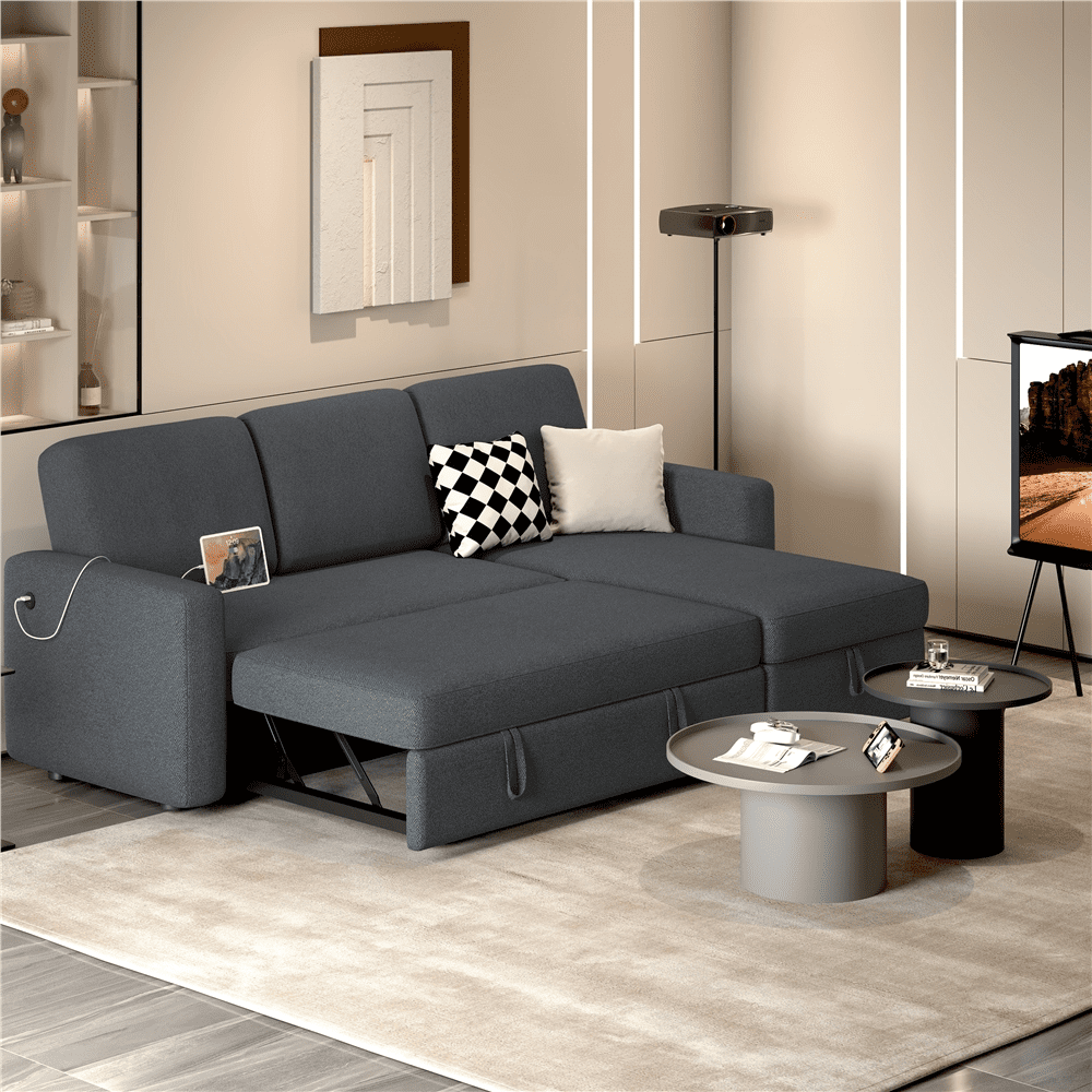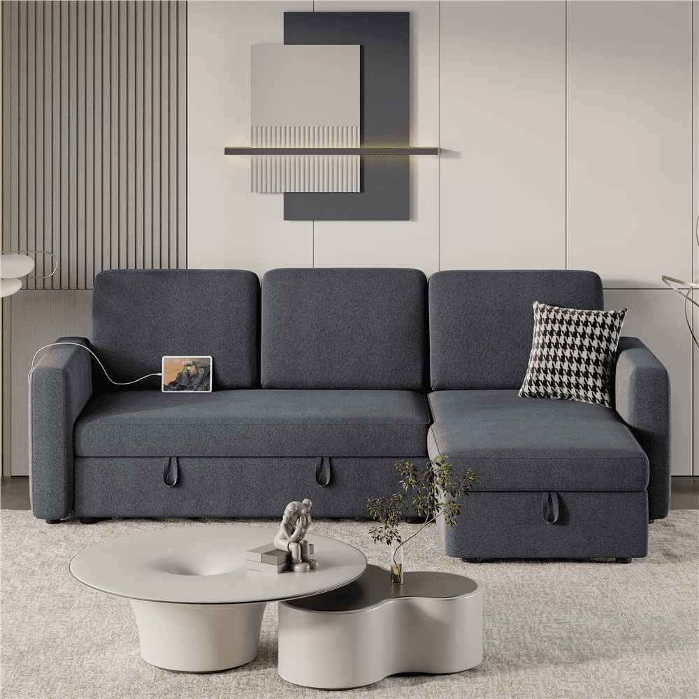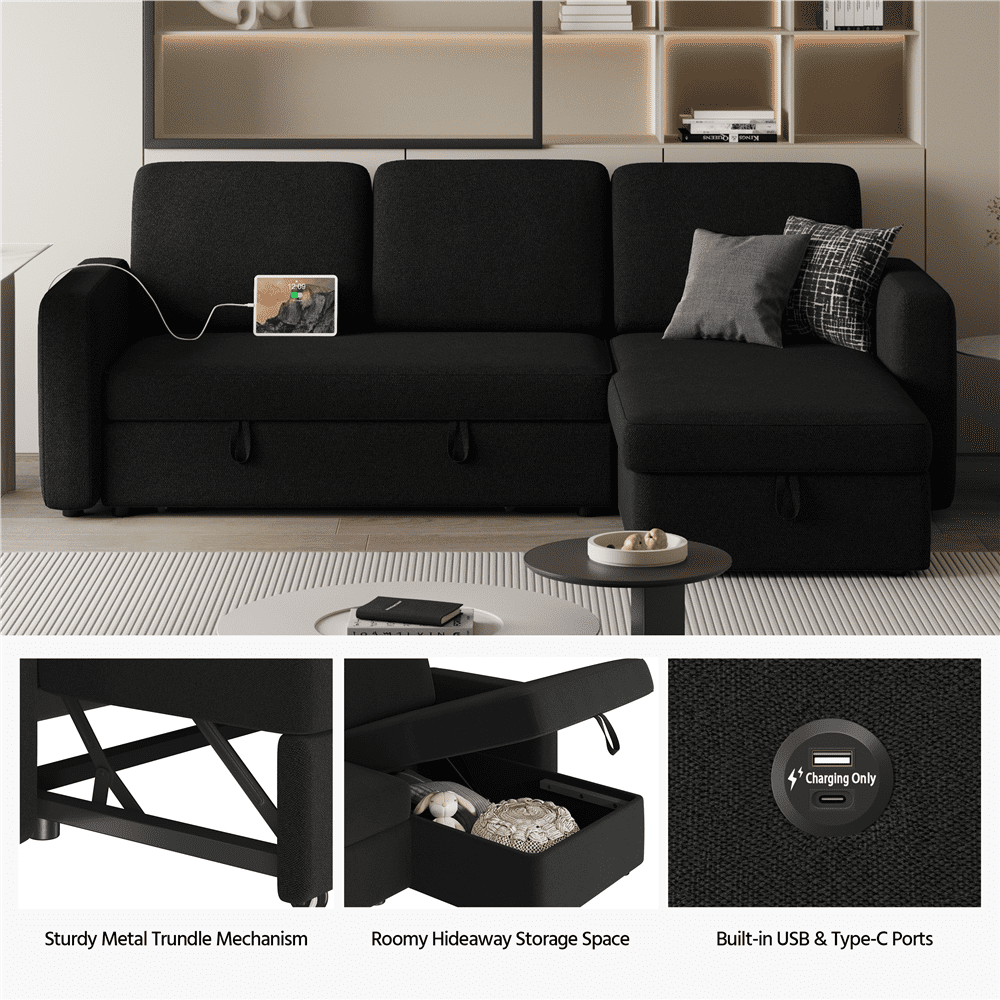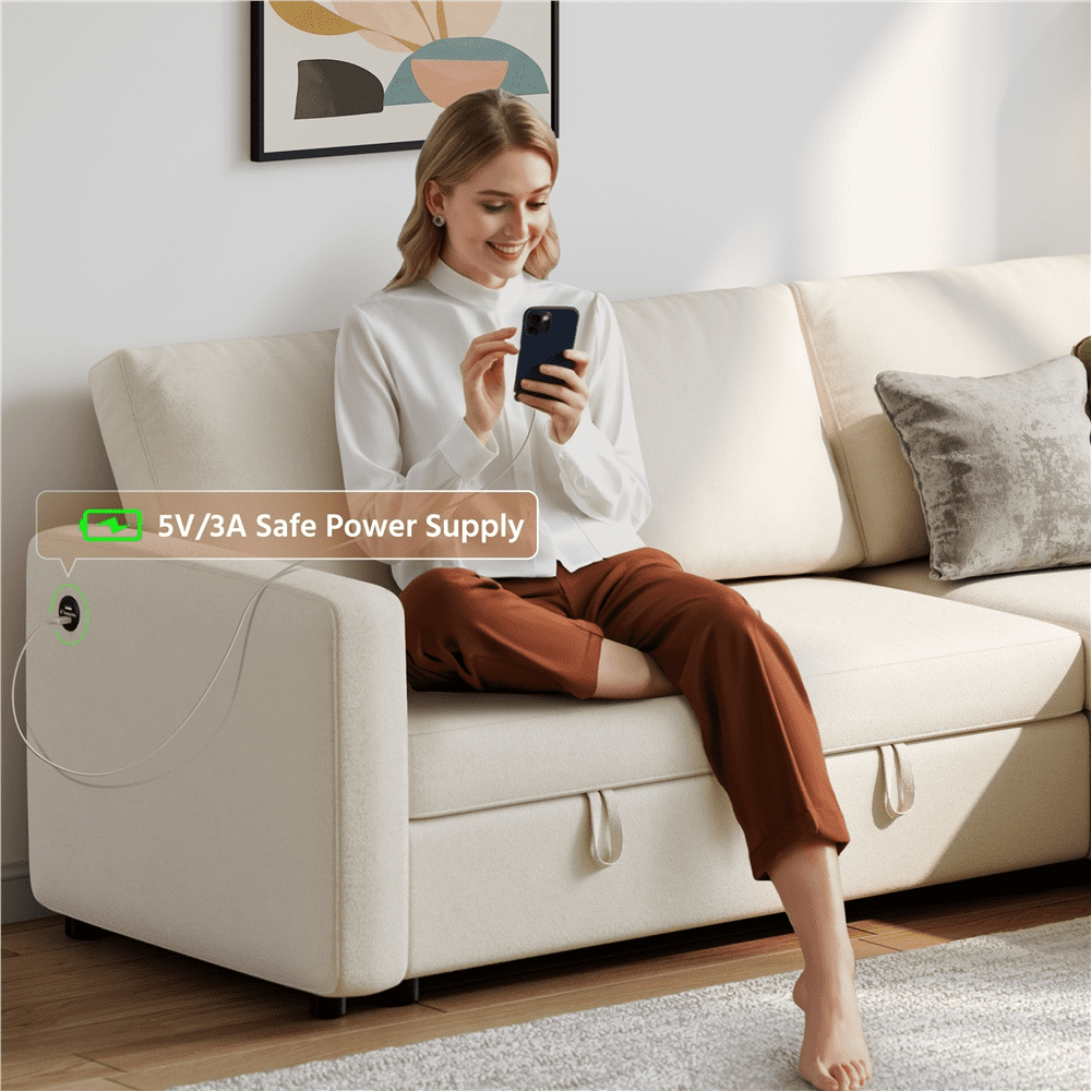 • Built-in USB & Type-C PortsTo add a touch of ease and accessibility to your daily routine, this L-shaped reversible sleeper sofa is equipped with 2 built-in charging ports—1 USB-A and 1 Type-C to power up your electronic devices directly from the comfort of your sofa.