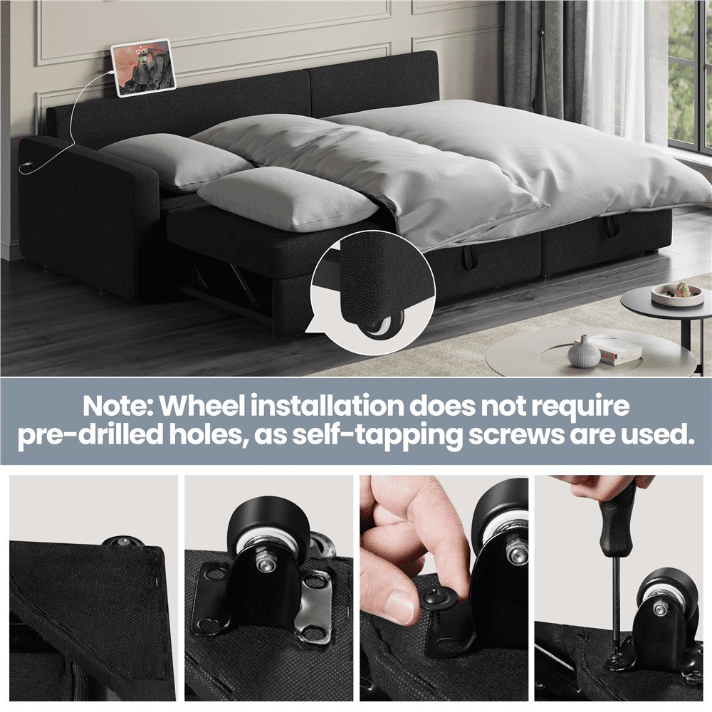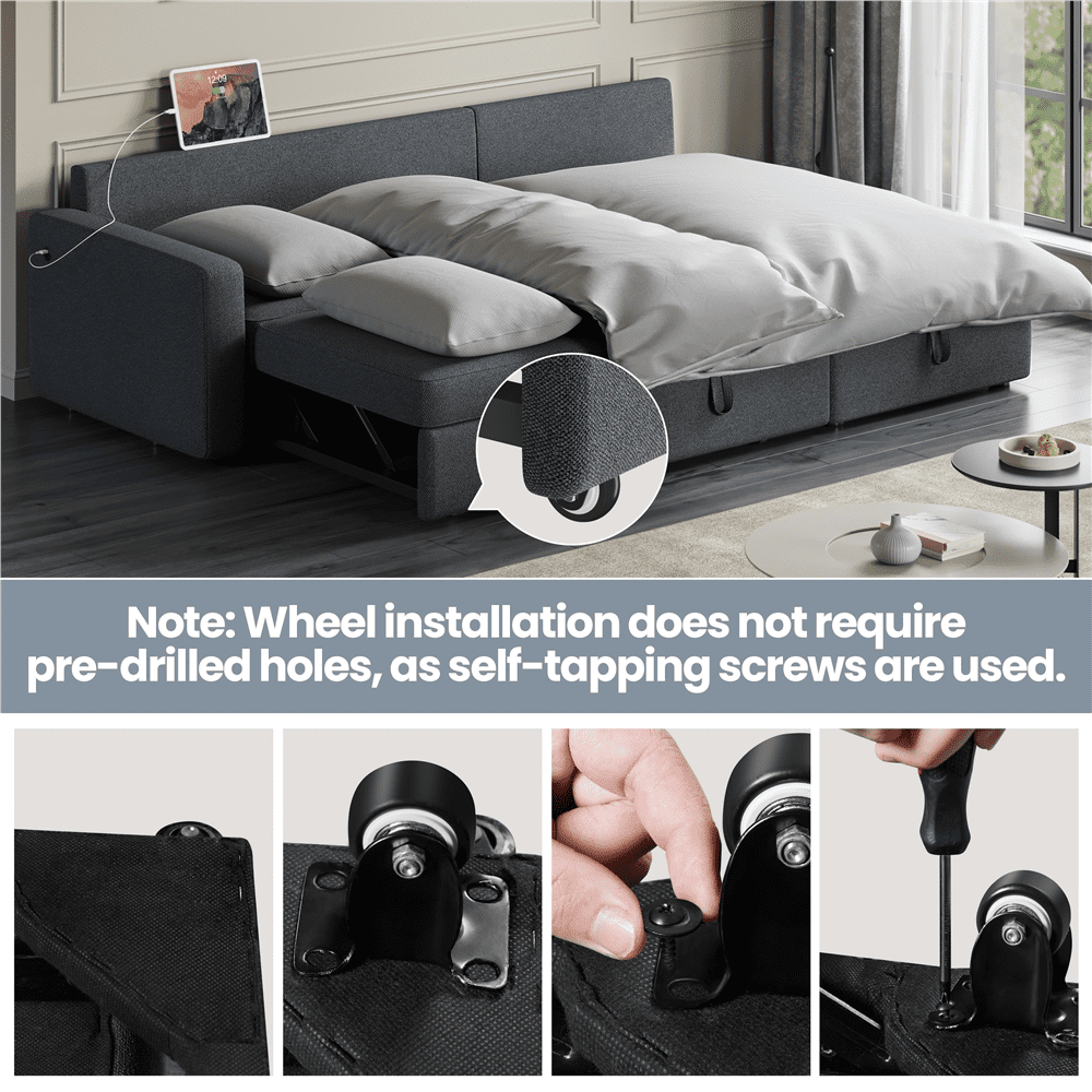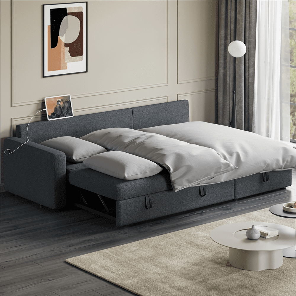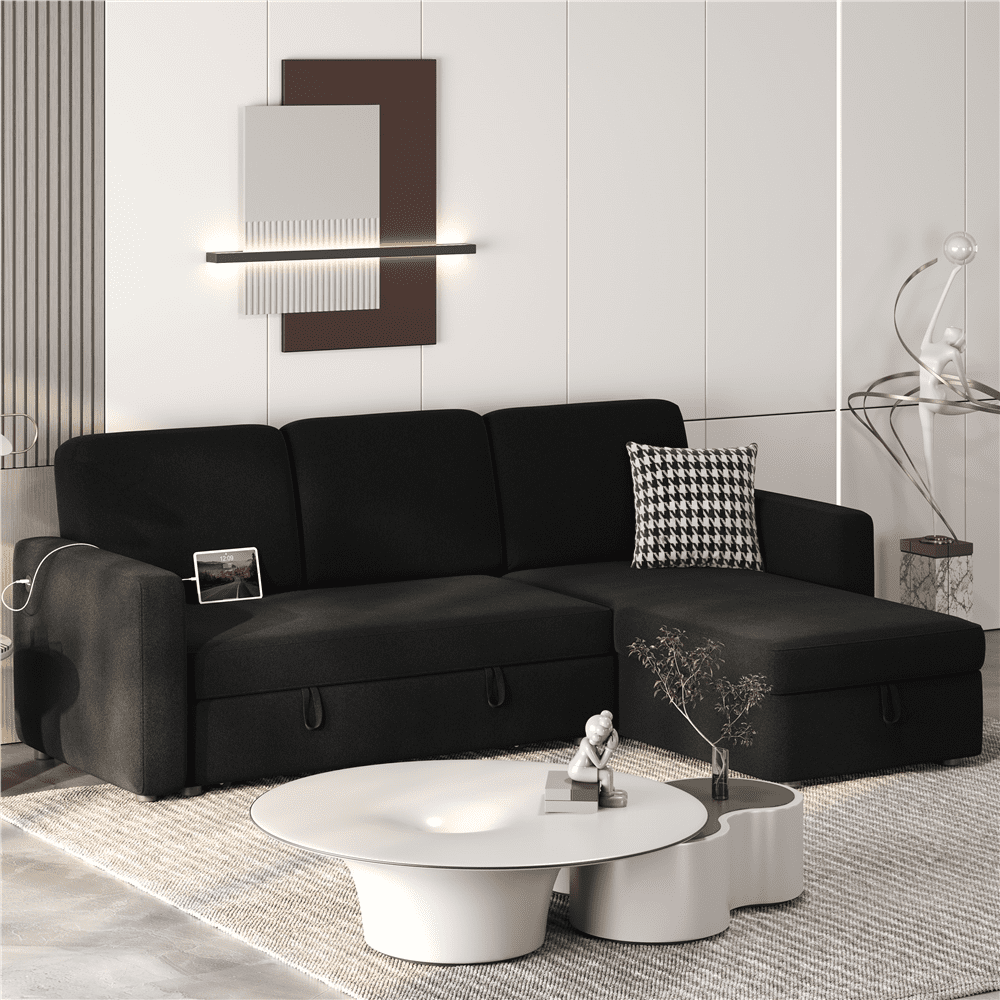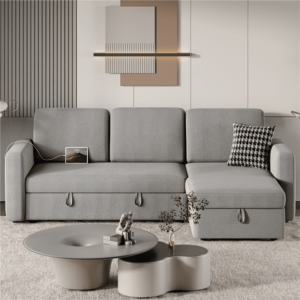 • Built-in USB & Type-C PortsTo add a touch of ease and accessibility to your daily routine, this L-shaped reversible sleeper sofa is equipped with 2 built-in charging ports—1 USB-A and 1 Type-C to power up your electronic devices directly from the comfort of your sofa.