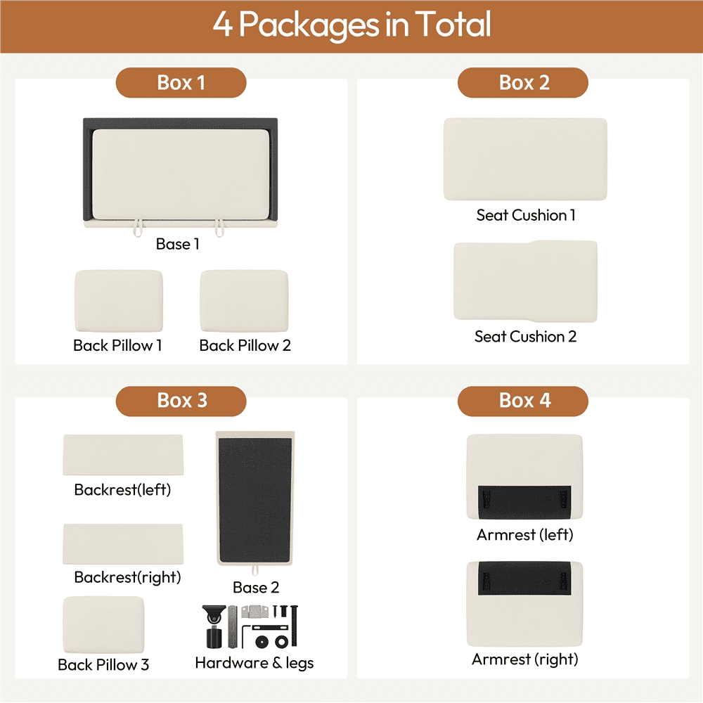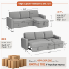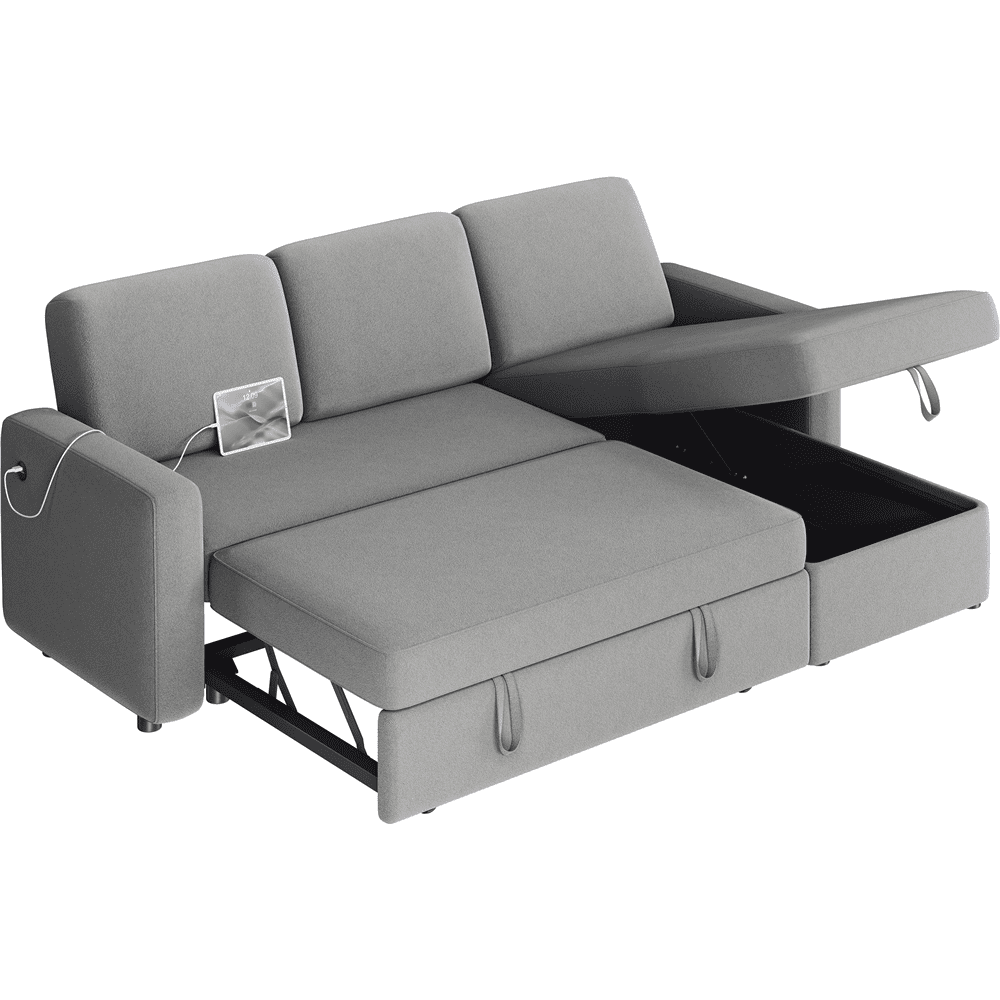• SpecificationsColor: Light Gray; Port Type: 1 USB-A, 1 Type-C; Materials: 270g Polyester, Foam, Engineered Wood, Metal; Assembled Dimensions: 80.5″ W × 51.5″ D × 33.5″ H; Sleeping Surface (without pillows): 69.5″ W × 47″ D; Seat Depth (with pillows): approx. 18″; Seat Height: 44.5 cm / 17.5″; Chaise (with pillows): 26″ W × 41″ D; Storage Compartment Inner Dimensions: 49.6″ L × 23″ W × 8.3″ D; Weight Capacity: Chaise: 564 lb; Sofa: 772 lb; Item Weight: 172.2 lb; Shipping Weight: box #1: 65.3 lb, box #2: 35.2 lb, box #3: 69.7 lb, box #4: 65.3 lb.