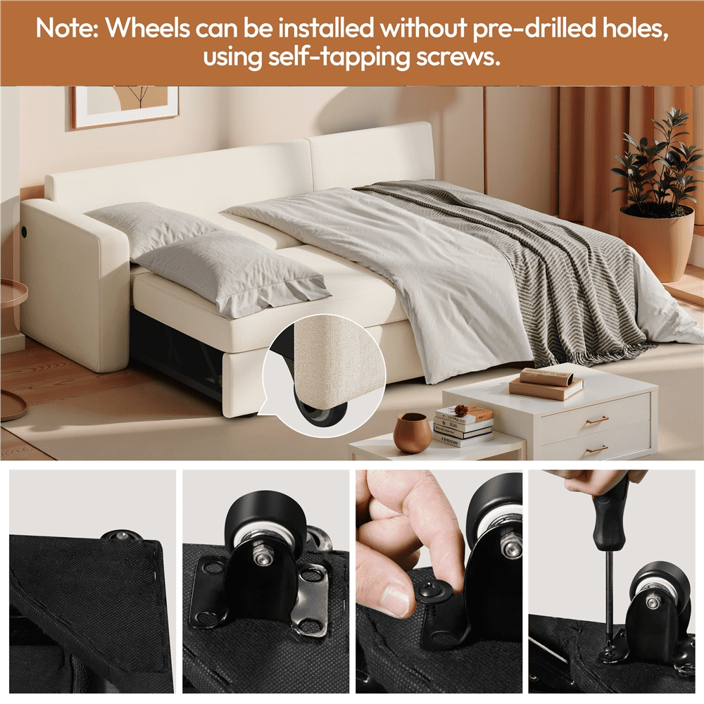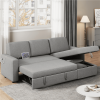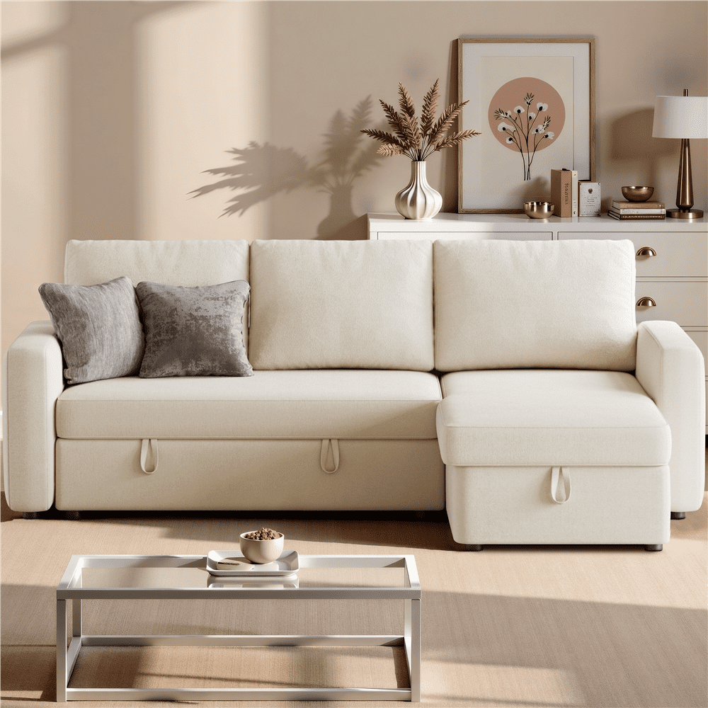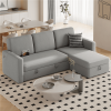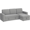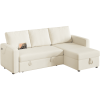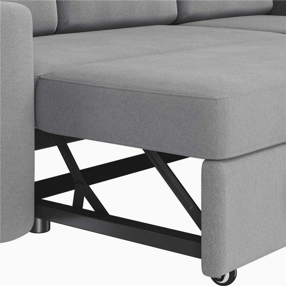 The reversible sectional sofa is crafted from a sturdy engineered frame, 100% polyester upholstery, foam fill, and metal spring for enhanced sturdiness and durability. The chaise can be placed on either the left or right side of the loveseat to meet different requirements of space. The trundle sleeper mechanism hidden under the loveseat helps the sofa easily pop up to a comfy double/full bed for 2 sleepers. The two strap handles and bottom wheels make for fluent and effortless operation. The clean-lined silhouette works harmoniously with the neutral-colored upholstery to sport an effortless low-profile look. The clean-lined silhouette works harmoniously with the neutral-colored upholstery to sport an effortless low-profile look. This sofa bed is a welcome addition to most home styles.