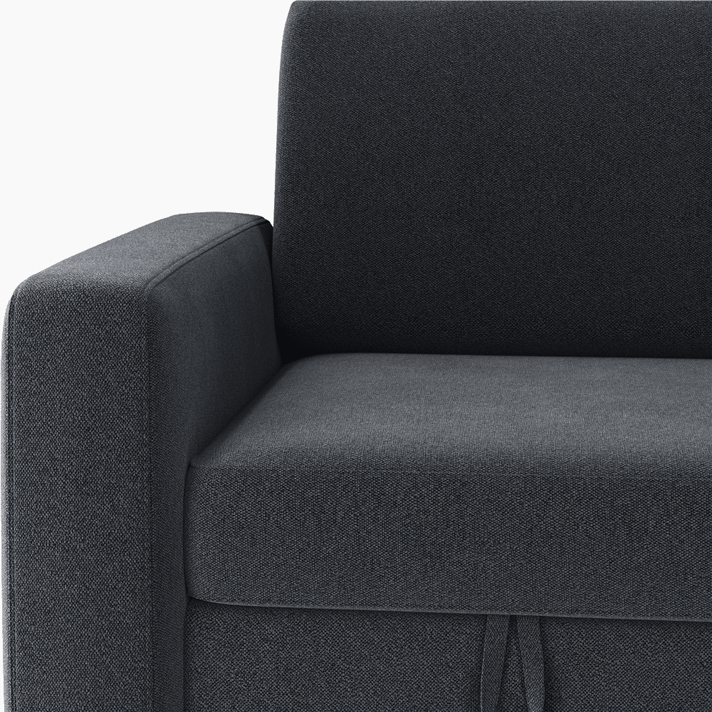 • Sofa, Chaise, Bed, All-In-OneThis versatile living room furniture provides a compact L-shaped settee paired with a lounging chaise and a full/double bed, comfortably accommodating two in one. Ideal for small apartments, lofts, and even travel trailers, it seamlessly adapts to various living spaces.