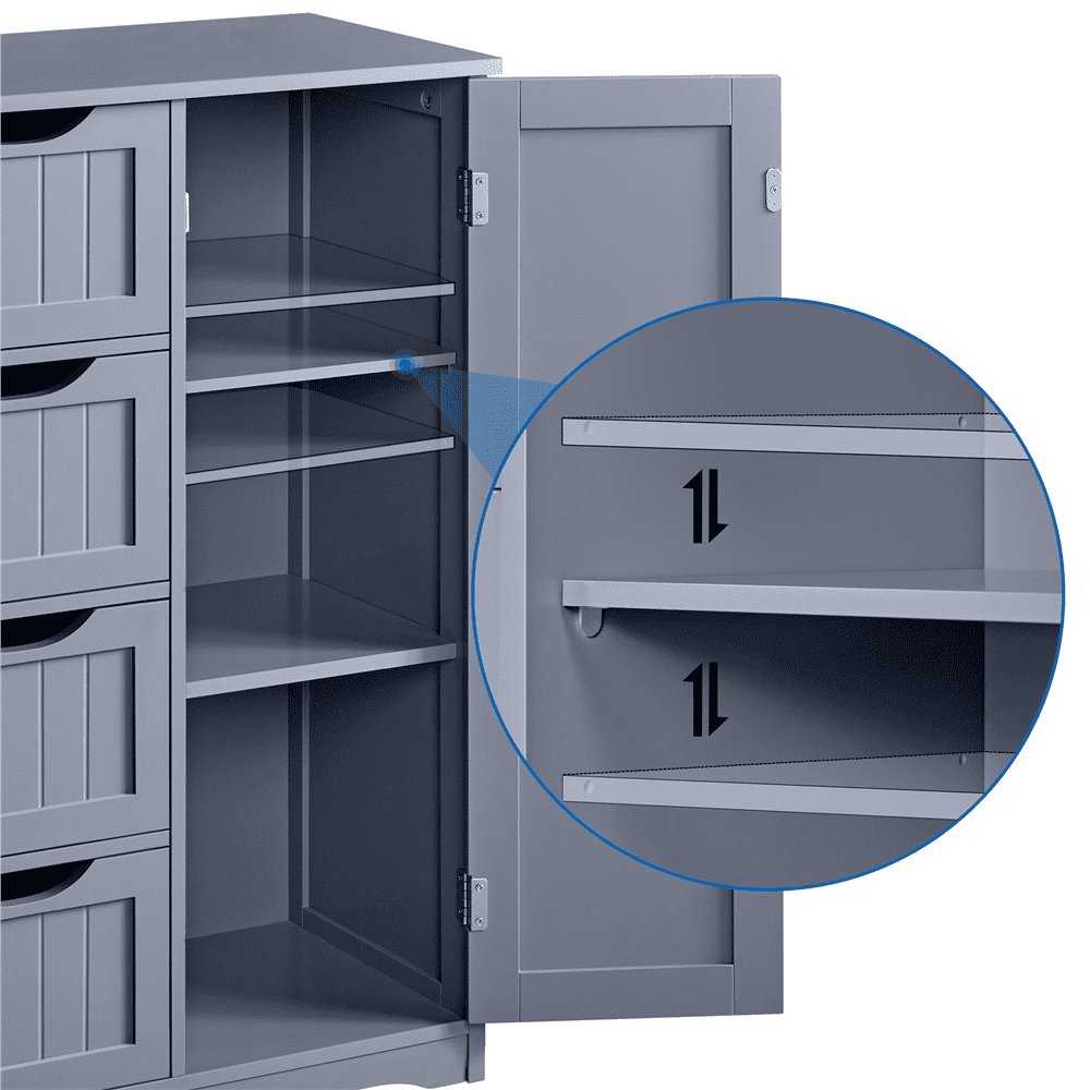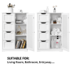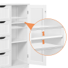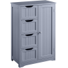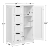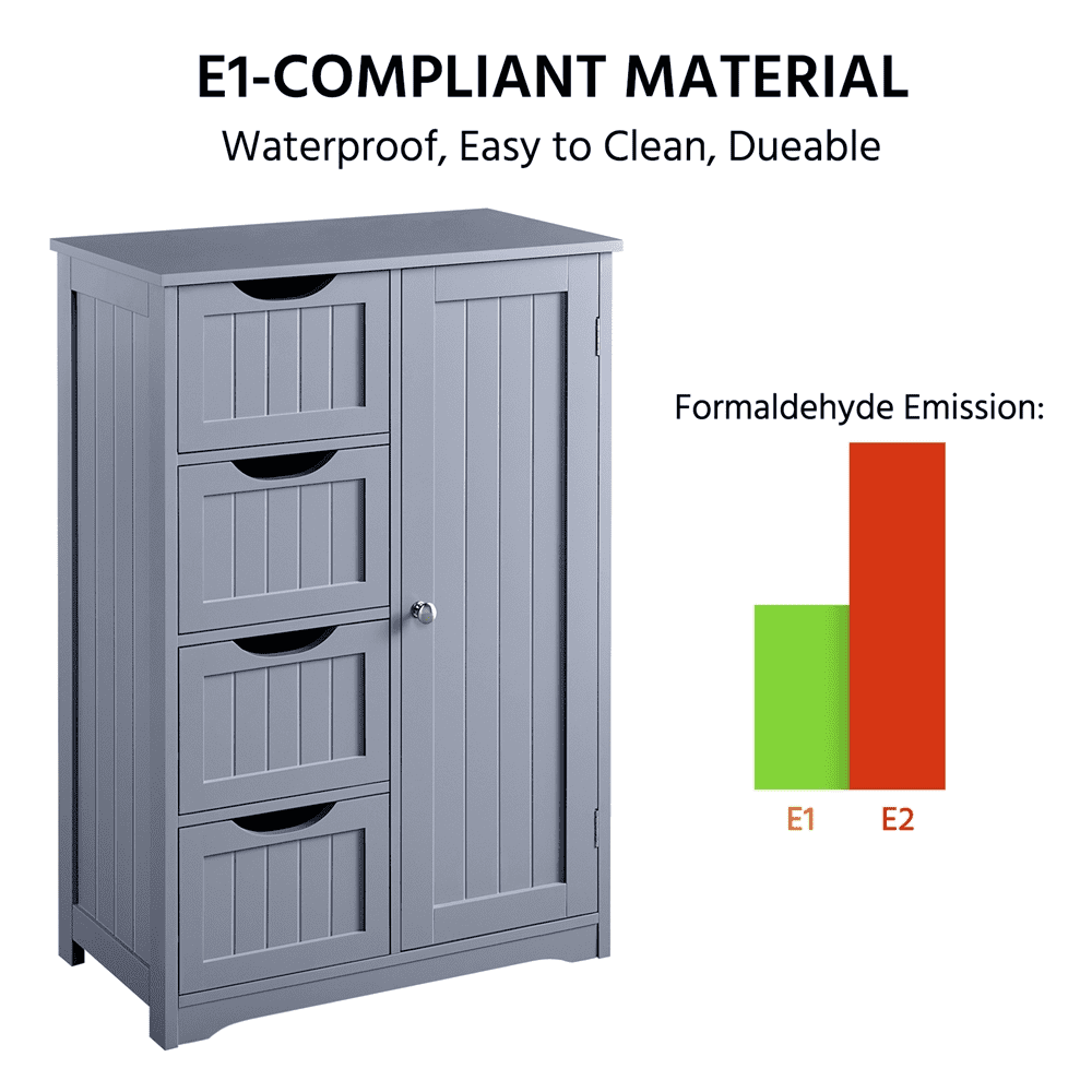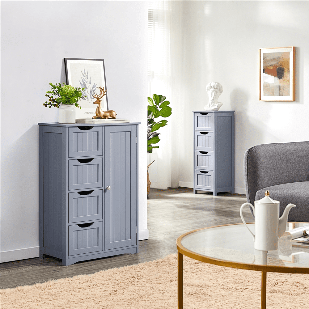This free-standing cabinet is built in a solid structure with high load capacity and can meet all of your basic storage requirements. Made with high-quality materials, this wooden bathroom storage cabinet can withstand the humidity and prevent moisture, specifically designed to for humid areas such as your bathroom or kitchen. Four drawers with cutout handles and one cupboard with a customizable shelf for you to organize different items like cosmetics, toiletries, towels and toilet paper. A great option for tucking away bathroom clutter. The addition of this bathroom storage cabinet can elevate any bathroom or room!