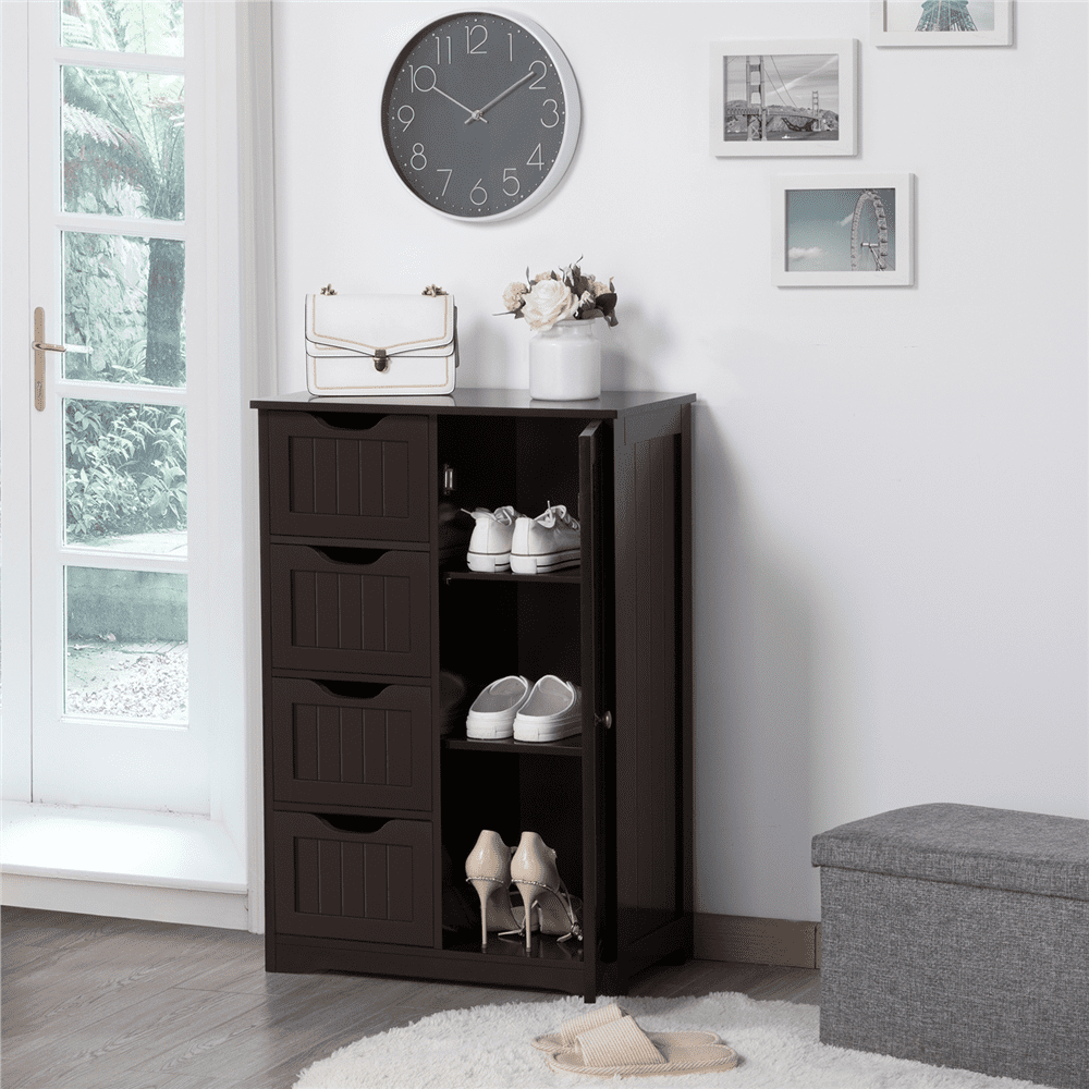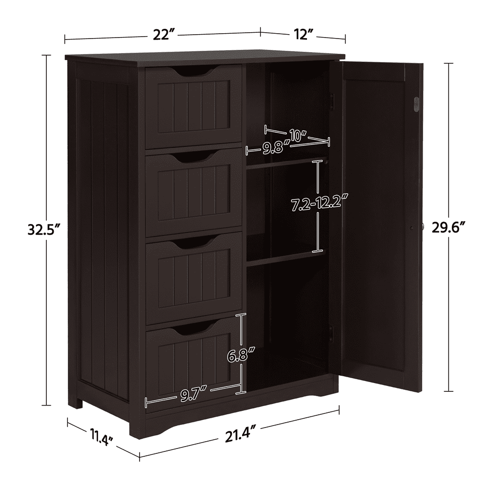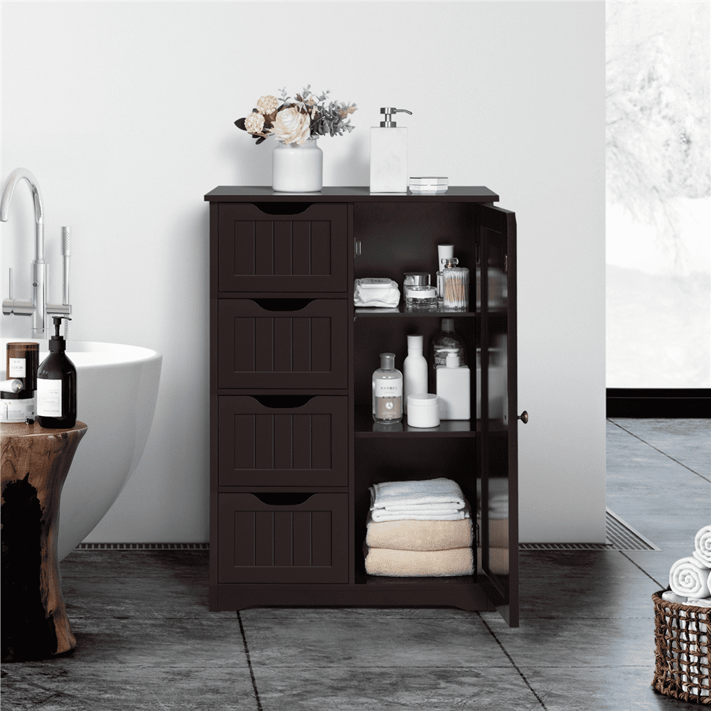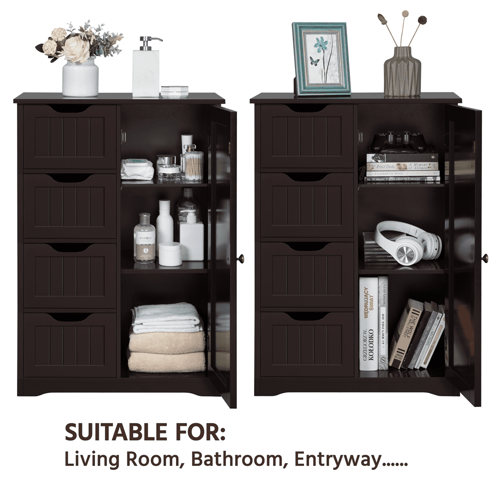 - Alden Design Wooden Bathroom Storage Cabinet with 4 Drawers & Cupboard, Espresso