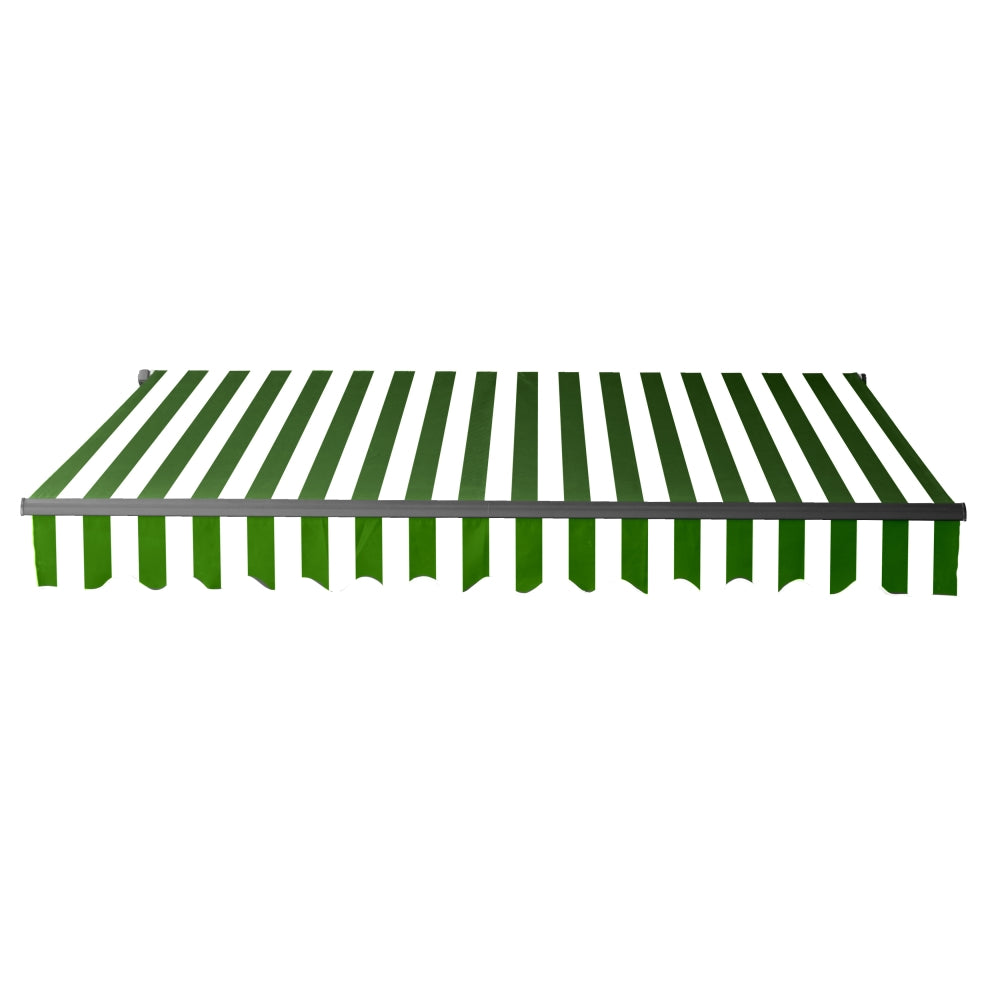 ALEKO Motorized Patio Awning is the perfect blend of style and functionality. The fabric is both UV-resistant and breathable, helping you stay protected from the harsh UV rays without losing optimal airflow. On a drizzly day, the water-resistant material helps you stay dry. Easily operate your awning with the touch of a button. The included remote allows you to open and close the awning within a minute, and a wall-mounted remote holder is included so that your remote is always accessible. A hand crank is also available to manually operate awning. Assembly is required.