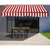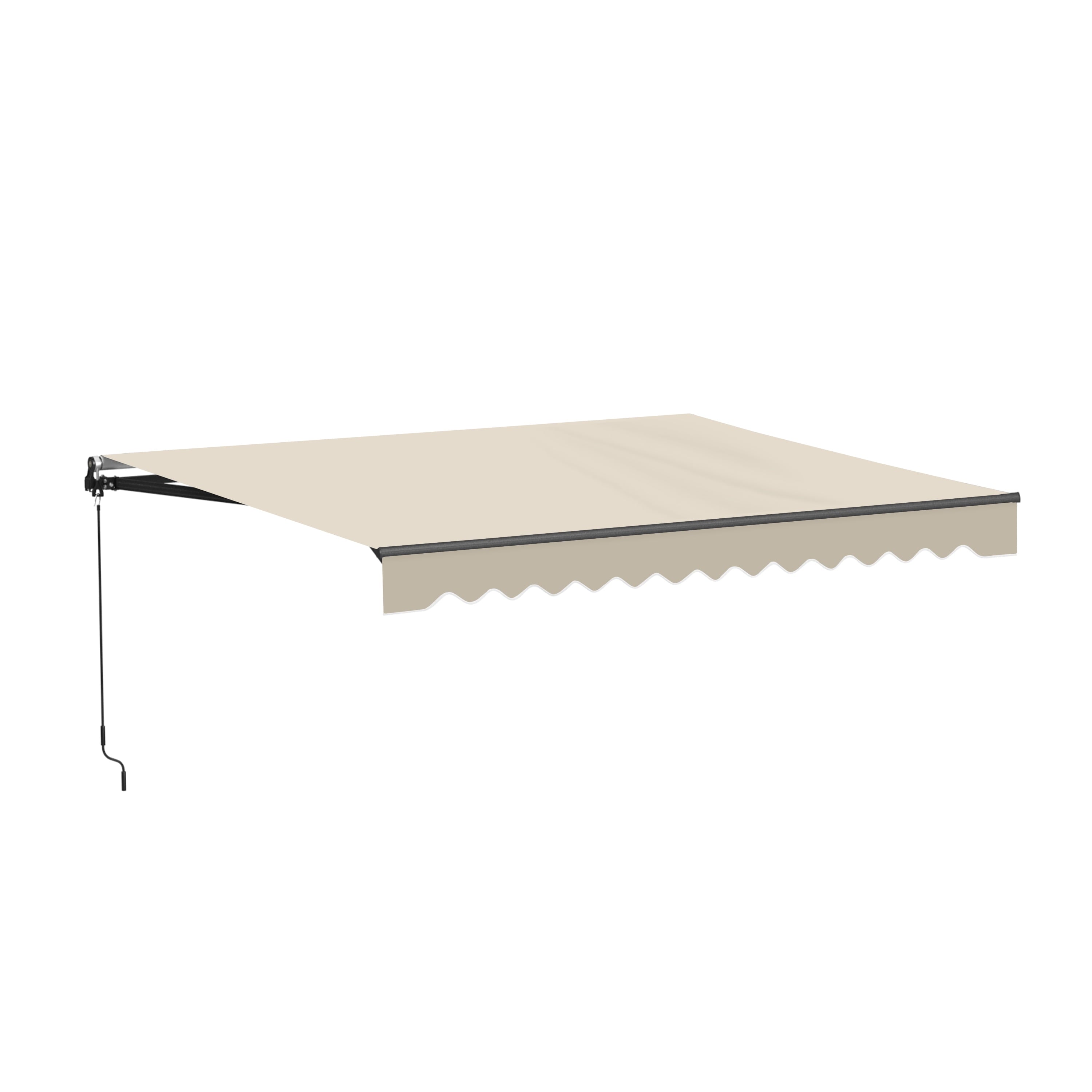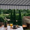 ALEKO Manual Retractable Patio Awning is the perfect blend of style and functionality. Black frame enables less dirt to show. The fabric is both UV-resistant and breathable, helping you stay protected from the harsh UV rays without losing optimal airflow. On a drizzly day, the fabric water-resistant material helps you stay dry. No need for electricity – simply turn the crank to open the awning smoothly and quickly. Assembly is required.