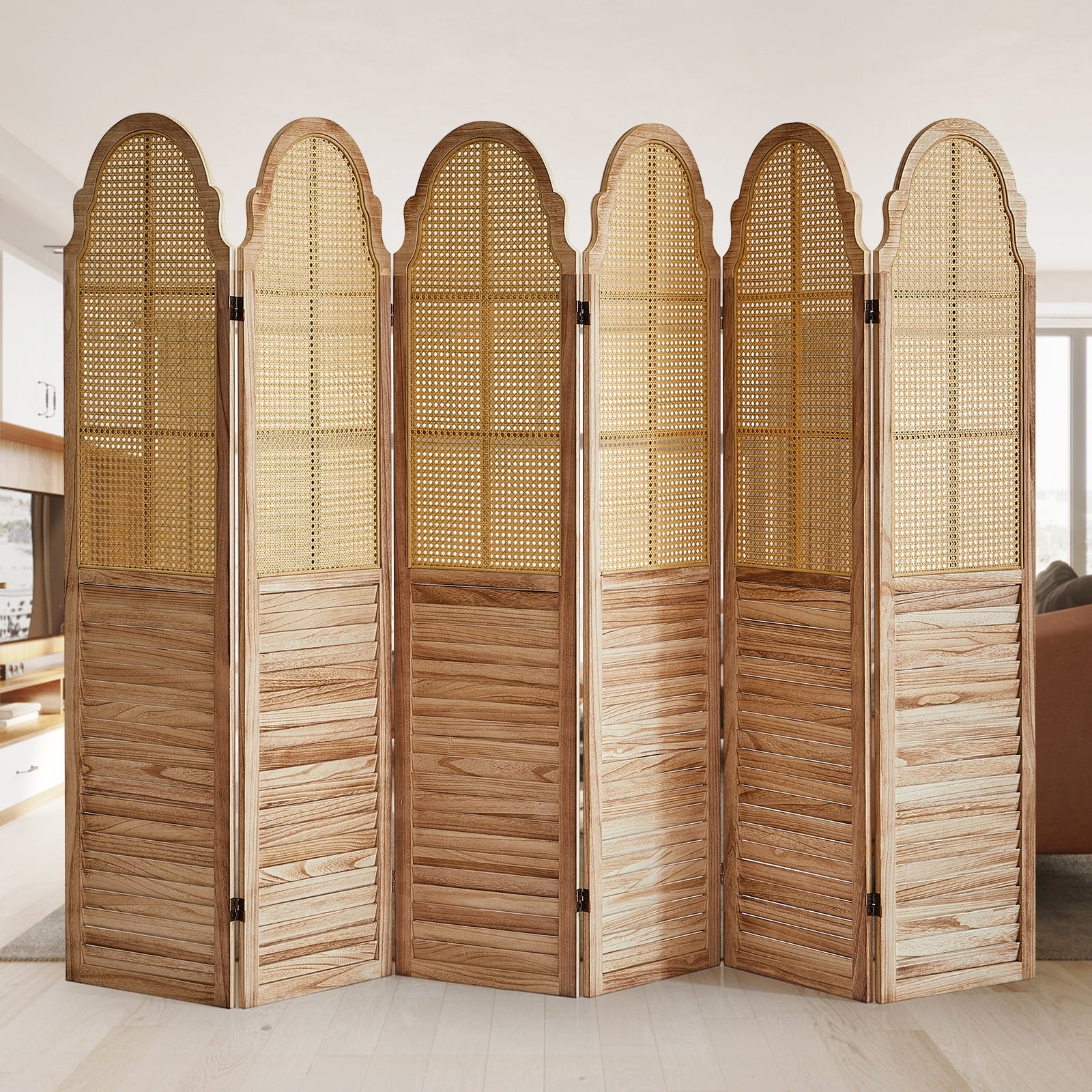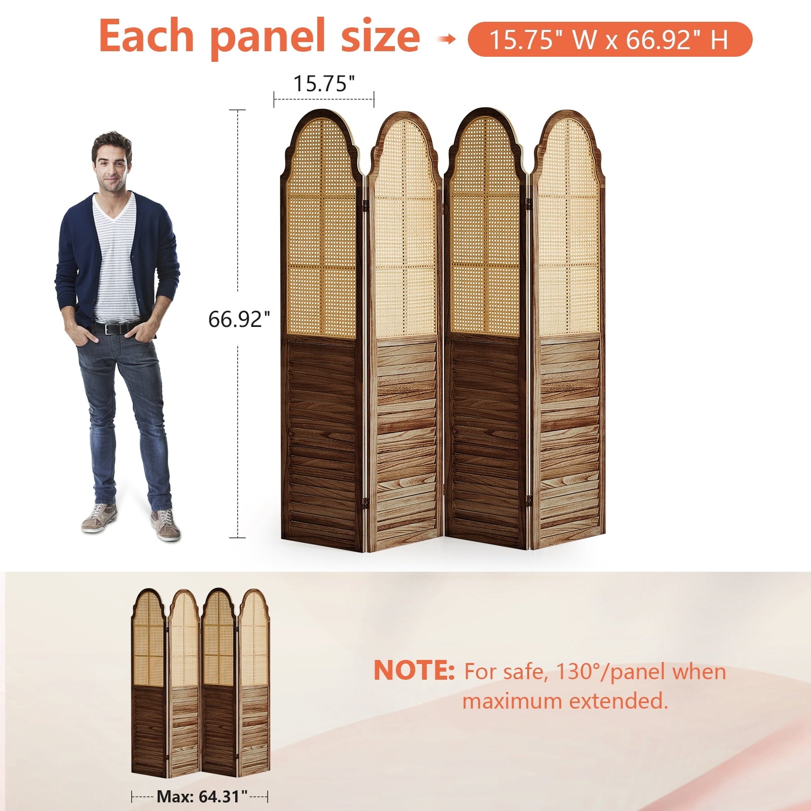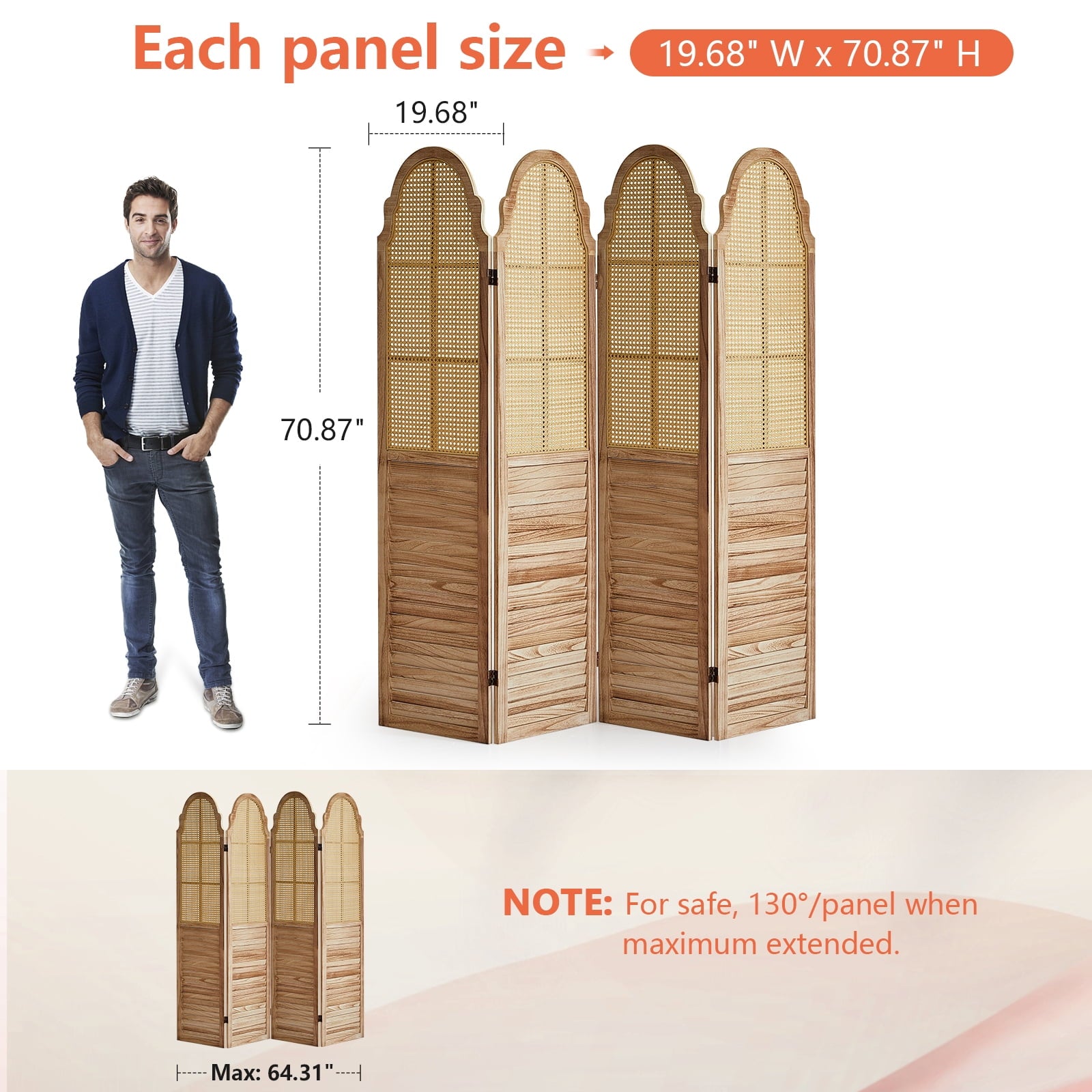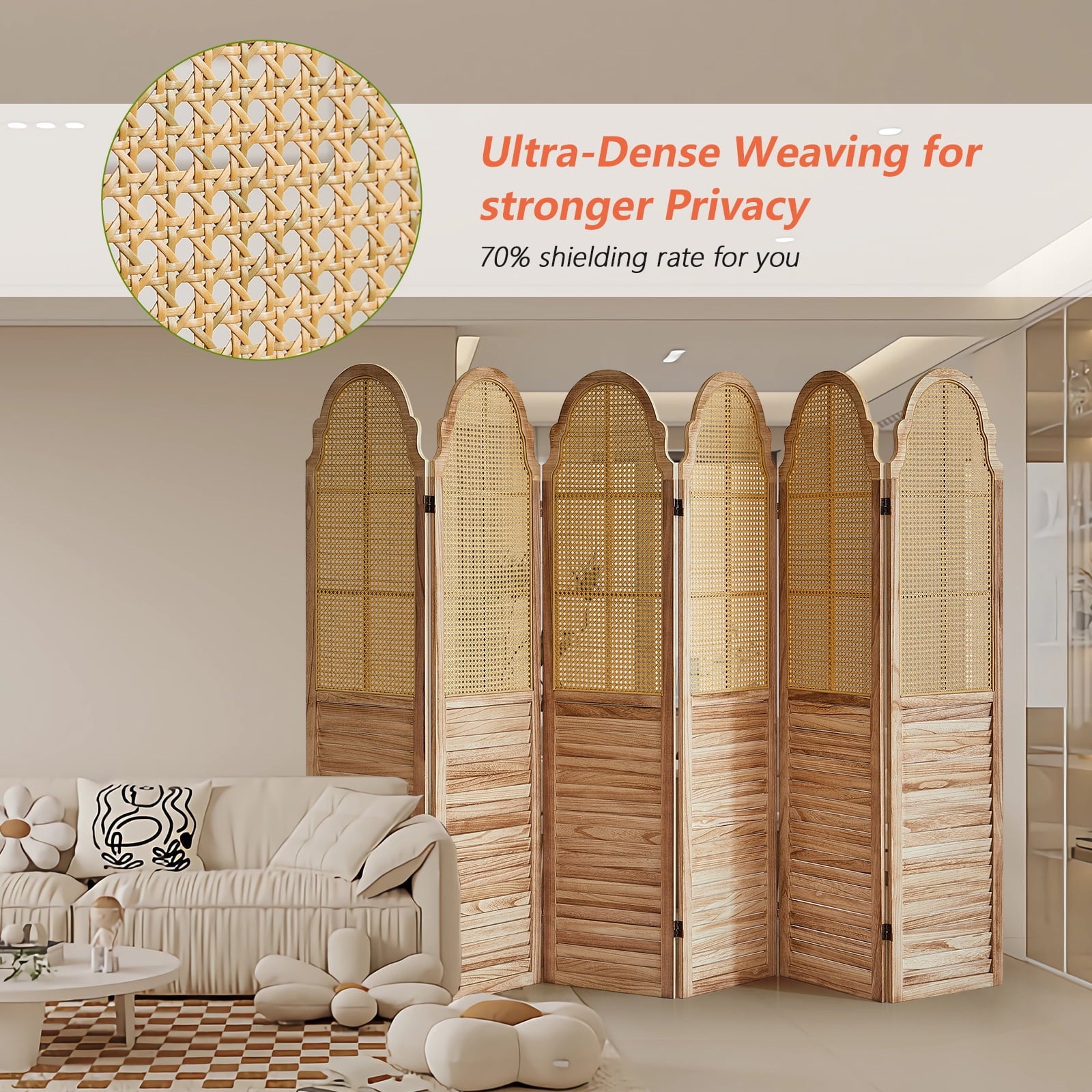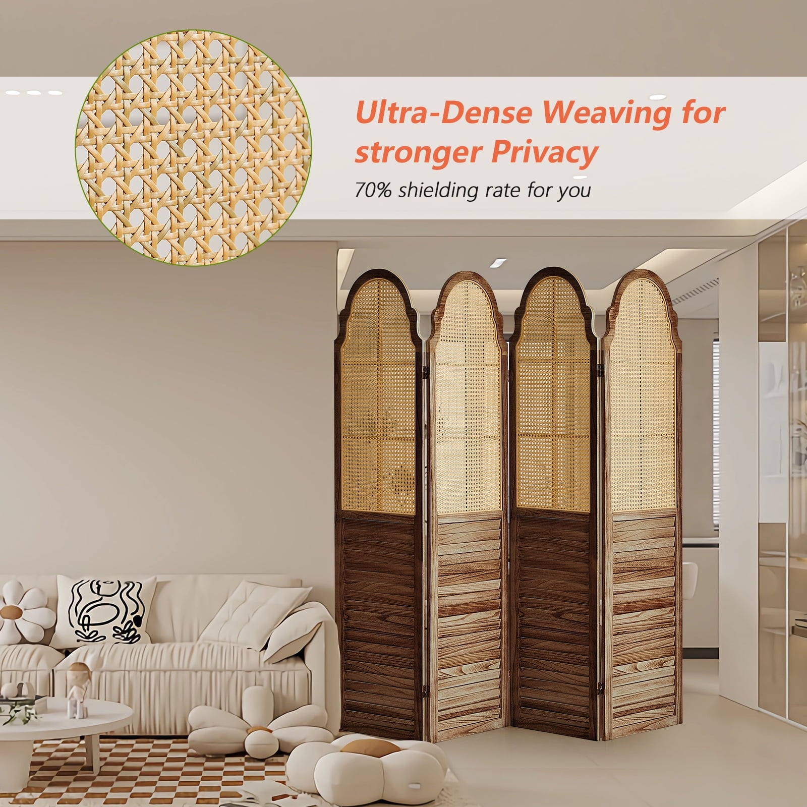 - Better protection of privacy : The room divider rattan section provides over 71% shielding, and the bottom wood panel is fully shielded. Even if some light can pass through the gaps, it is enough to blur the view and prevent others from seeing directly behind privacy dividers for rooms.