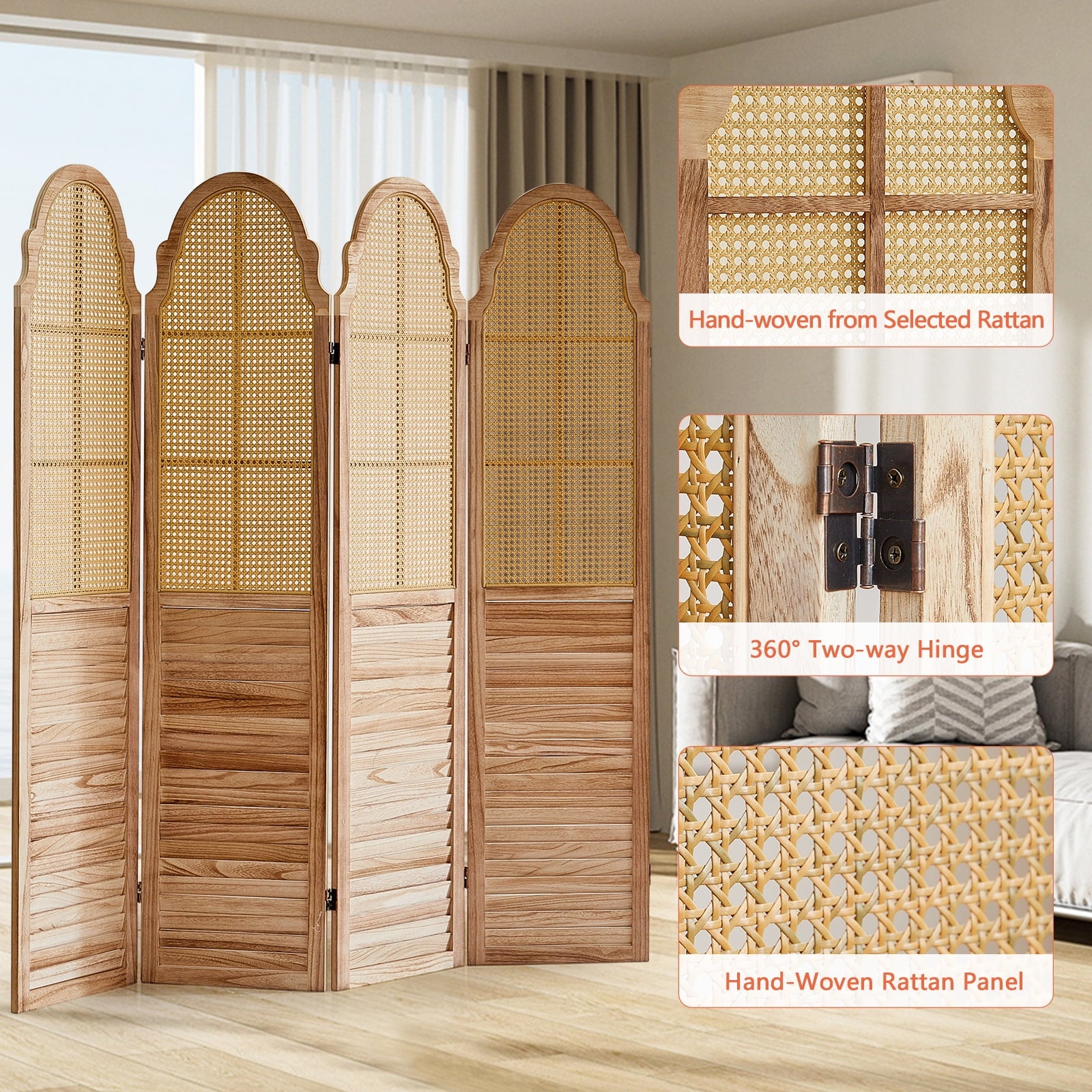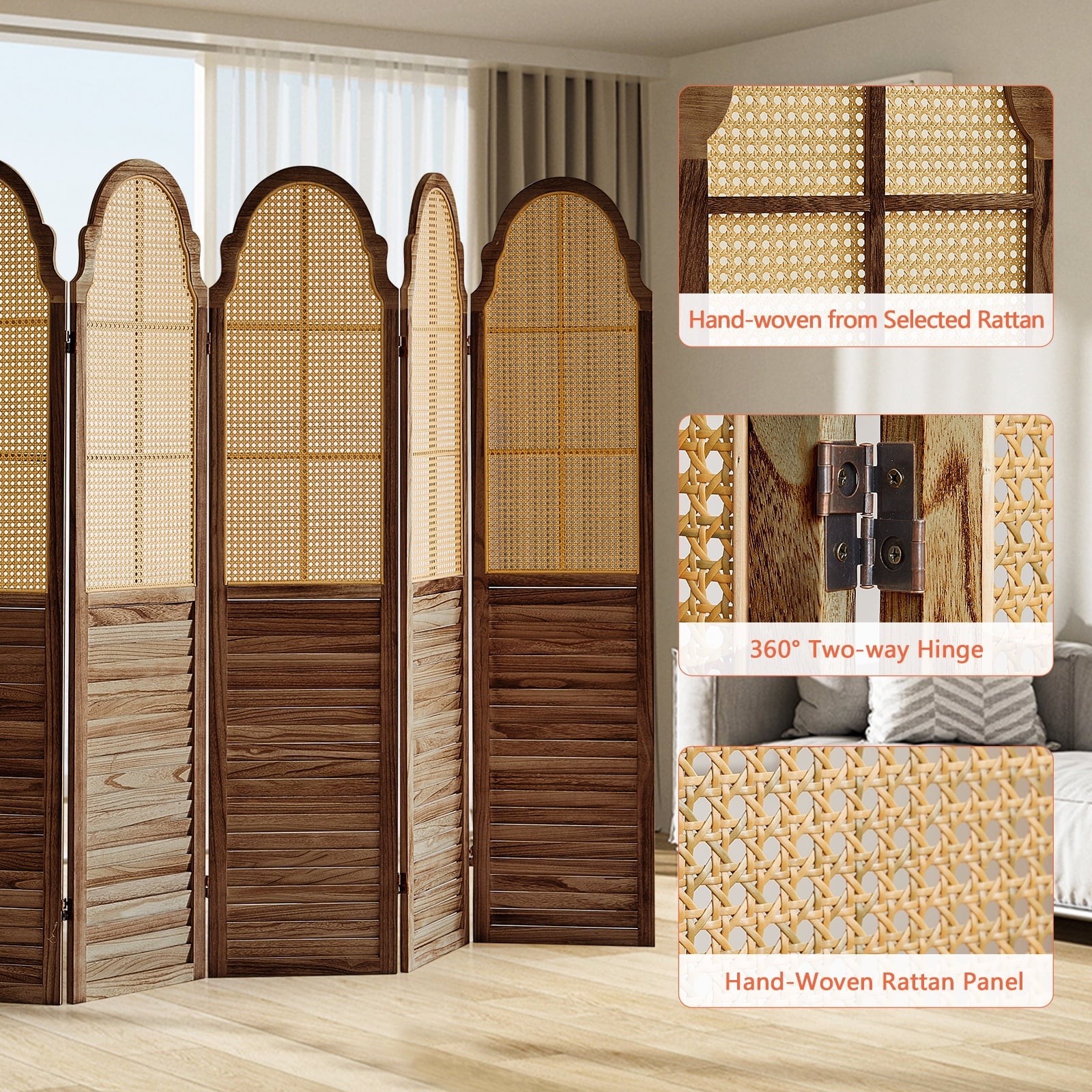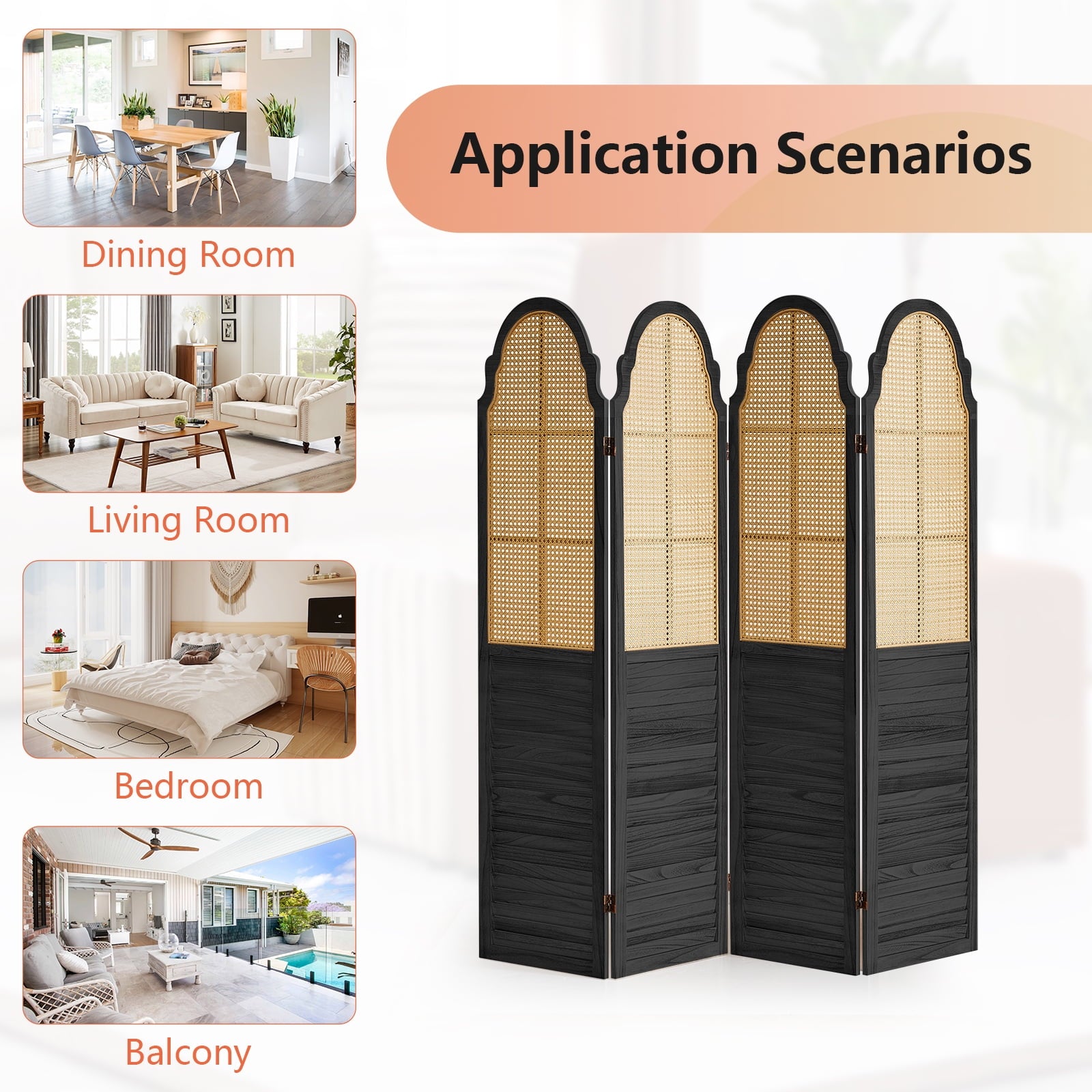 - Selected Rattan :Selected high-quality rattan hand-woven, compared to wooden room divider has very good toughness, while having better air permeability and light transmission.