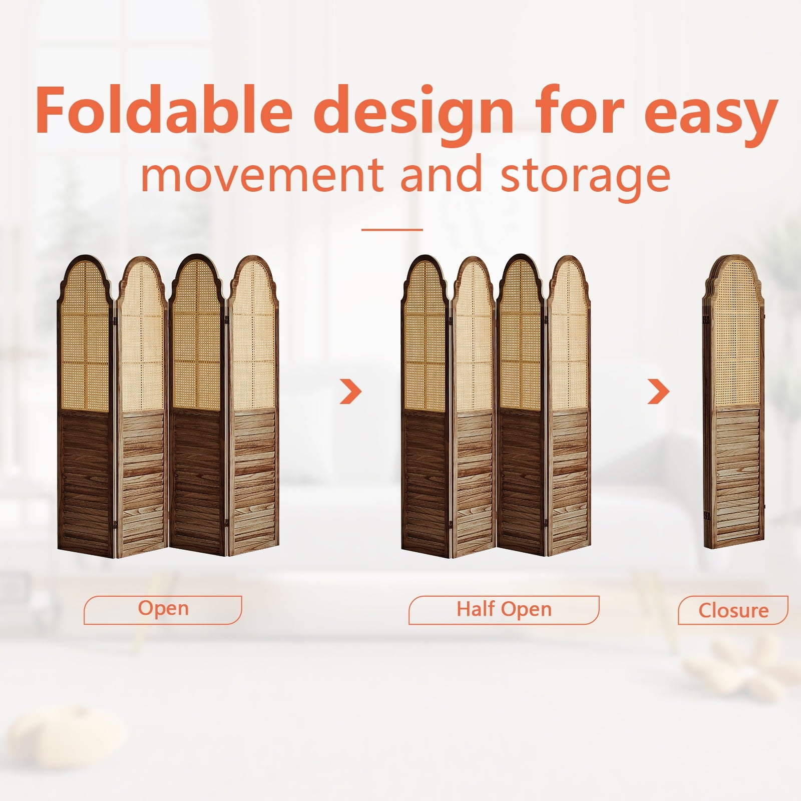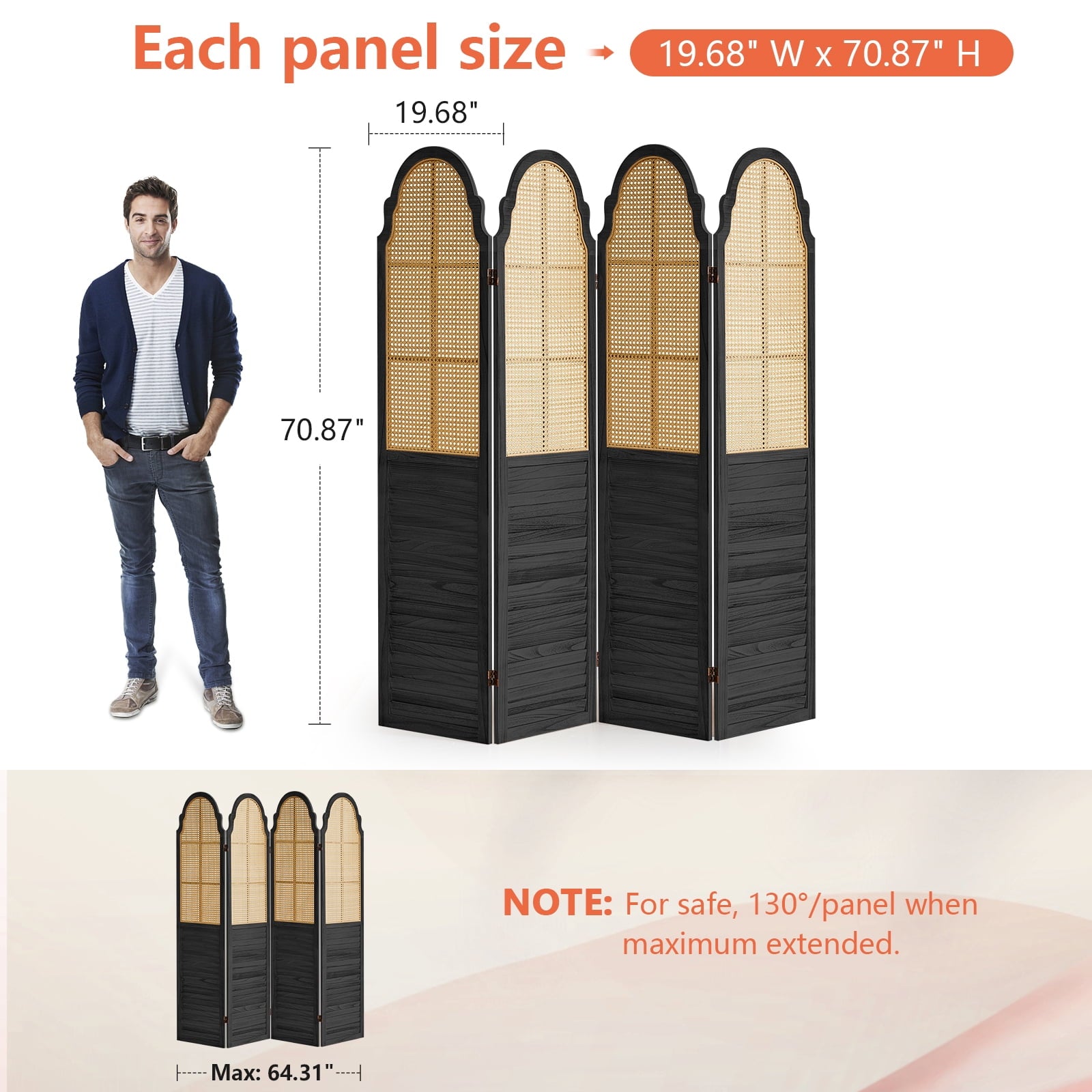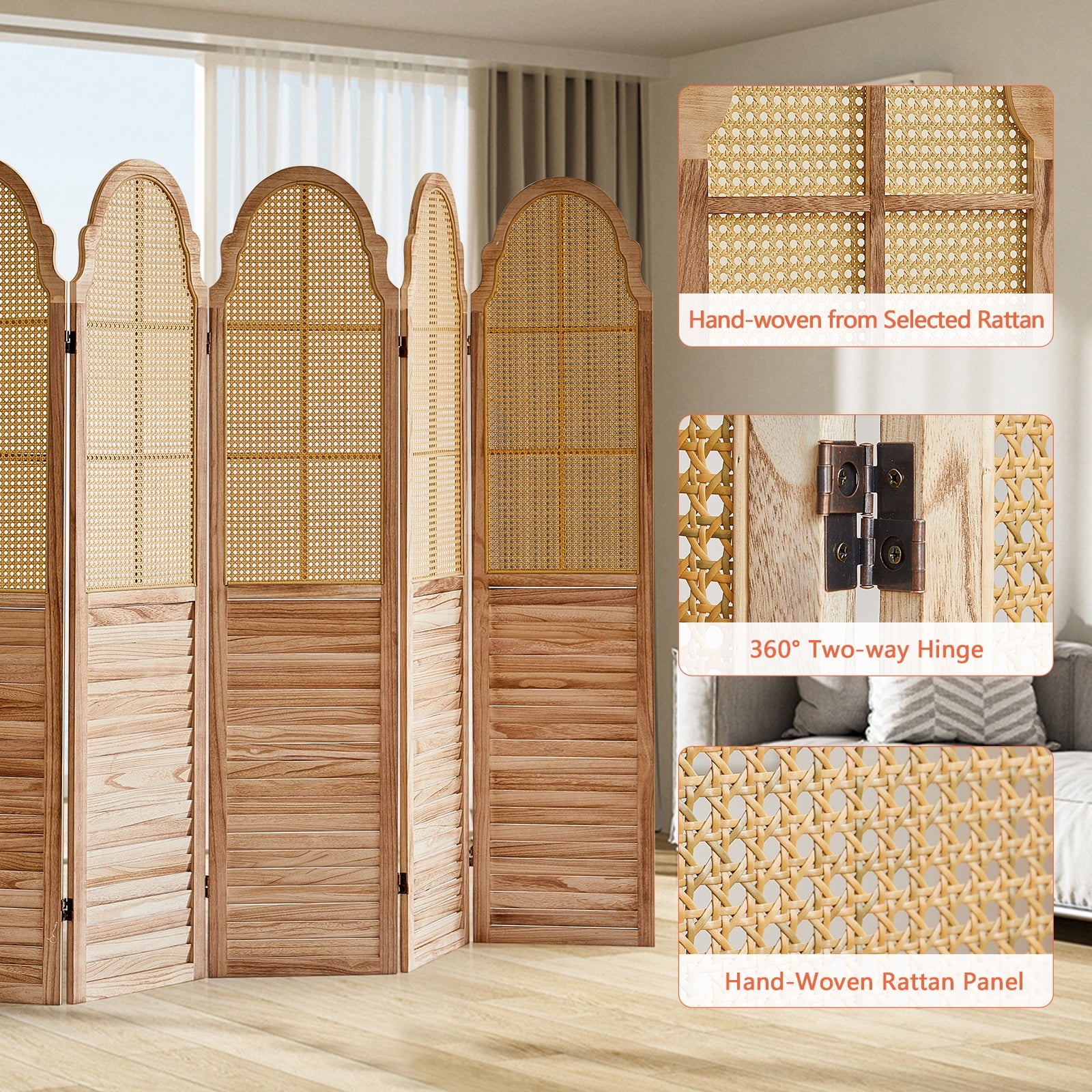 - Selected Rattan :Selected high-quality rattan hand-woven, compared to wooden room divider has very good toughness, while having better air permeability and light transmission.