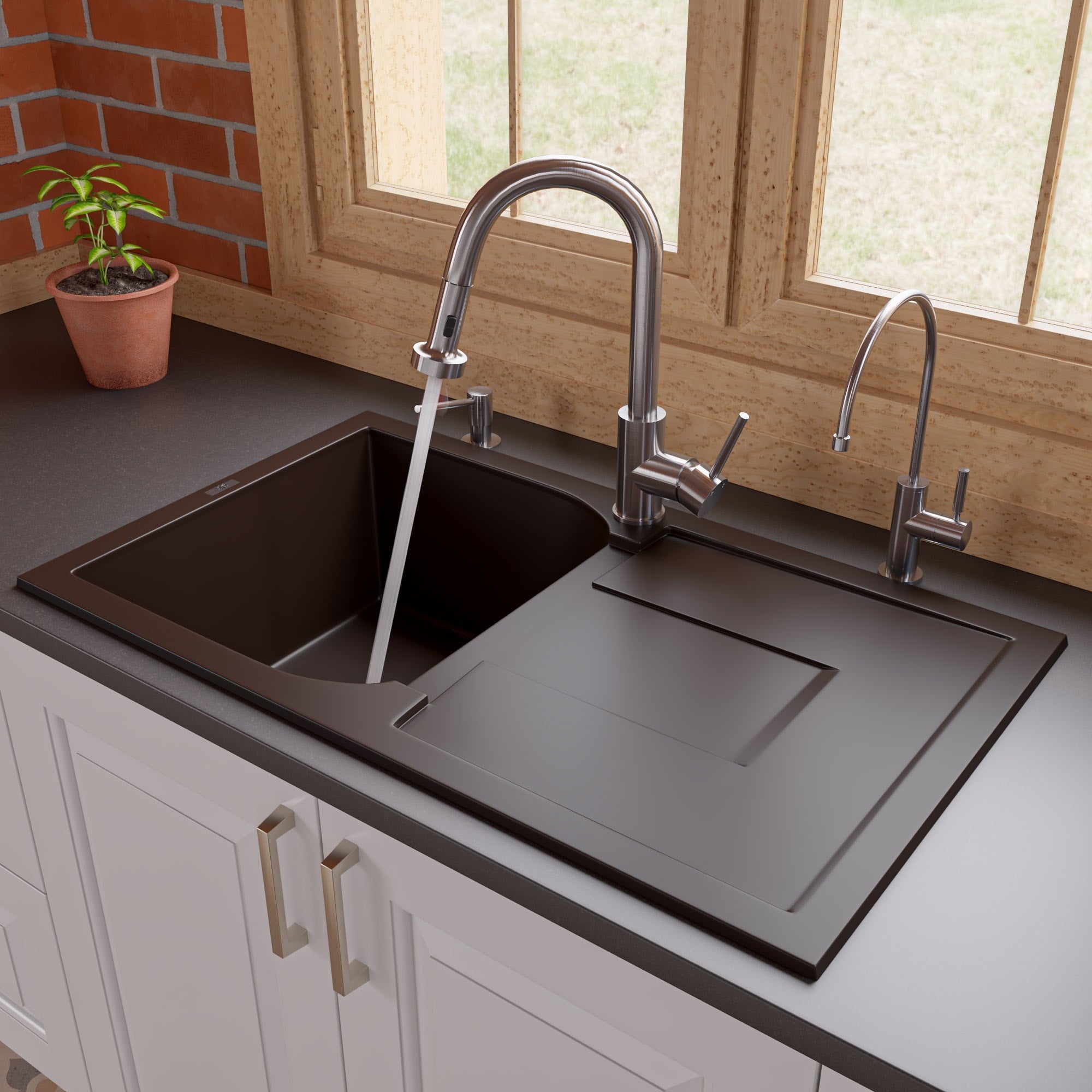 ALFI brand Granite Composite Kitchen Sinks are a great choice for any kitchen remodel. Durable material and a variety of sizes, shapes, and colors provide you with a unique and long lasting sink that is sure to make cooking more enjoyable. Modern design and smooth surfaces create a flawless look for years to come.