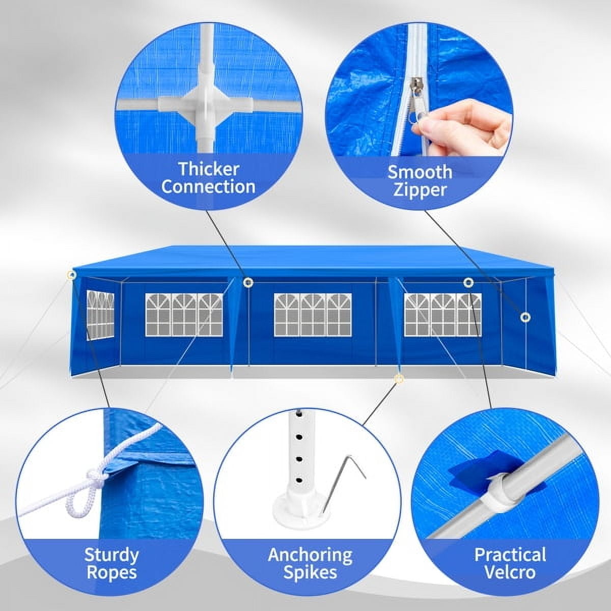 - 2. Removable Sidewalls with Windows: A total of 8 removable sidewalls can be set up any way you want. Each wall has a clear window to ensure maximum lighting in the tent.