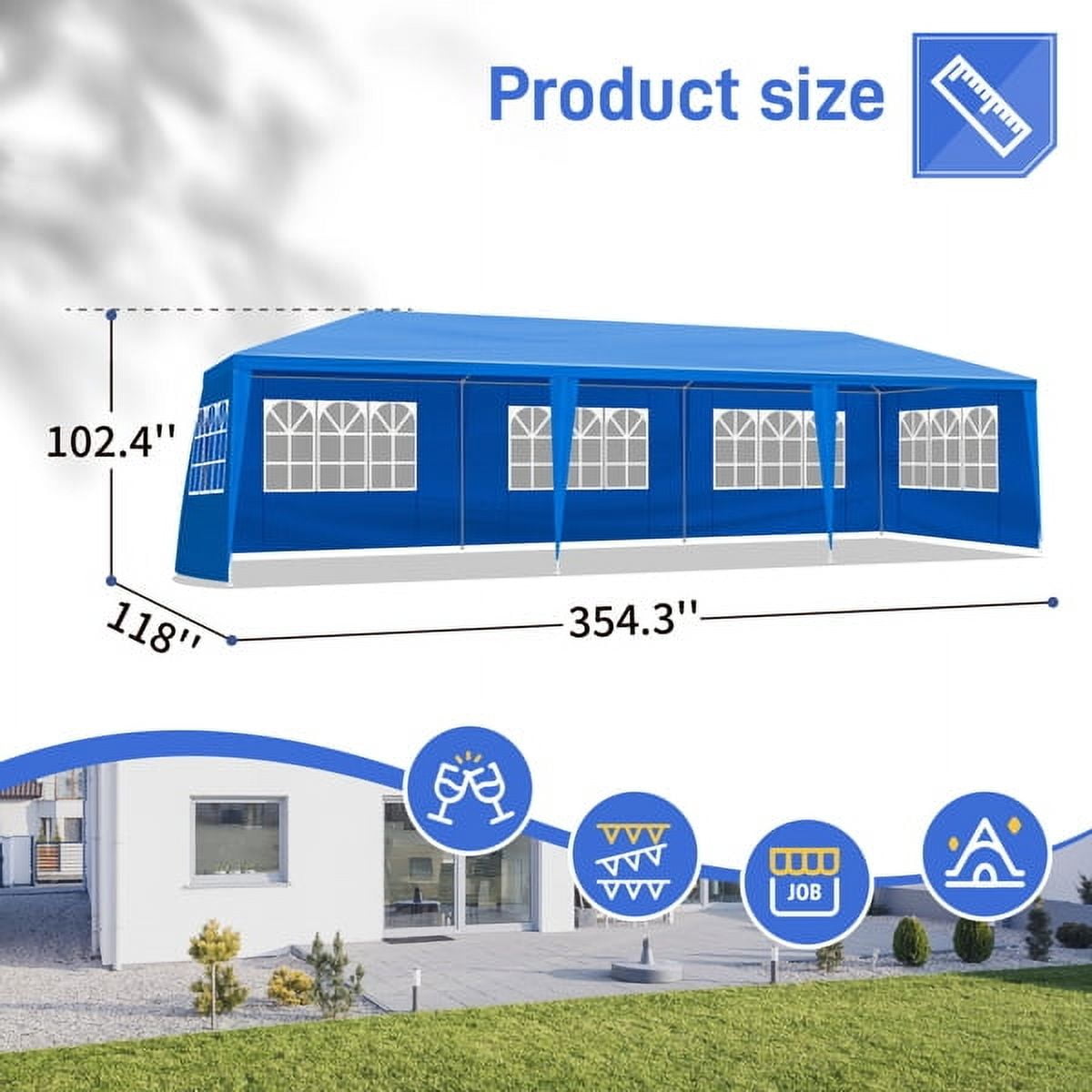 - 1. Big and Spacious: 10’X30′ (3m*9m) outdoor party tent can hold up to 50 people, making it a wonderful choice for a variety of outdoor events like party, wedding, graduation, flea market, small business, picnics, sporting events, arts and crafts tables and much more.