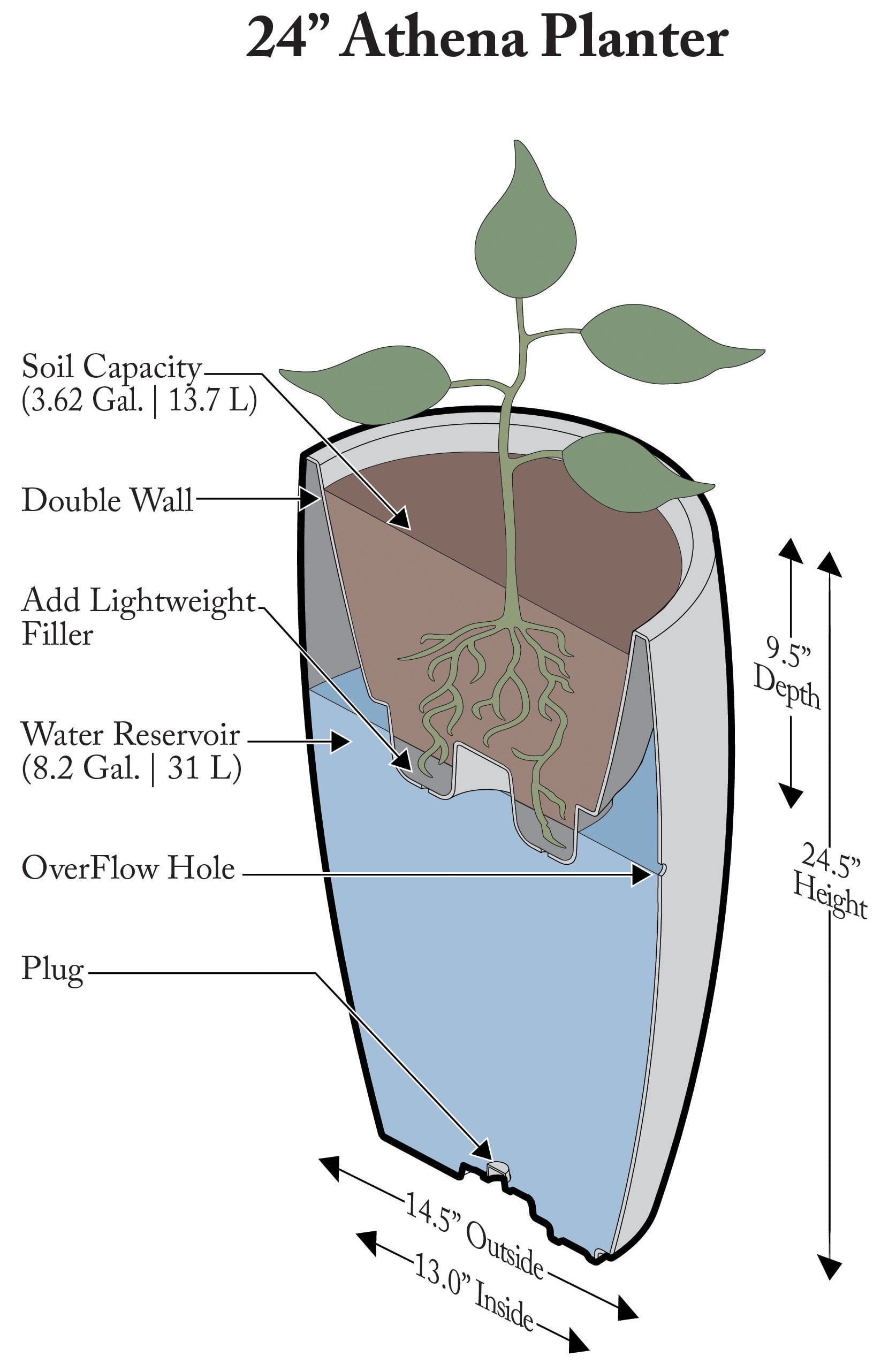 - Self-watering reservoir creates sub-irrigation water system slowly feeds soil and promotes root growth