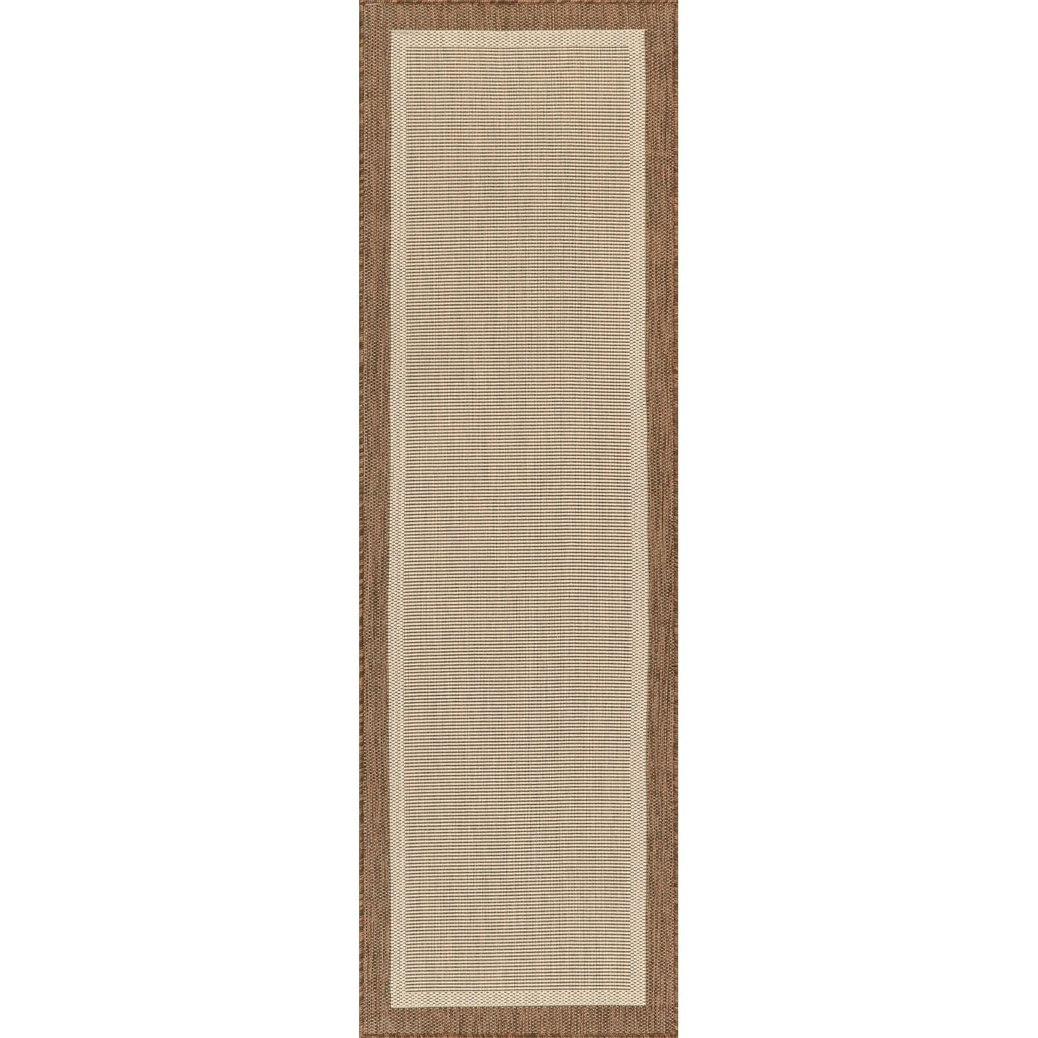Add a touch of style and texture to your outdoor living space with the Exo Coastal Border Indoor/Outdoor Area Rug. This rug is machine-woven from durable polypropylene fibers, which are stain and fade-resistant, making it perfect for high-traffic areas in your home. The rug features a simple yet elegant border pattern that complements any decor.