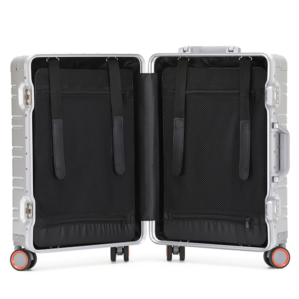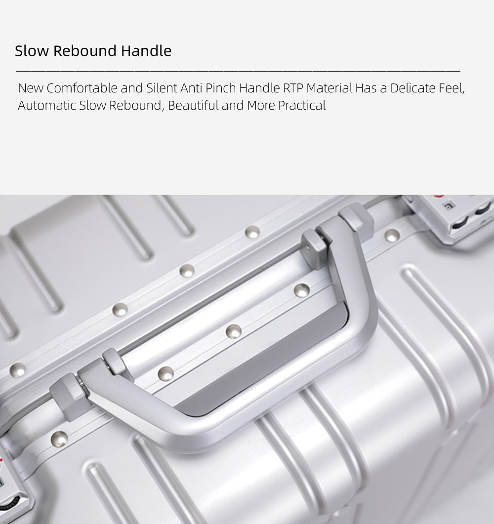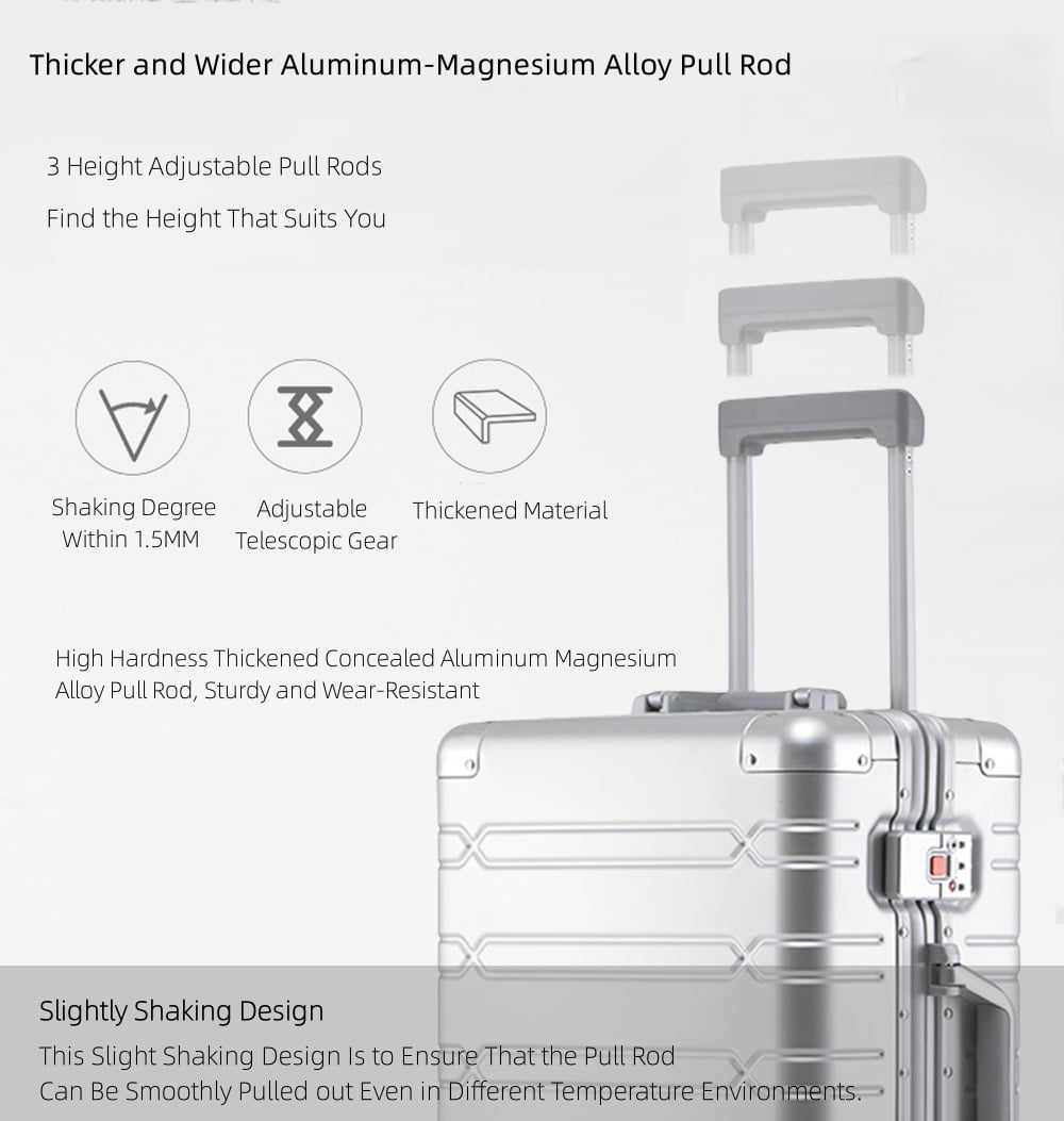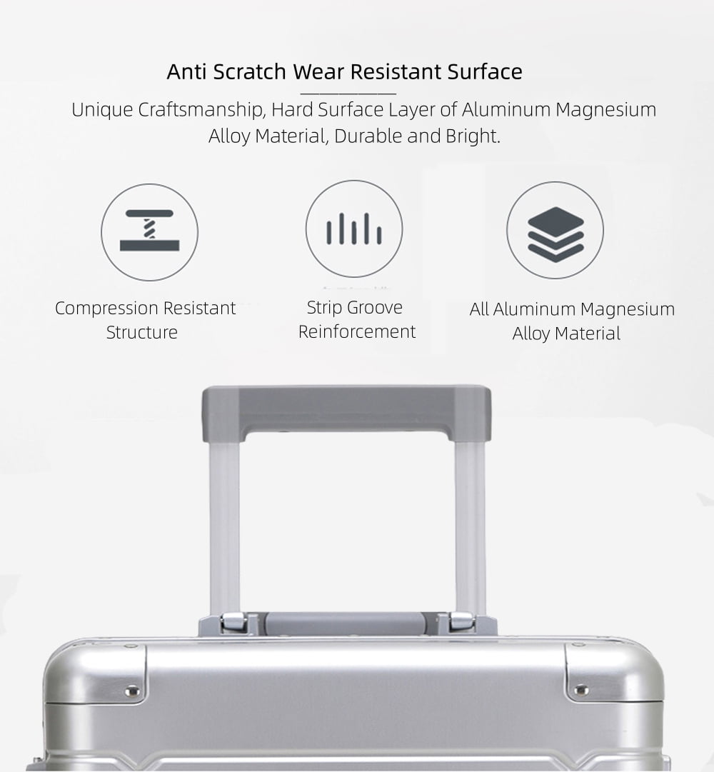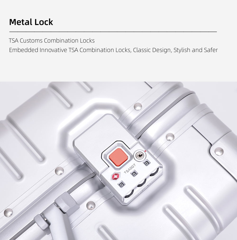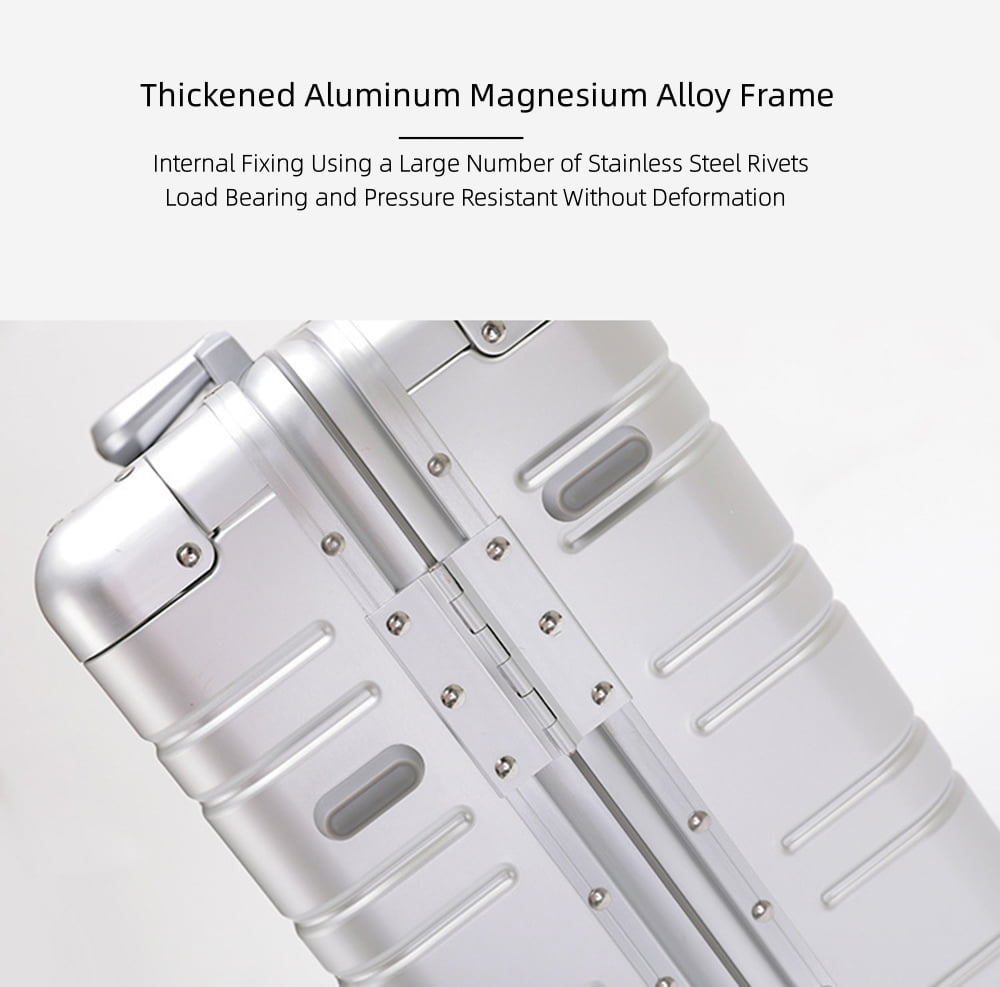 - Fashion All Aluminum Magnesium Alloy Hardside Carry on Luggage: The surface and frame of the Luggage are made of aviation grade 5 aluminum-magnesium alloy material, which is lighter, stronger and has better compressive strength. Aluminum magnesium alloy bumper corner to prevent impact. The luxury of the all aluminum suitcase with scratch resistant and beautiful shiny appearance is overwhelming.