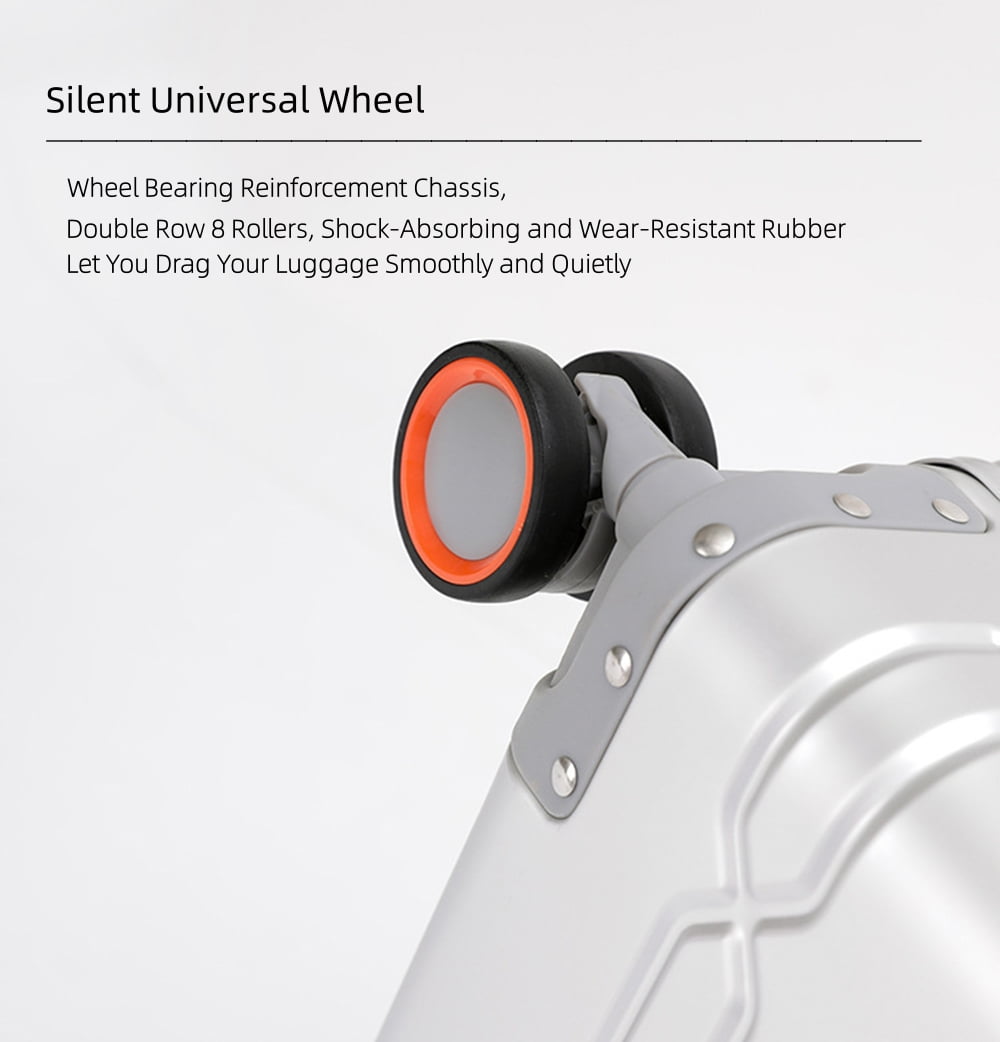 ● This lightweight suitcase effortlessly rotates the wheels 360 degrees. All you need to do is push your case along and the wheels do the rest.
