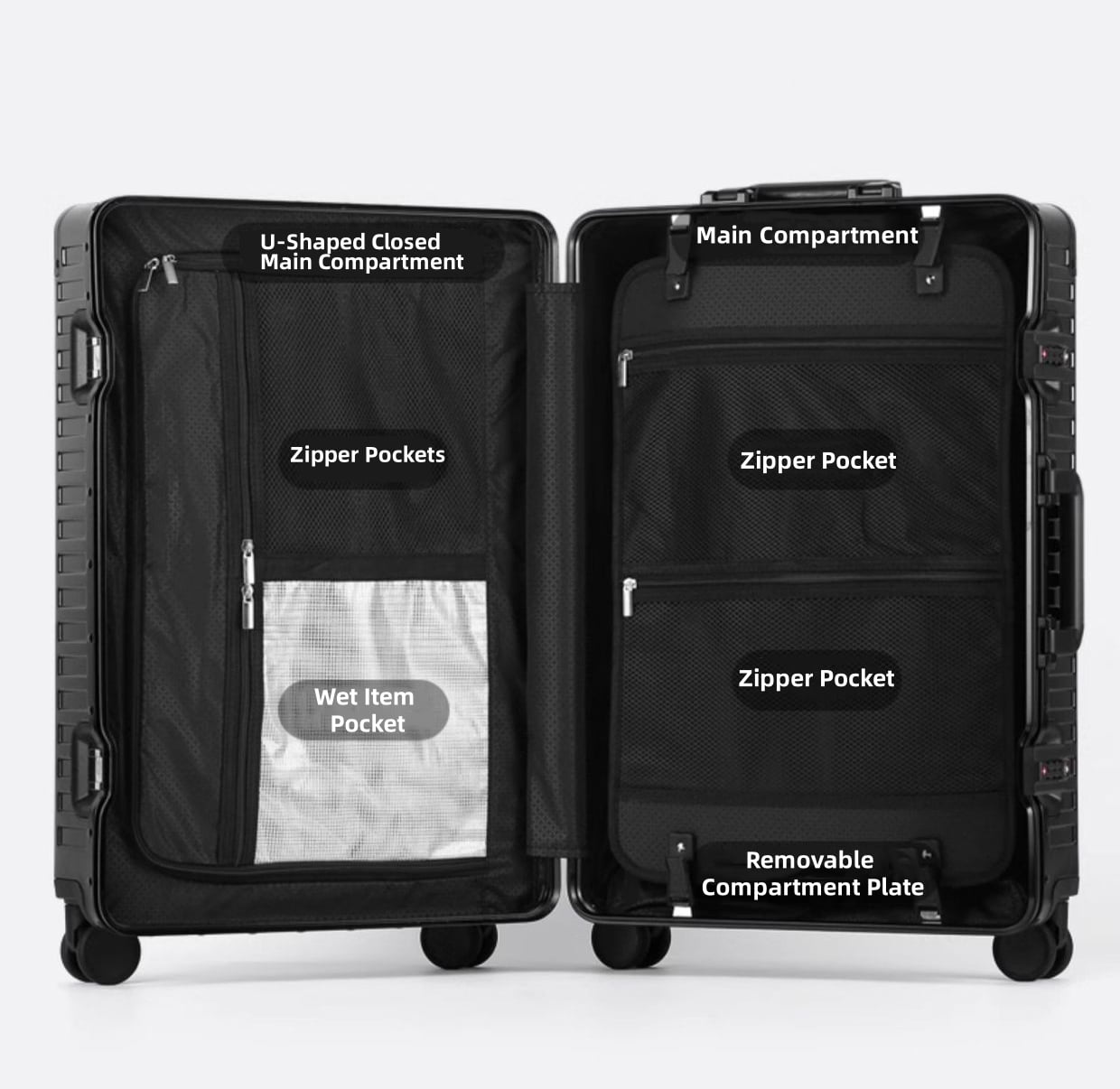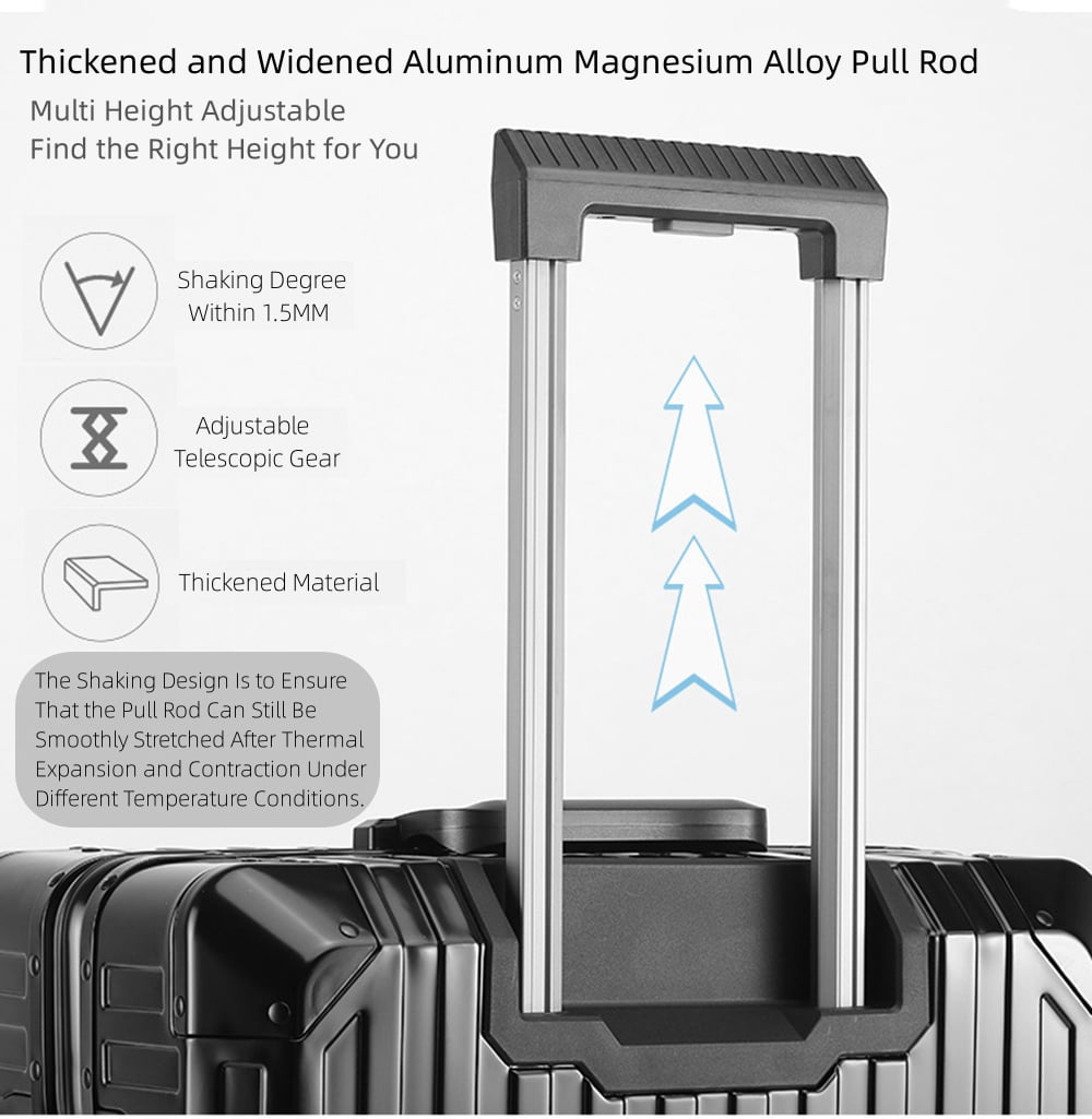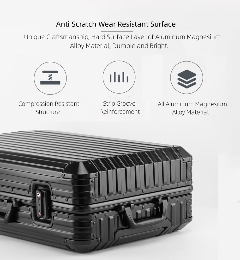 - Fashion All Aluminum Magnesium Alloy Hardside Carry on Luggage: The surface and frame of the Luggage are made of aviation grade 5 aluminum-magnesium alloy material, which is lighter, stronger and has better compressive strength. Aluminum magnesium alloy bumper corner to prevent impact. The luxury of the all aluminum suitcase with scratch resistant and beautiful shiny appearance is overwhelming.